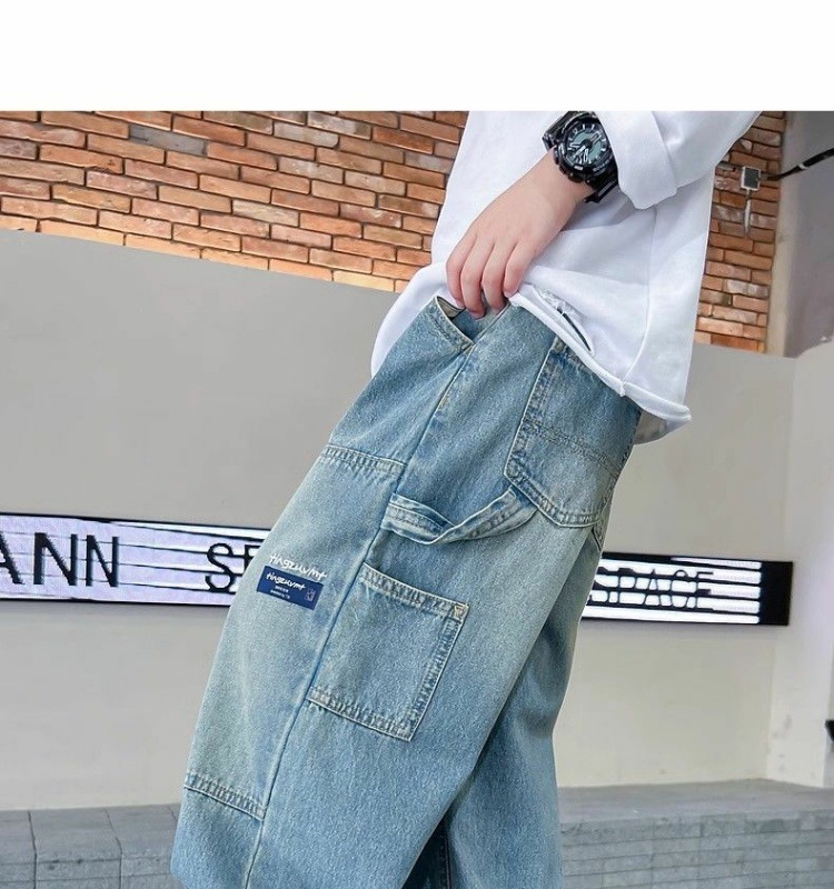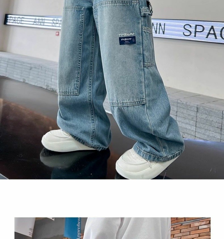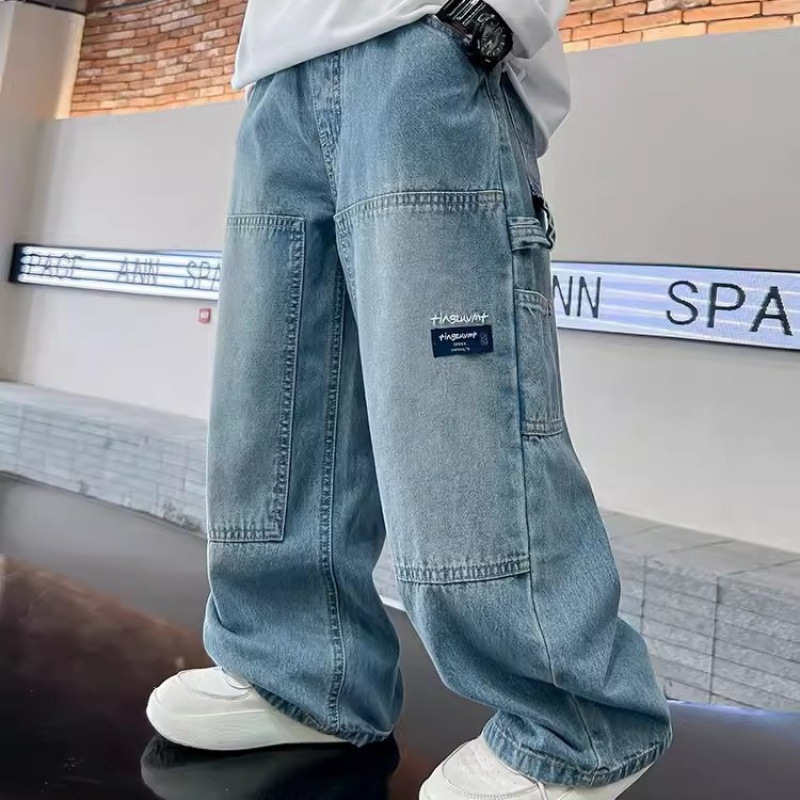 소년의 봄과 가을 스트레이트 튜브 느슨한 청바지 2025 새로운 아동복 소년 봄 잘 생긴 얇은 트렌디 바지스토어 가기