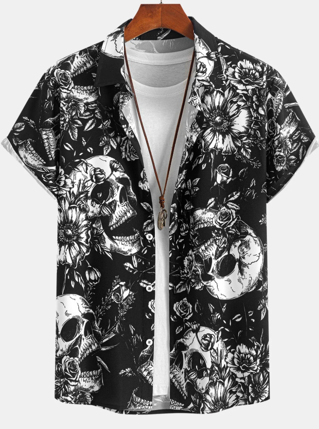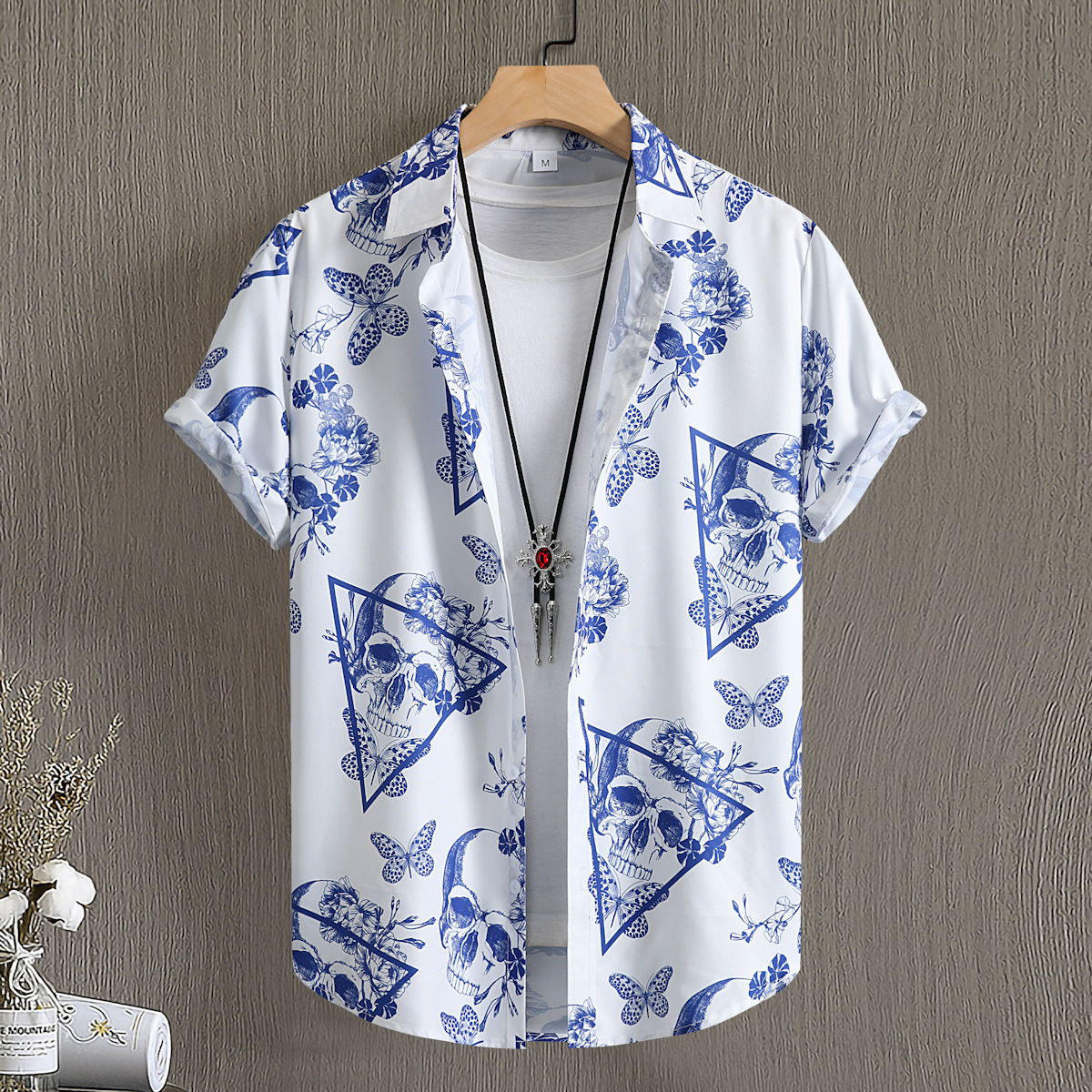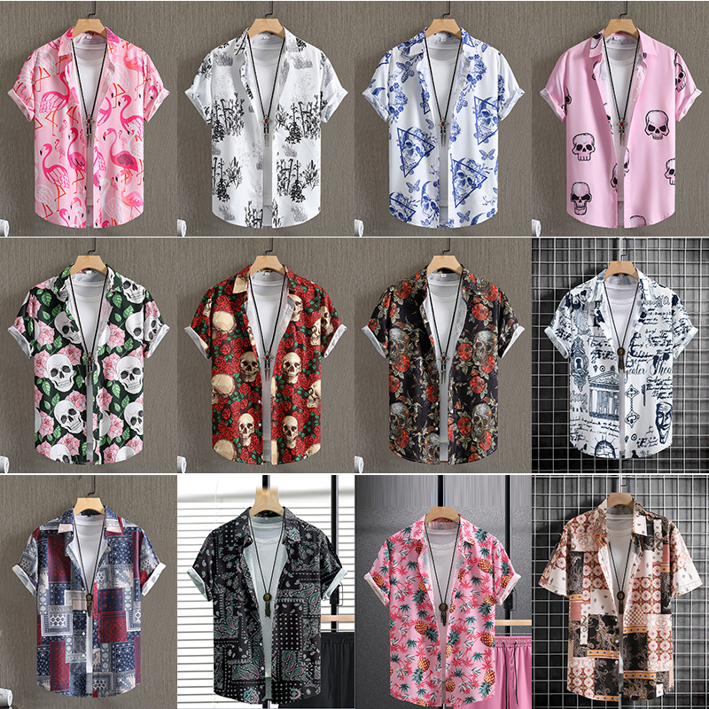 남성 반팔 셔츠 패션 인쇄 남성 셔츠 여름 대외 무역 남성 유럽과 미국 버전 국경 해변 레저스토어 가기