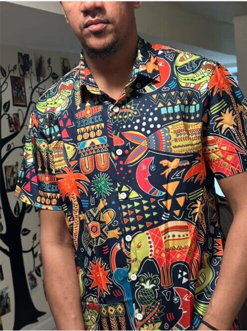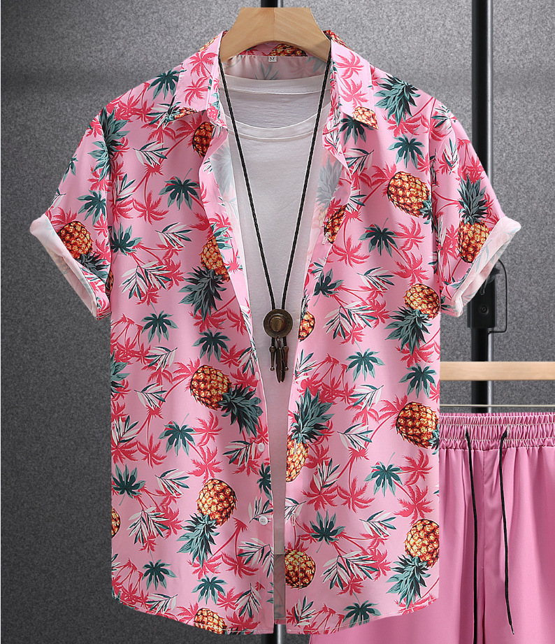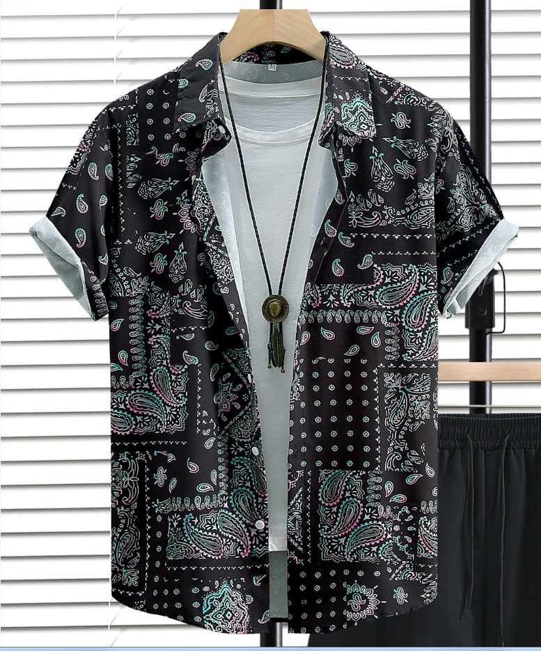 남성 반팔 셔츠 패션 인쇄 남성 셔츠 여름 대외 무역 남성 유럽과 미국 버전 국경 해변 레저