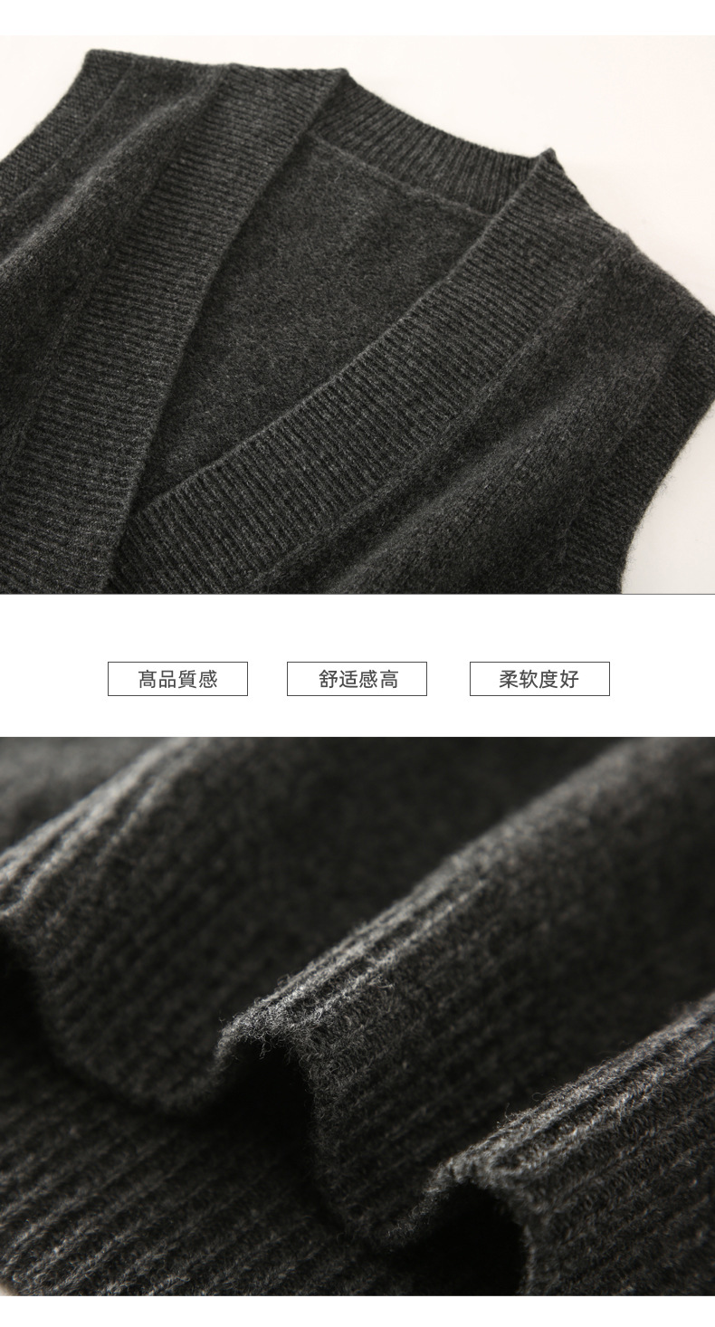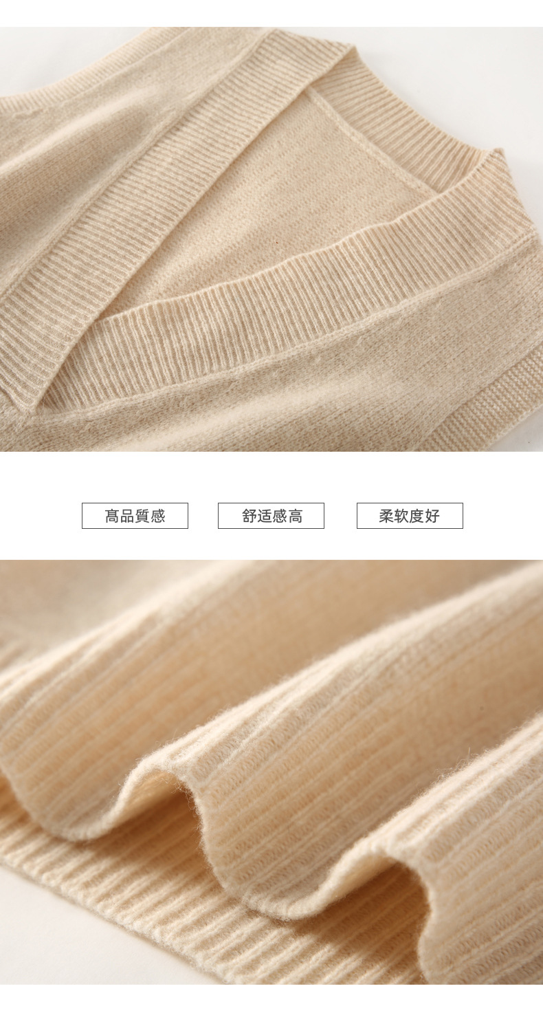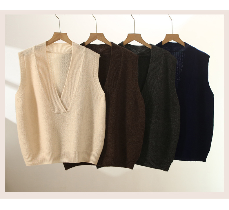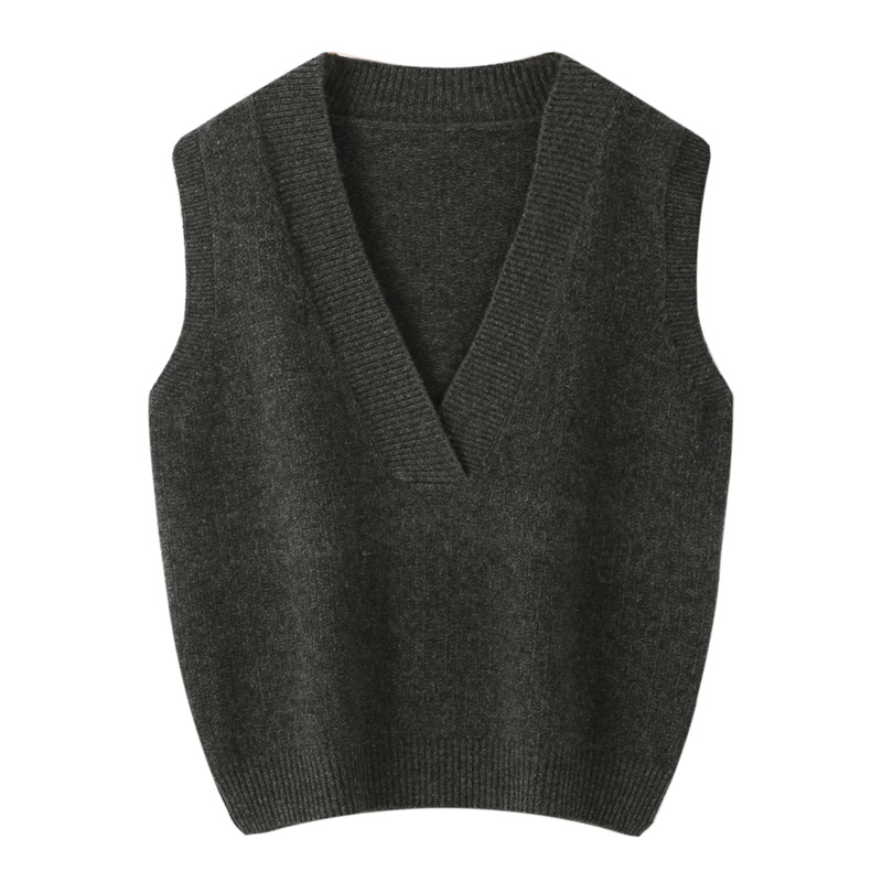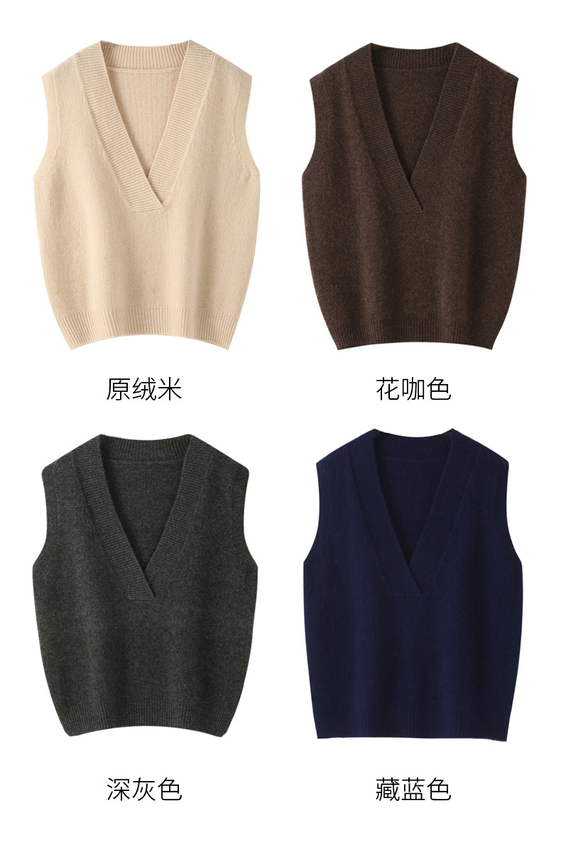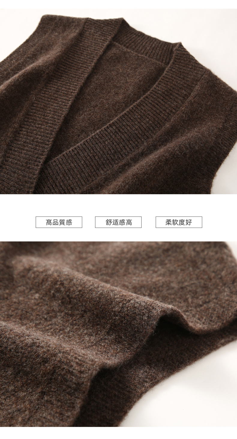 순수 양모 여성용 V 넥 조끼 느슨한 허리 코트 가을과 겨울 새로운 순수 양모 민소매 단색 풀오버 조끼스토어 가기