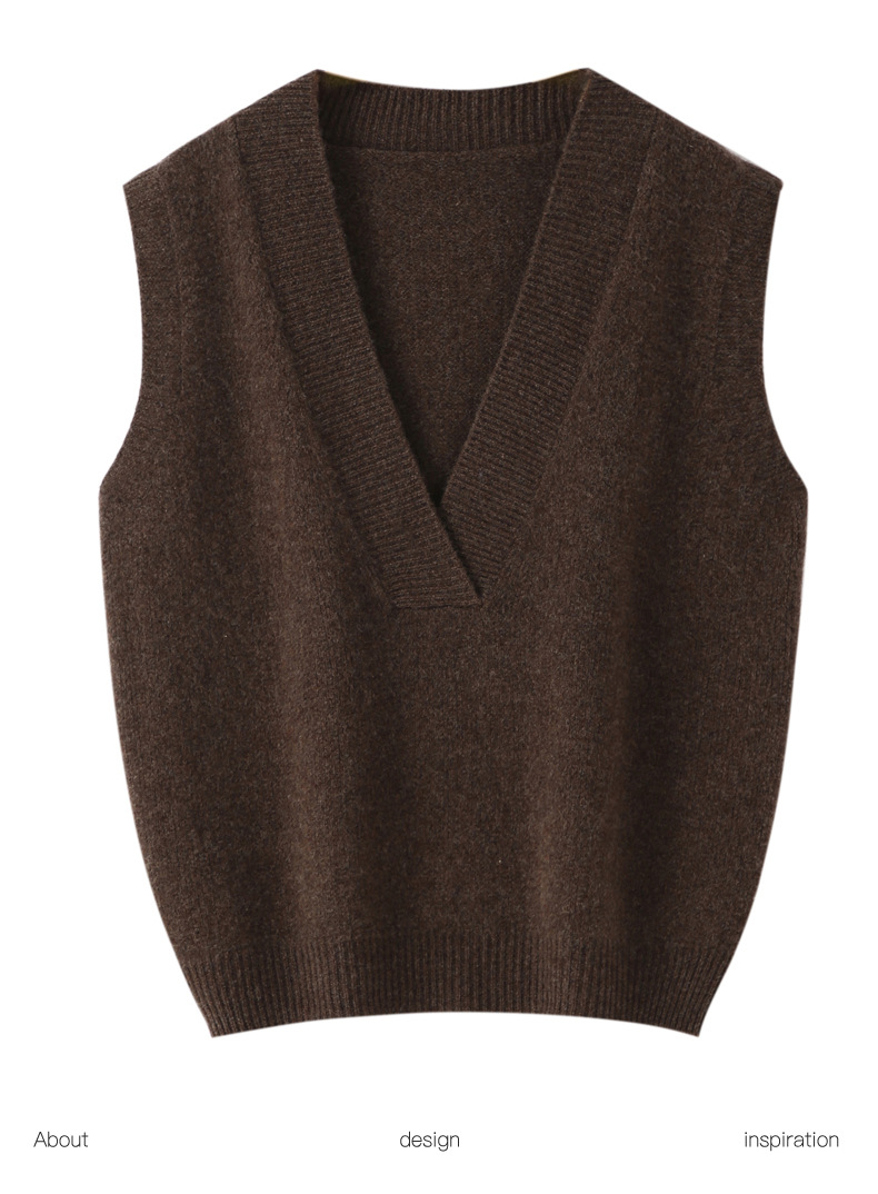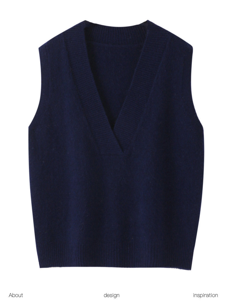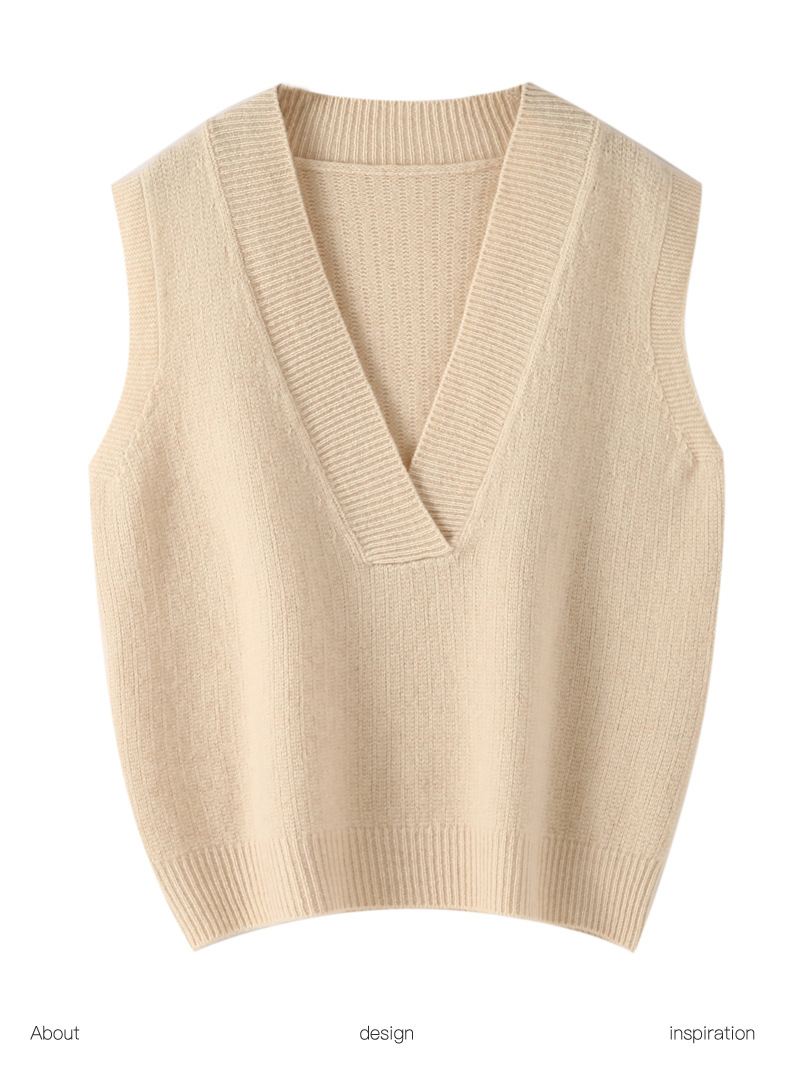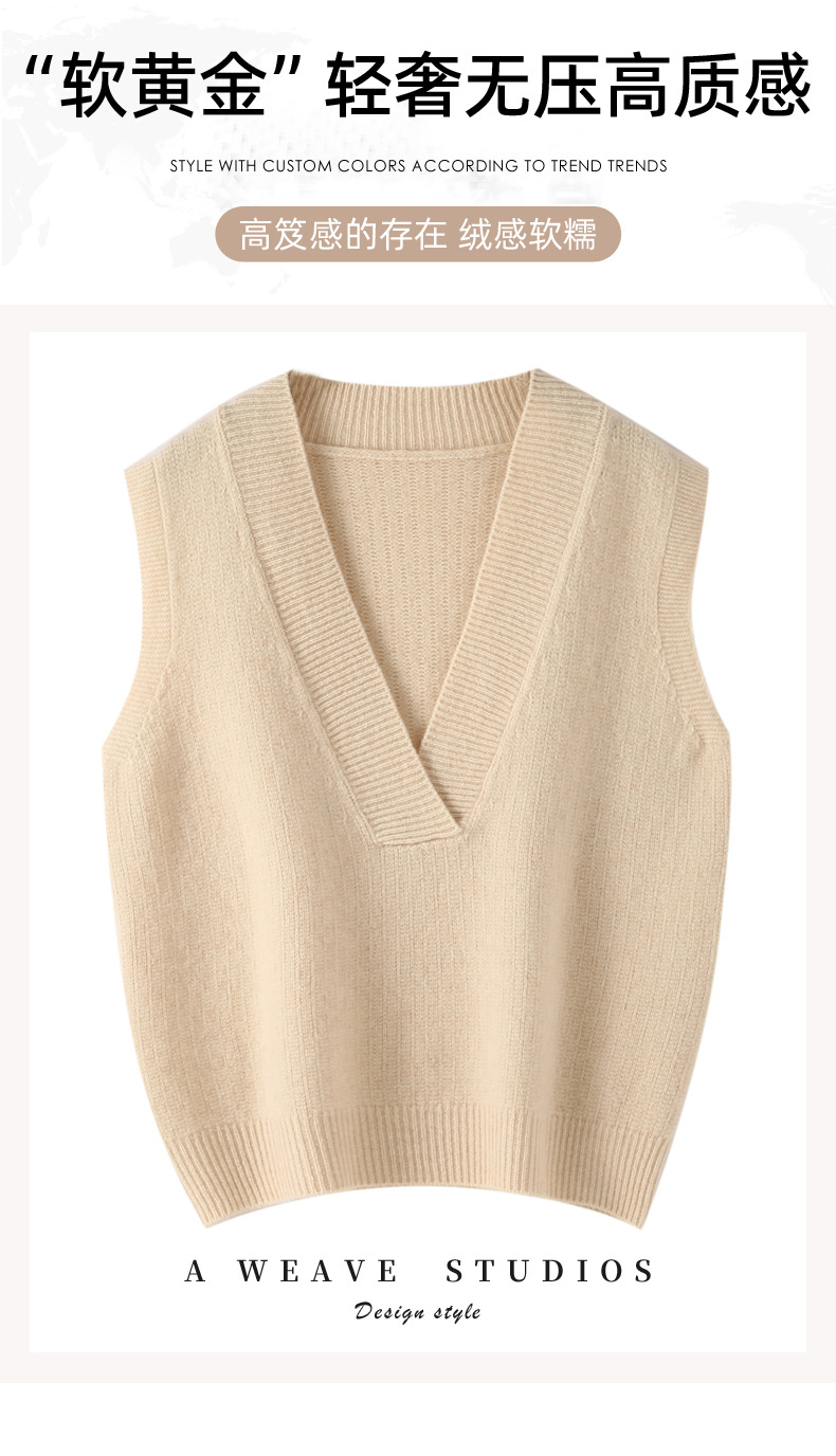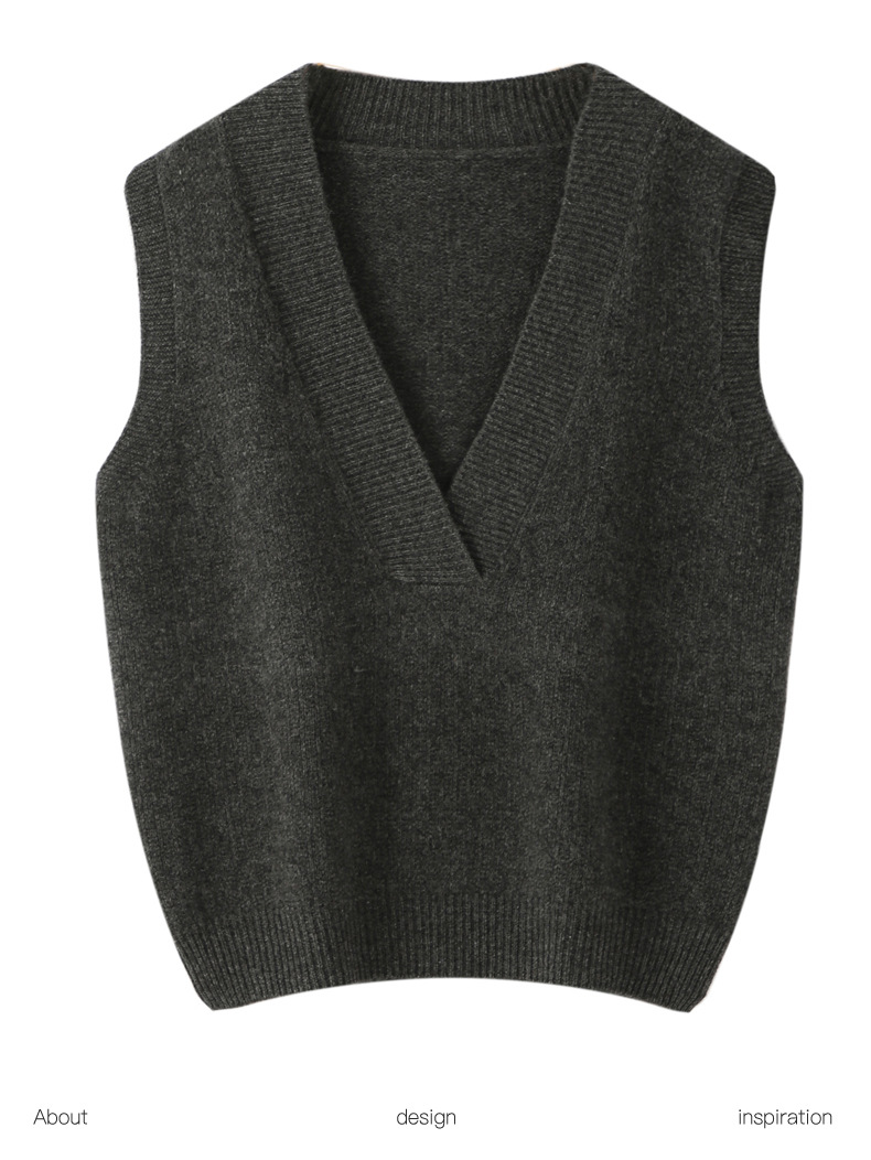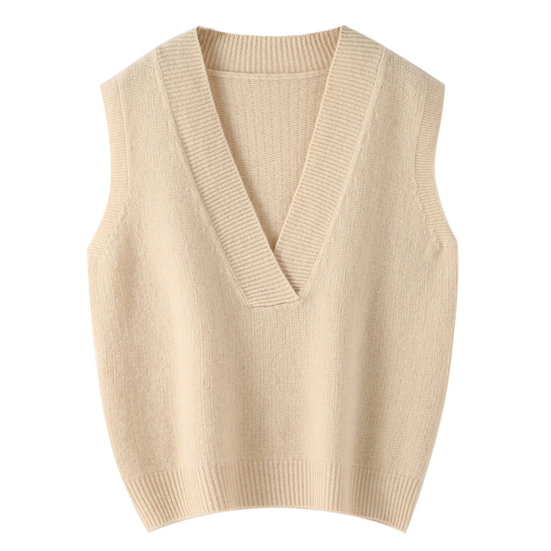 순수 양모 여성용 V 넥 조끼 느슨한 허리 코트 가을과 겨울 새로운 순수 양모 민소매 단색 풀오버 조끼스토어 가기