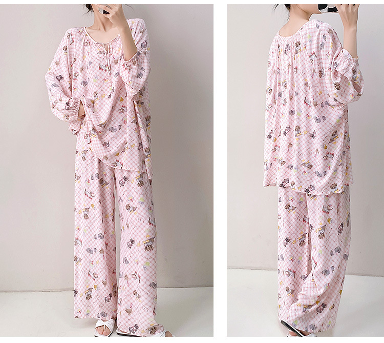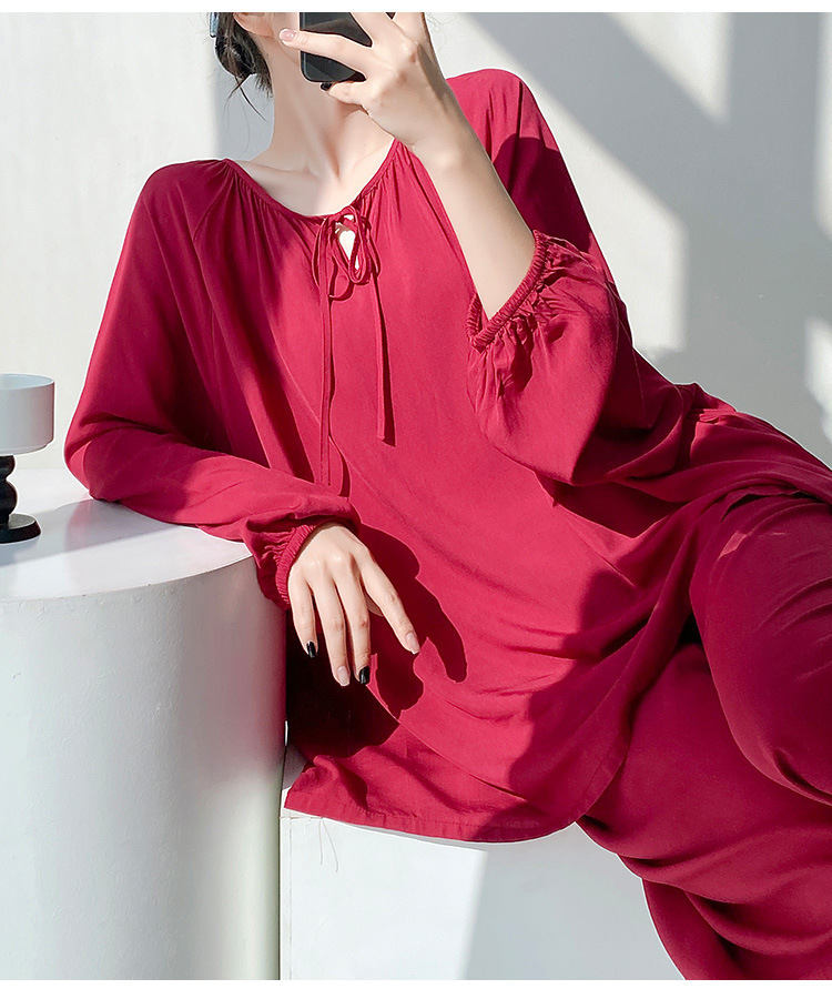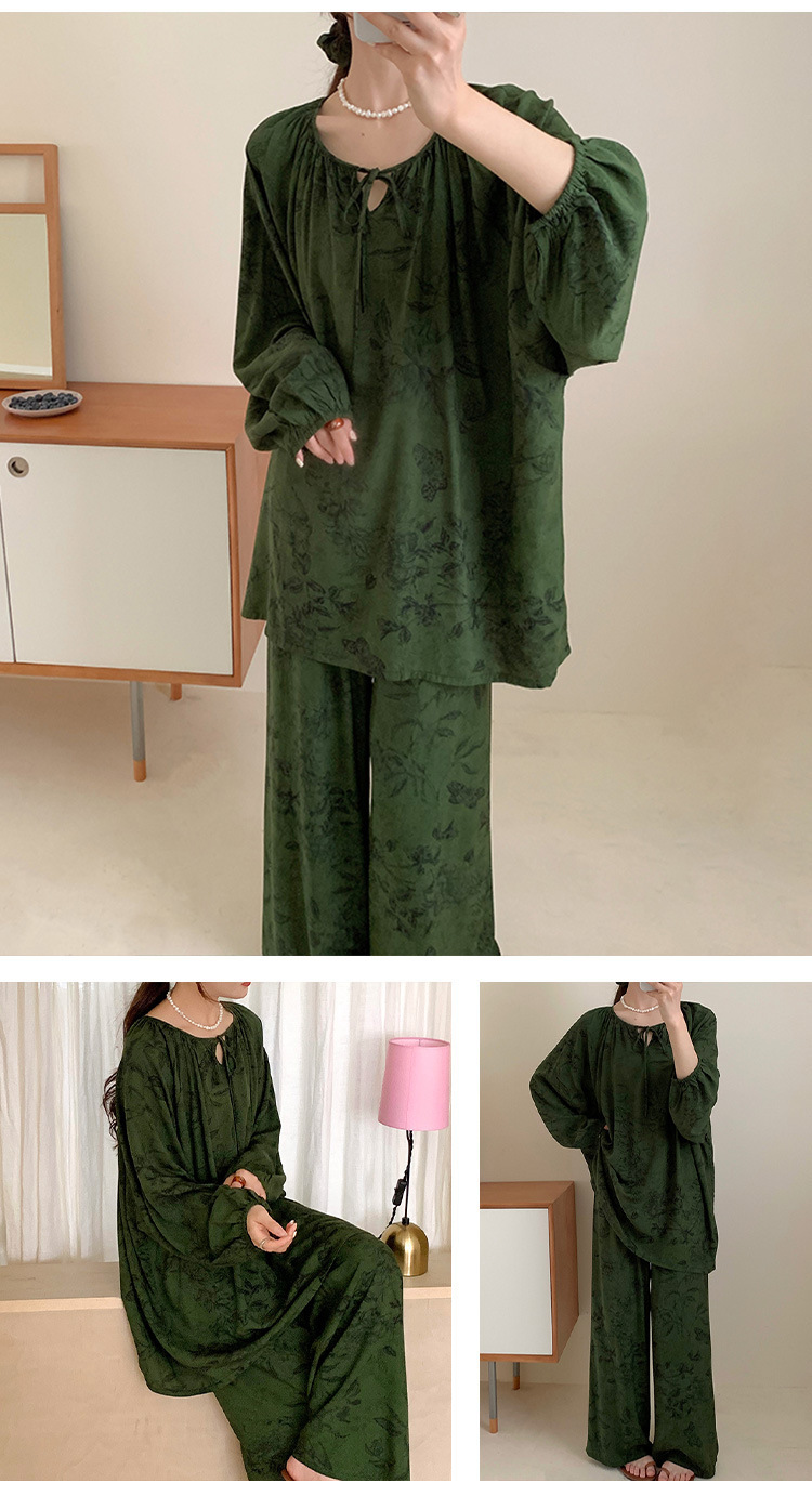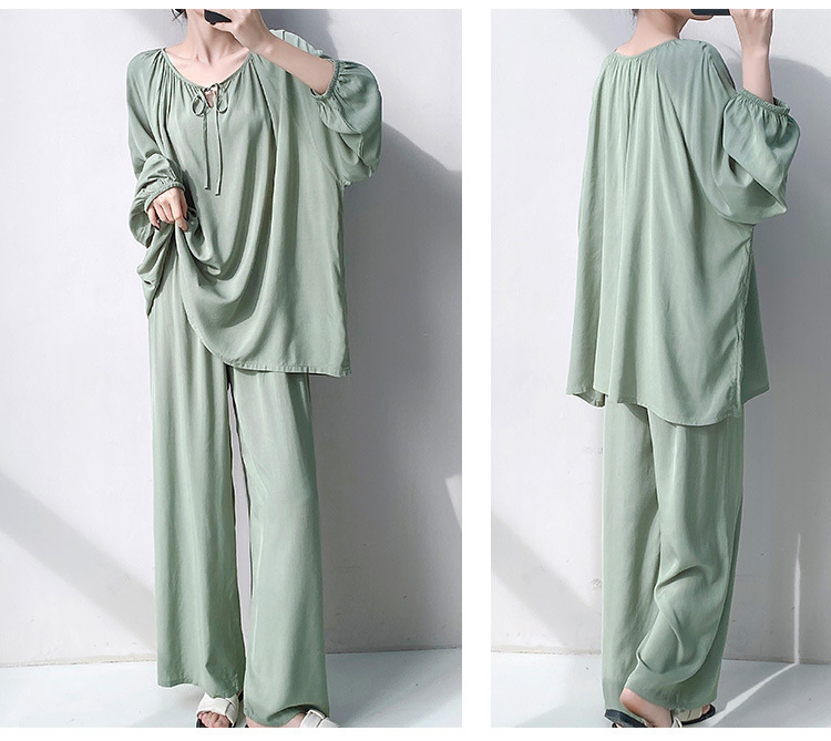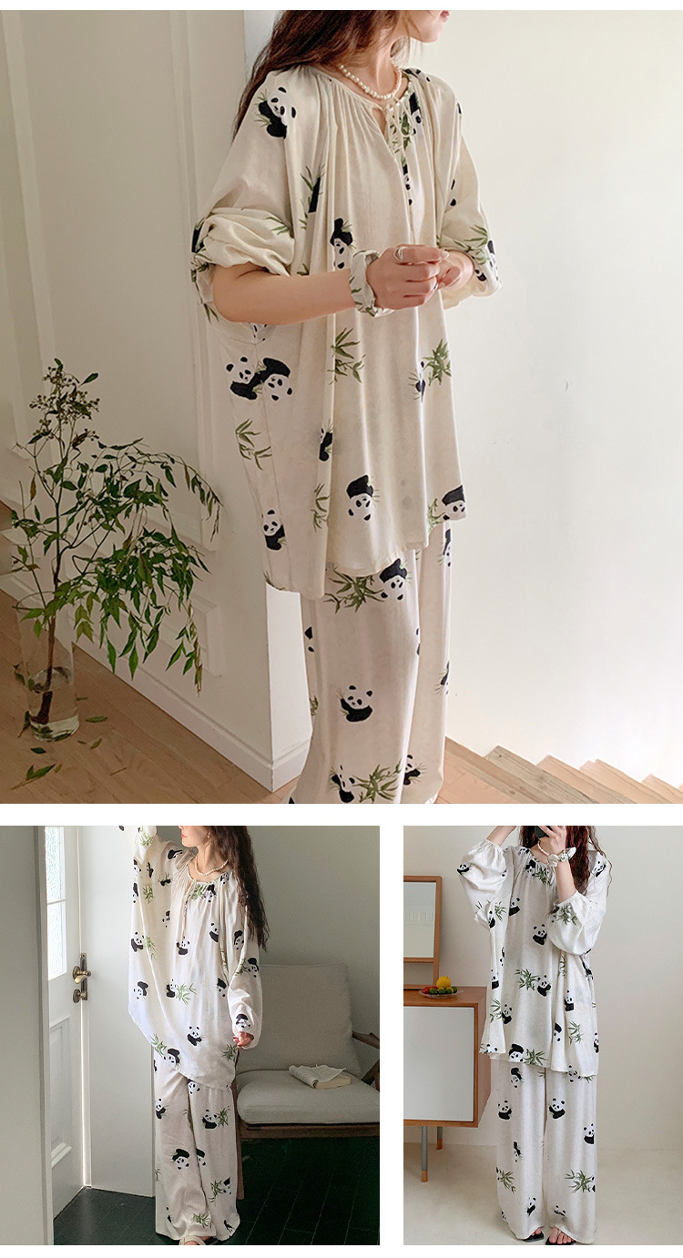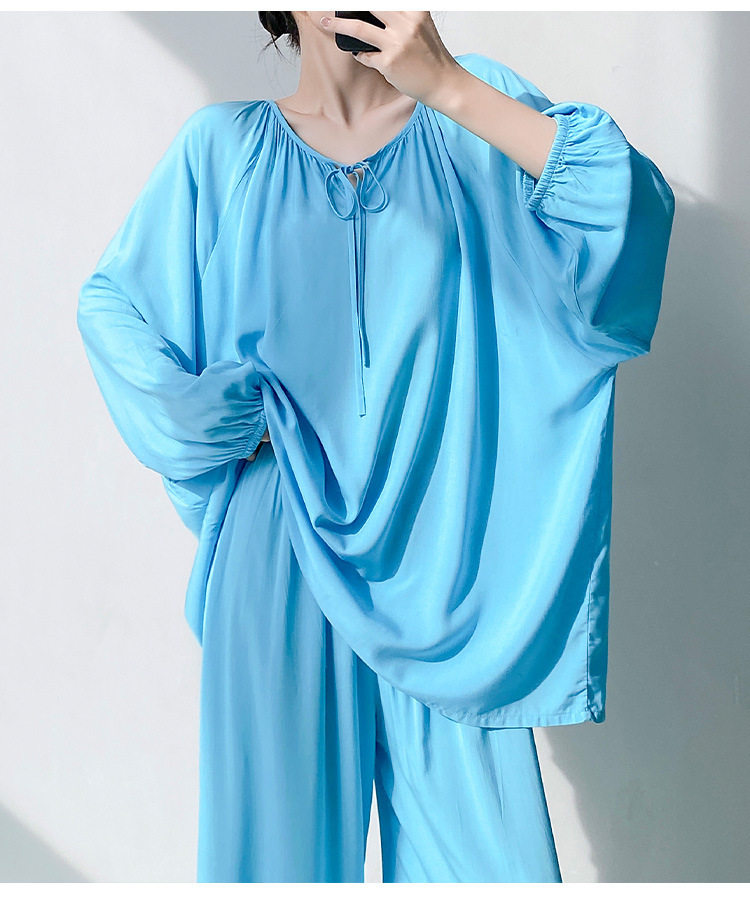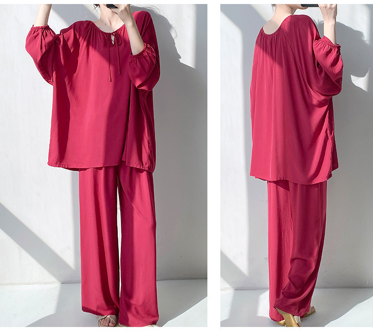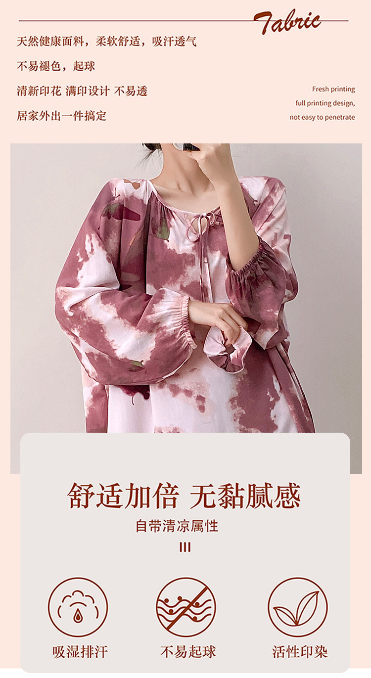 25 개의 새로운 잠옷 여성의 봄과 가을 면화 실크 긴 소매 단색 느슨한 200 진 홈웨어 여름 얇은 아우터 파자마