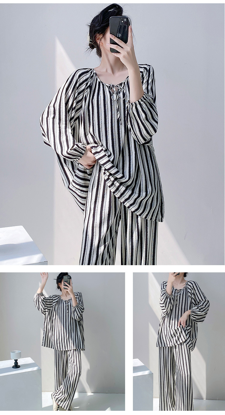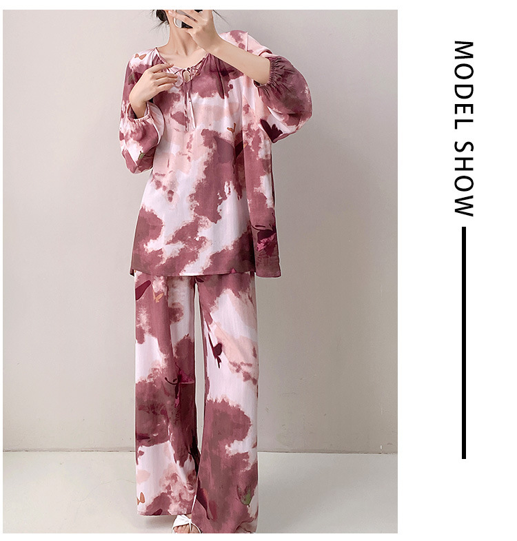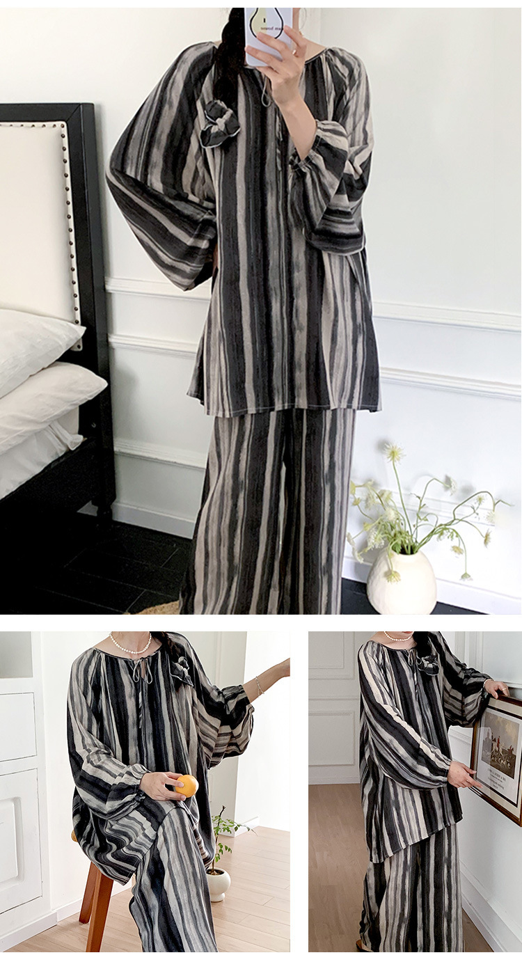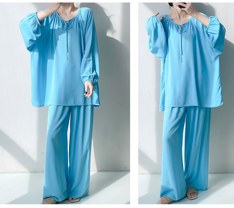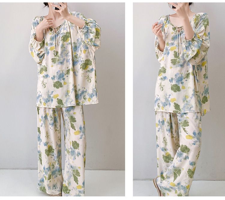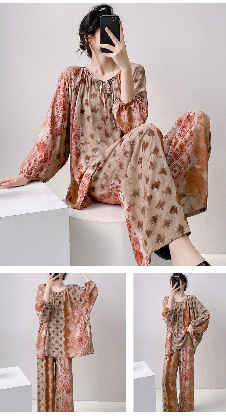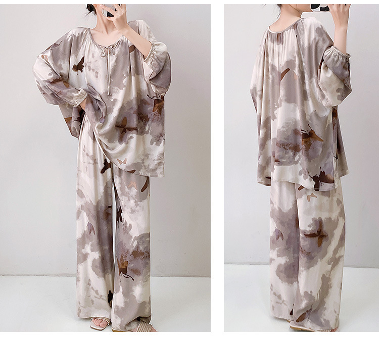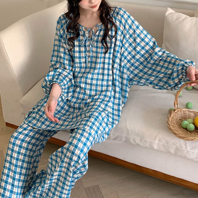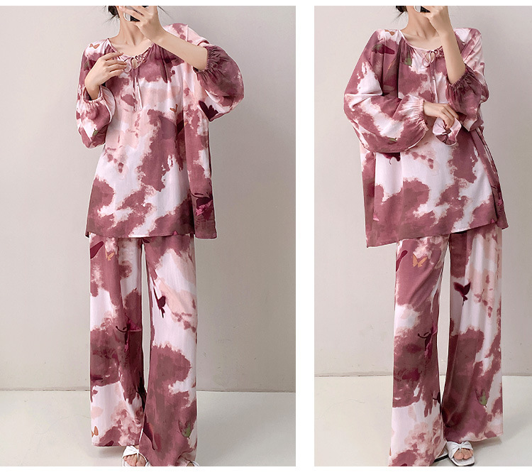 25 개의 새로운 잠옷 여성의 봄과 가을 면화 실크 긴 소매 단색 느슨한 200 진 홈웨어 여름 얇은 아우터 파자마