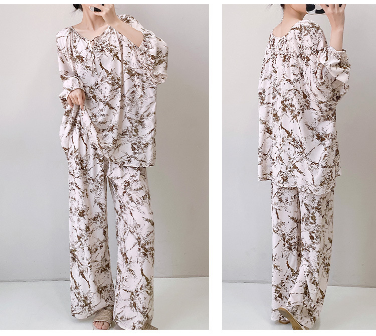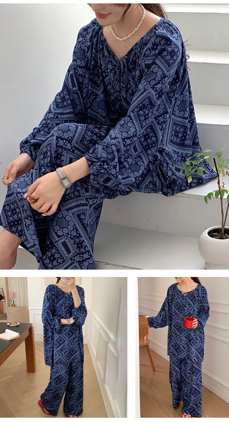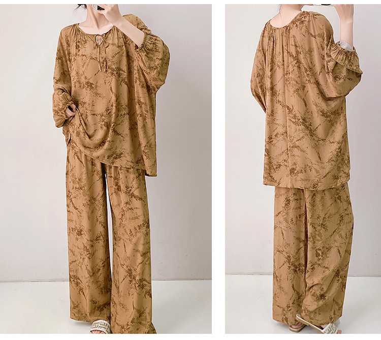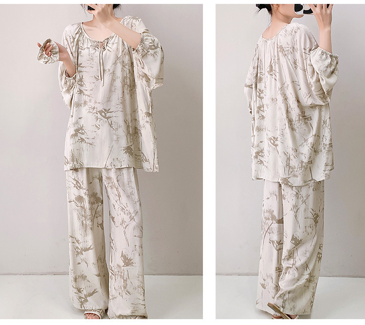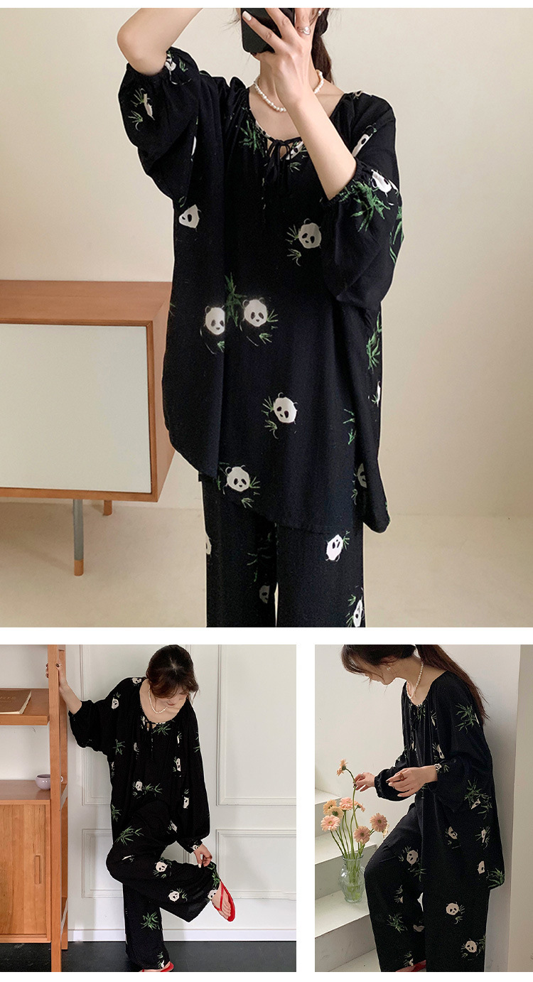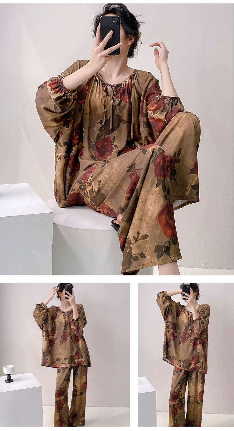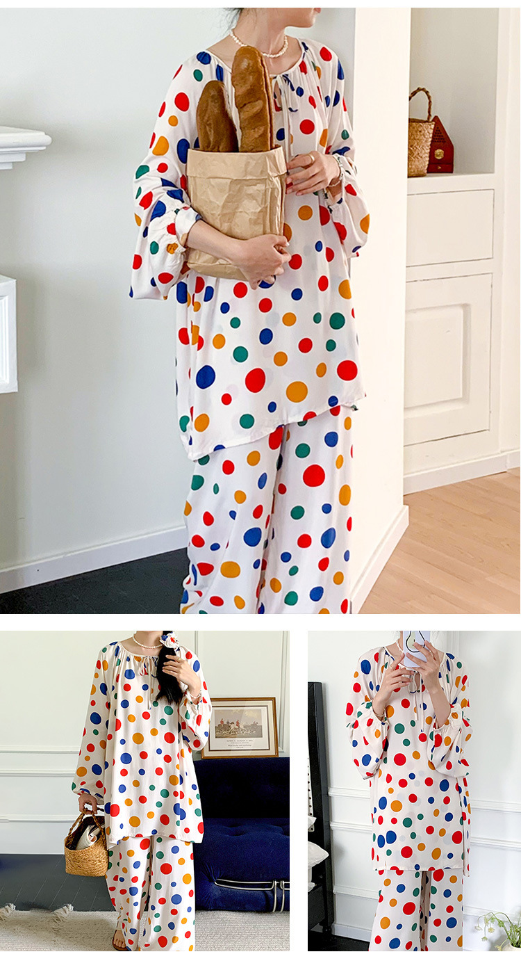 25 개의 새로운 잠옷 여성의 봄과 가을 면화 실크 긴 소매 단색 느슨한 200 진 홈웨어 여름 얇은 아우터 파자마