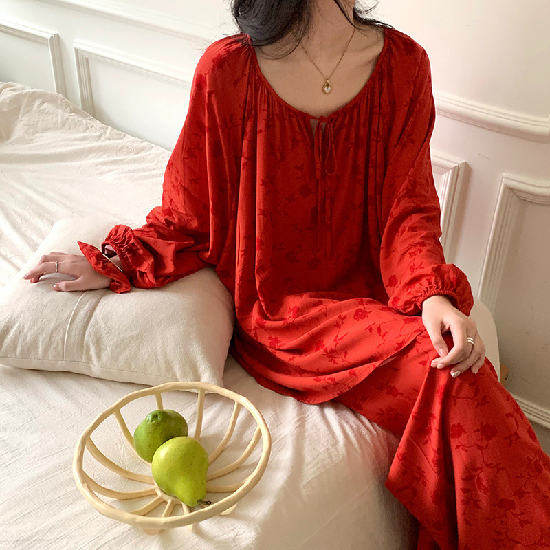 25 개의 새로운 잠옷 여성의 봄과 가을 면화 실크 긴 소매 단색 느슨한 200 진 홈웨어 여름 얇은 아우터 파자마스토어 가기