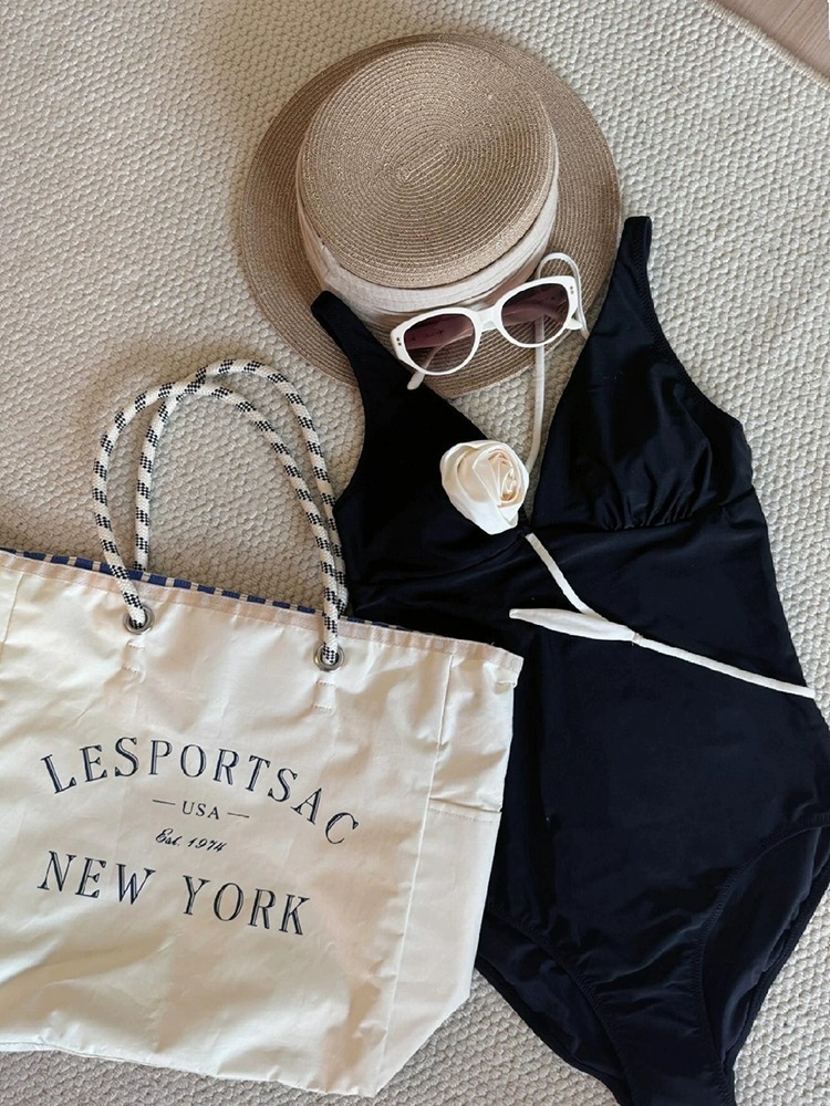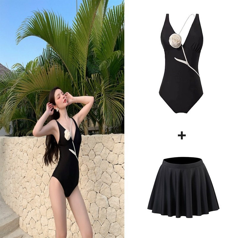 하이 엔드 여름 새로운 블랙 간단한 어깨 3 차원 꽃 원피스 패션 해변 휴가 비키니 수영복
