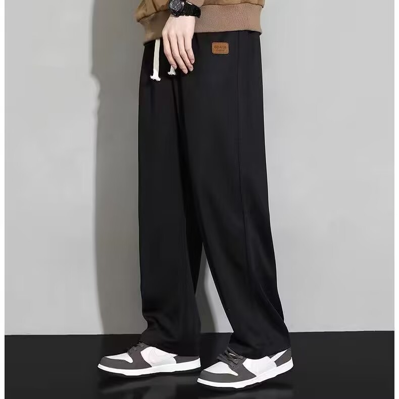 블랙 스트레이트 드롭 아이스 실크 바지 여름 바지 얇은 느슨한 빠른 건조 스포츠 캐주얼 남성 바지스토어 가기