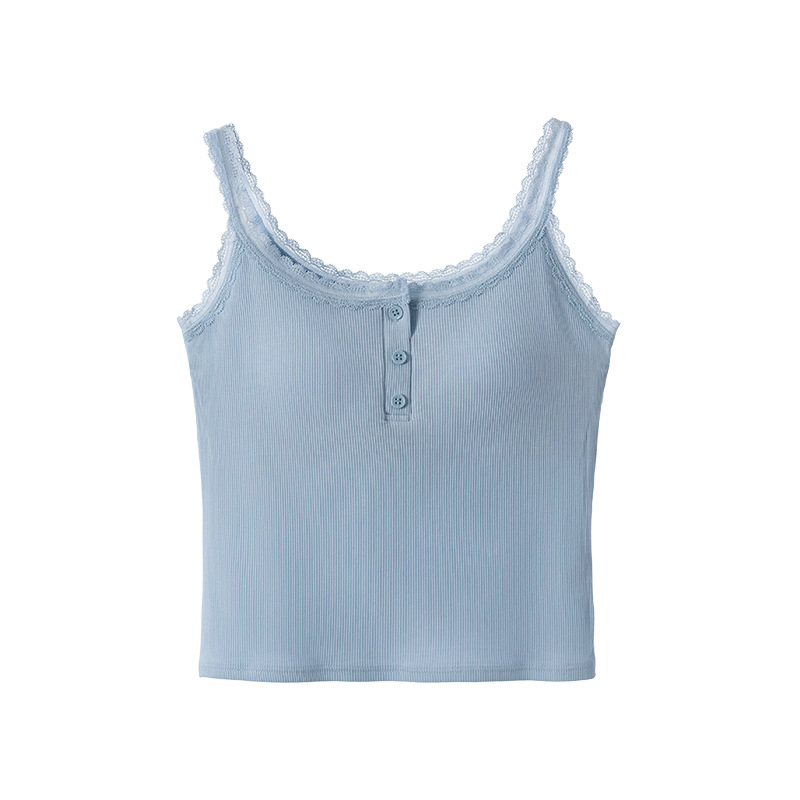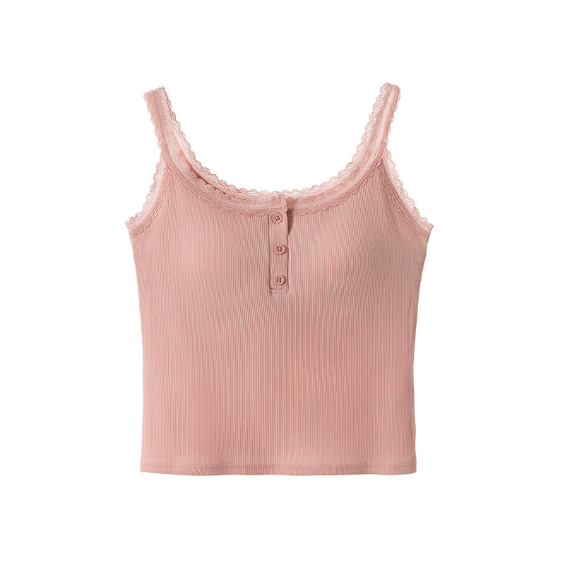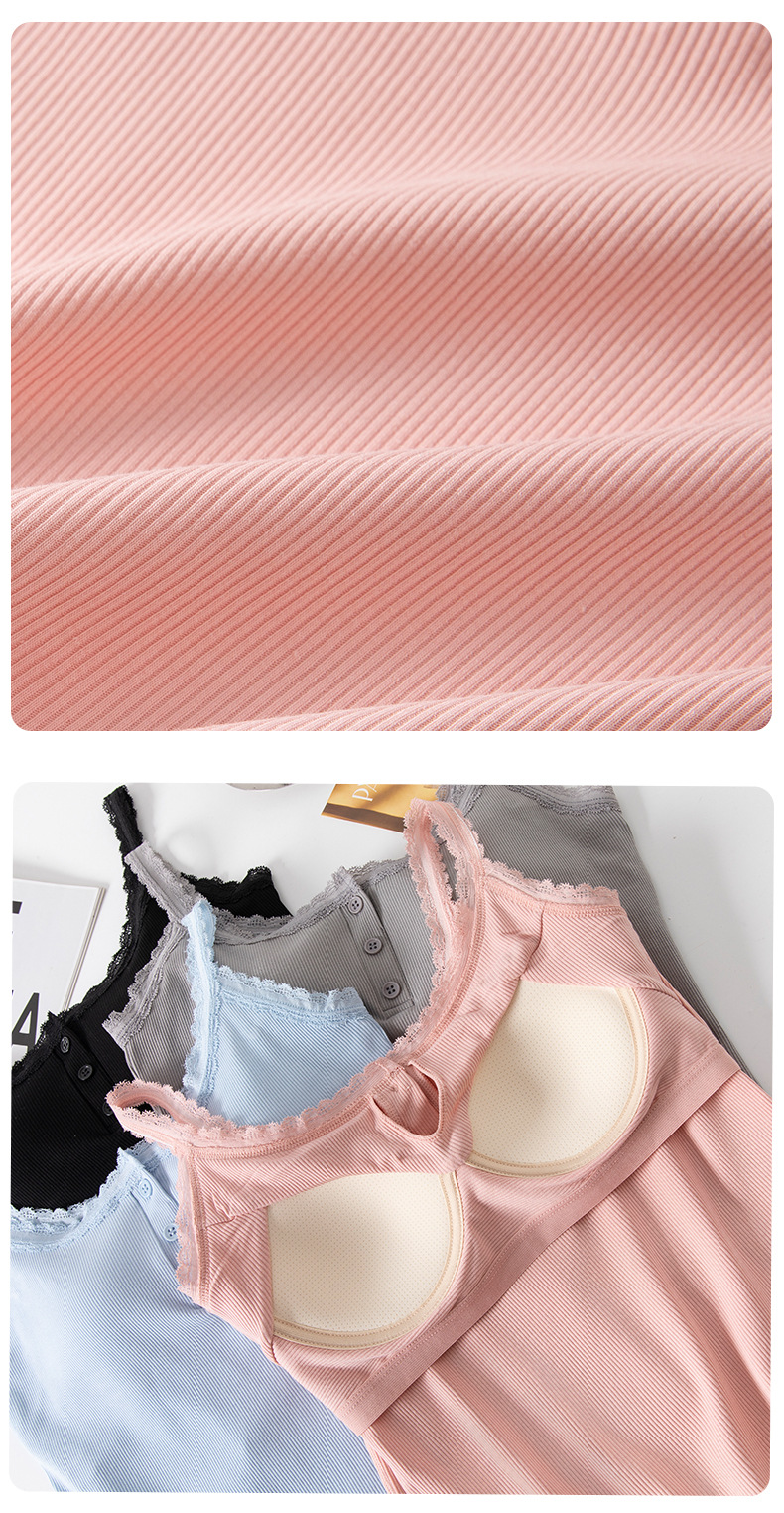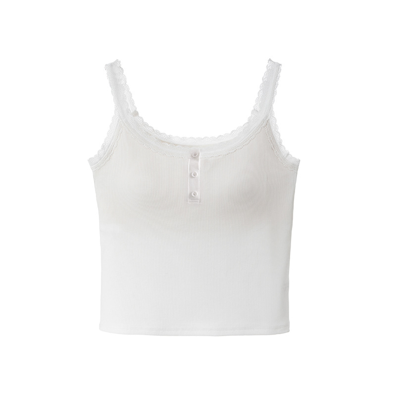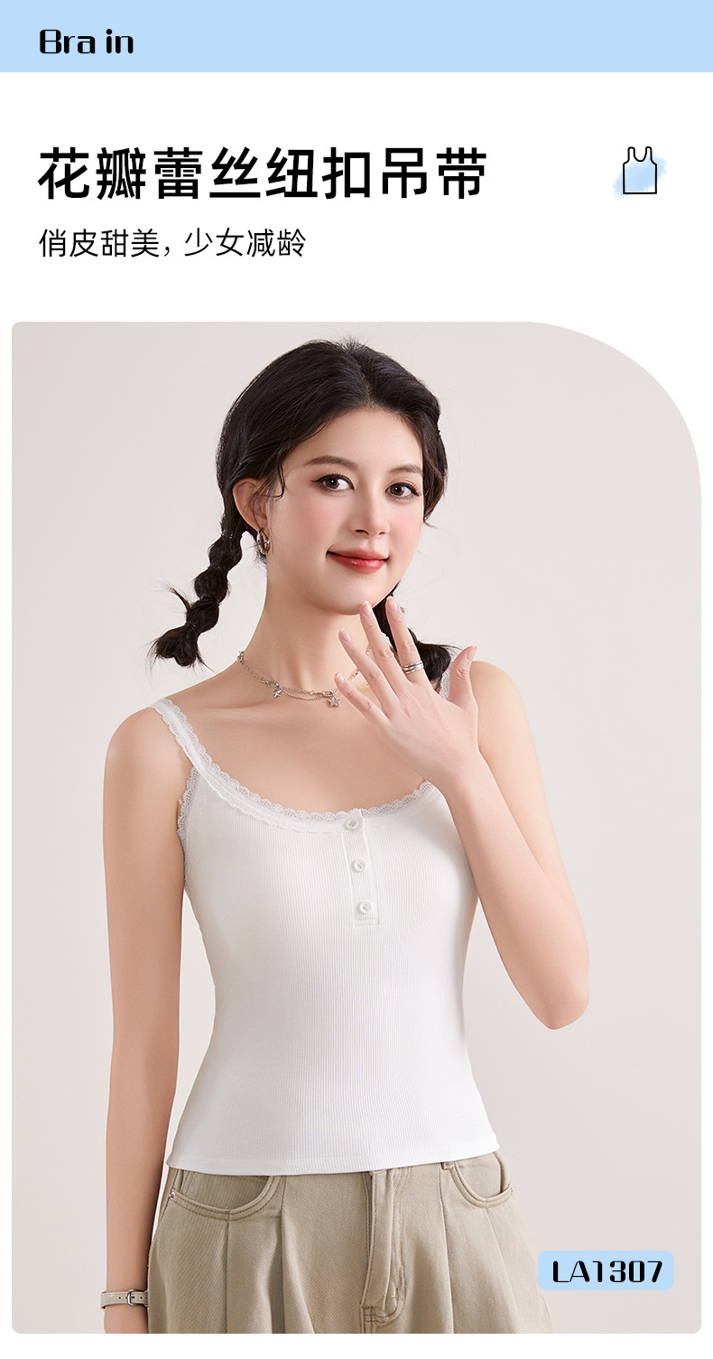 1307 고정 컵 레이스 엣지 스퀘어 칼라 가슴 패드 유행 버튼 내부 최고 여성 속옷과 중간 길이 슬링 조끼