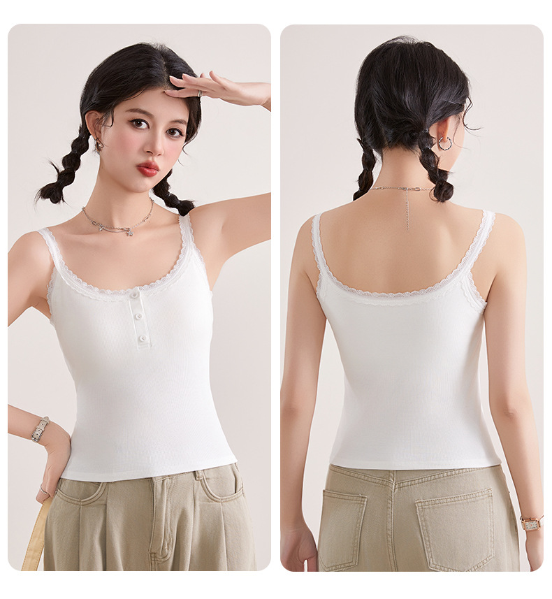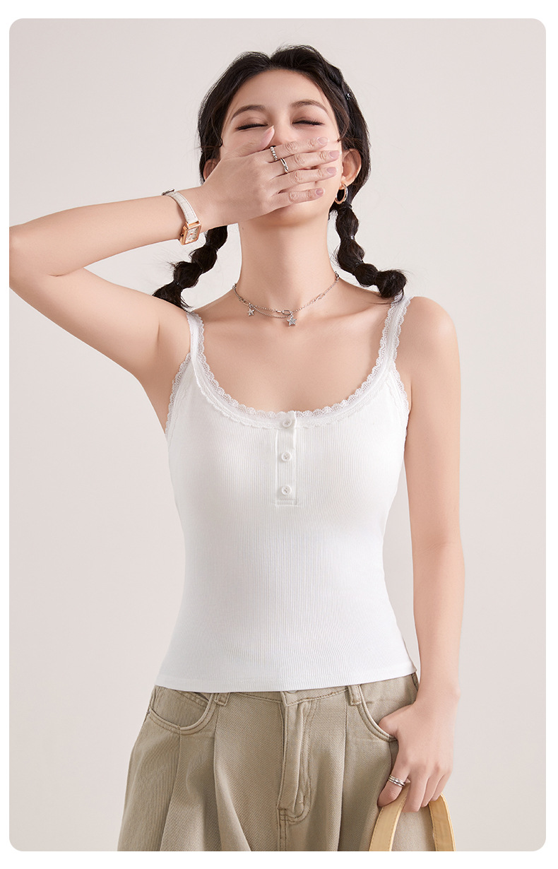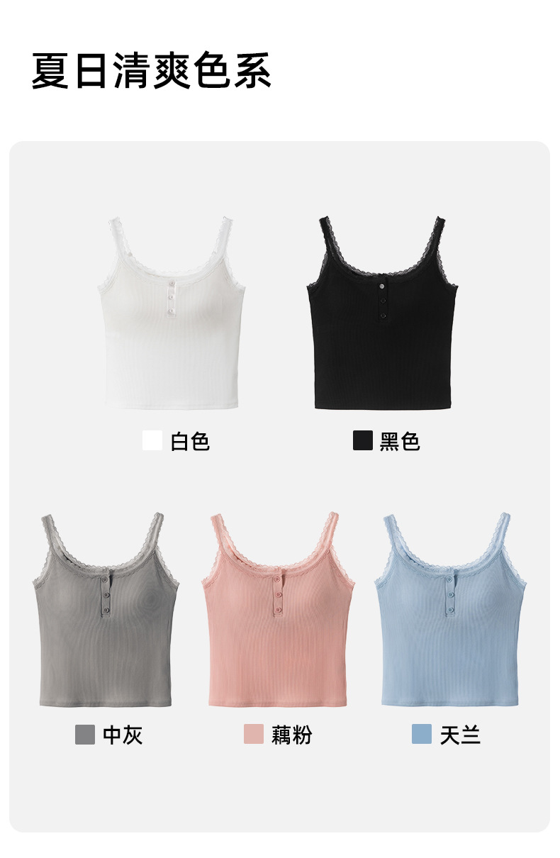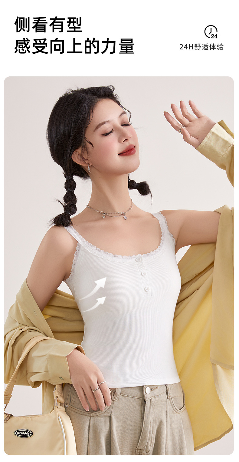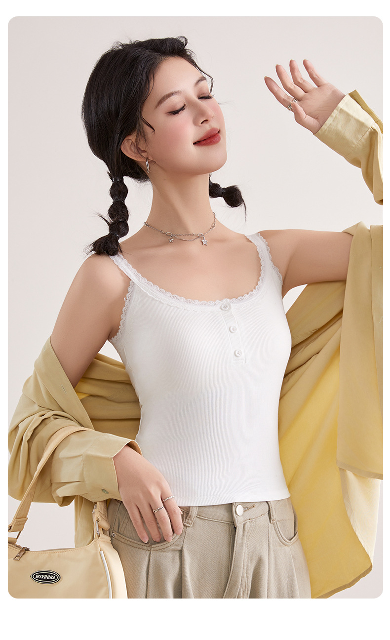 1307 고정 컵 레이스 엣지 스퀘어 칼라 가슴 패드 유행 버튼 내부 최고 여성 속옷과 중간 길이 슬링 조끼