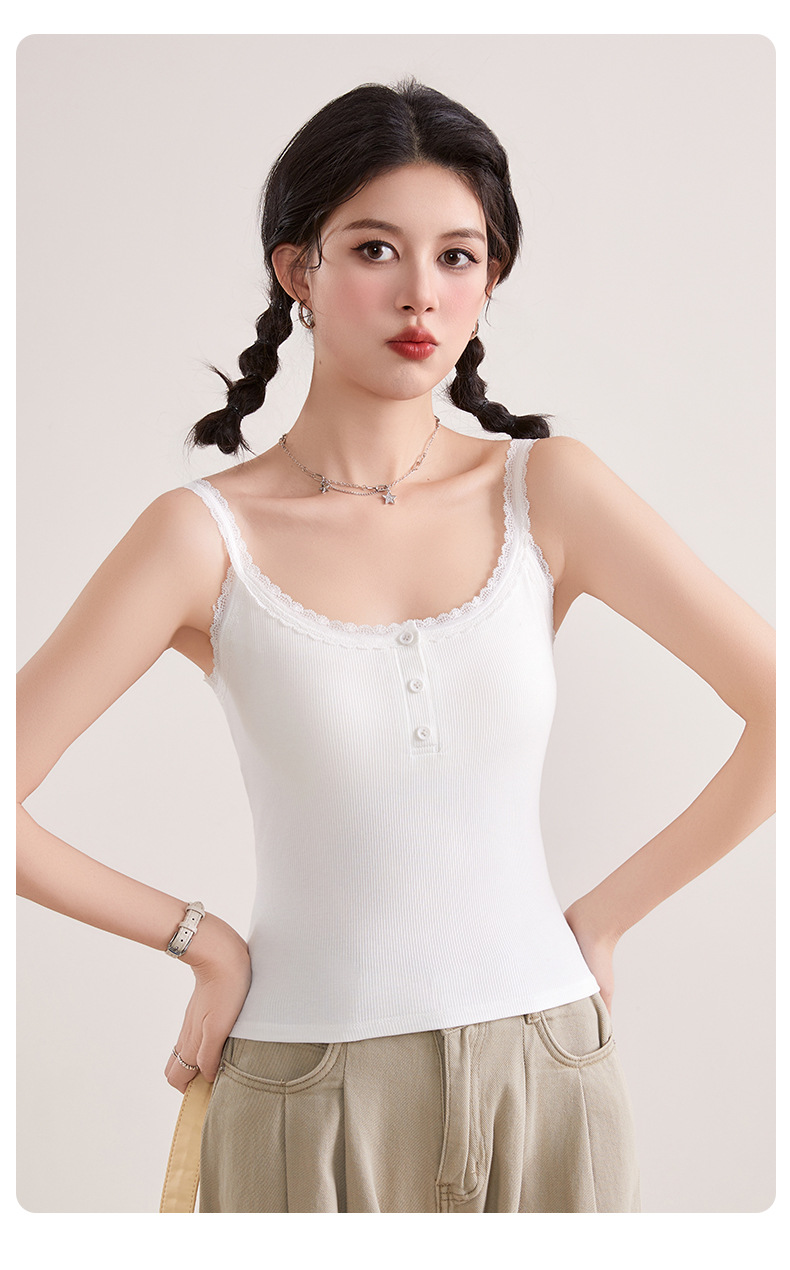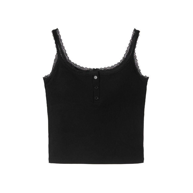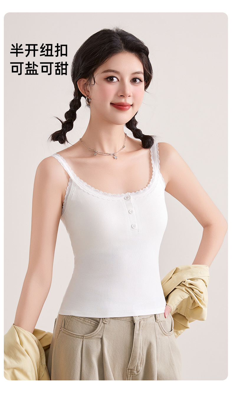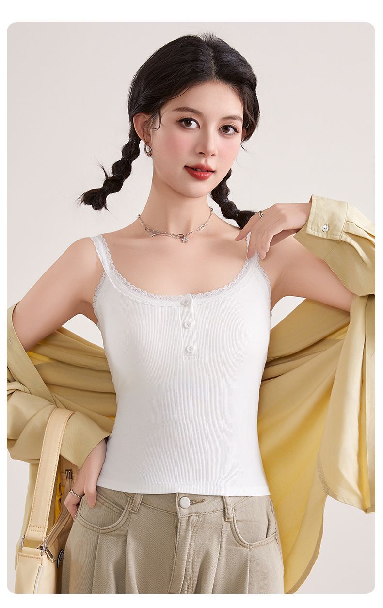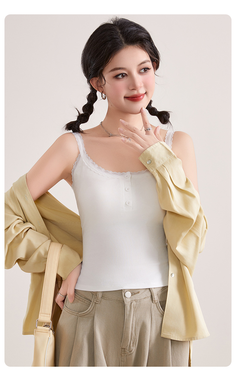 1307 고정 컵 레이스 엣지 스퀘어 칼라 가슴 패드 유행 버튼 내부 최고 여성 속옷과 중간 길이 슬링 조끼