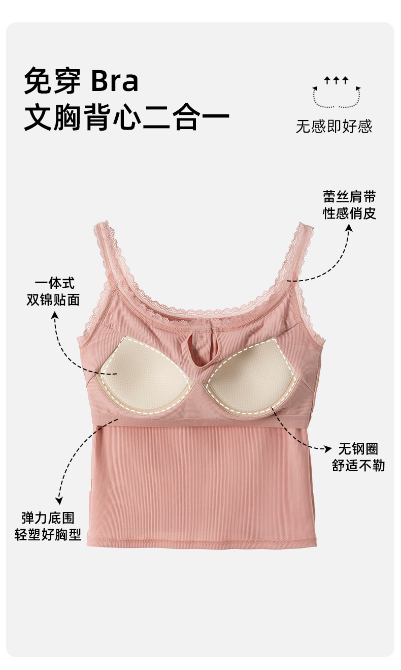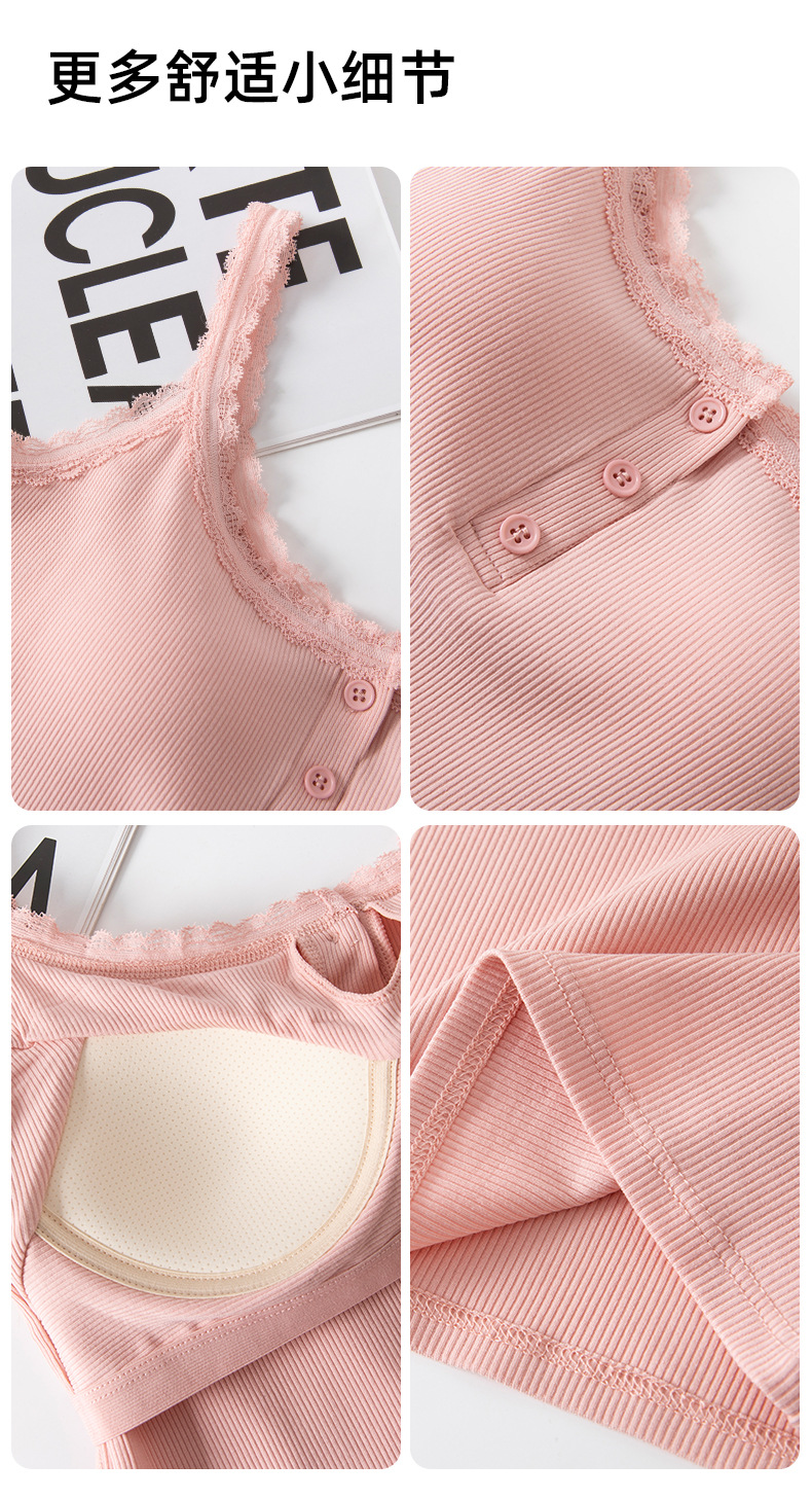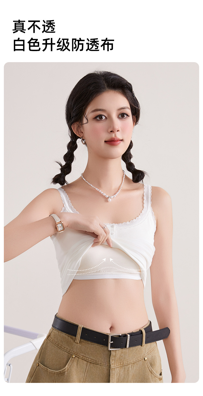 1307 고정 컵 레이스 엣지 스퀘어 칼라 가슴 패드 유행 버튼 내부 최고 여성 속옷과 중간 길이 슬링 조끼스토어 가기