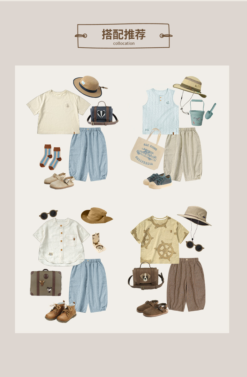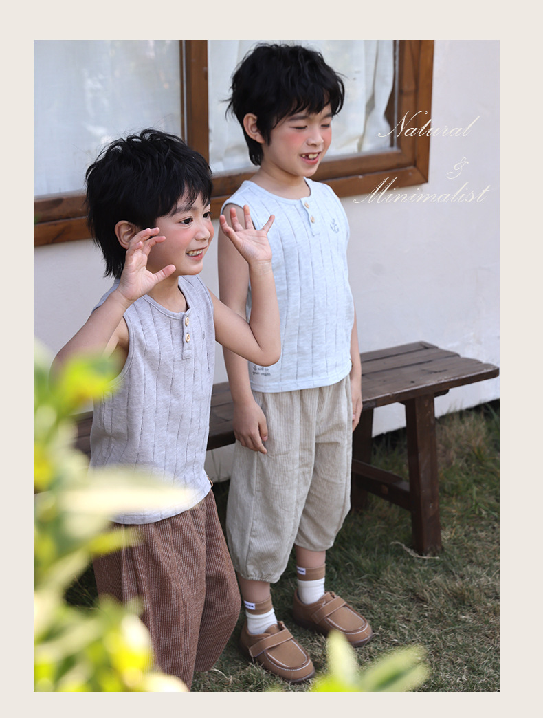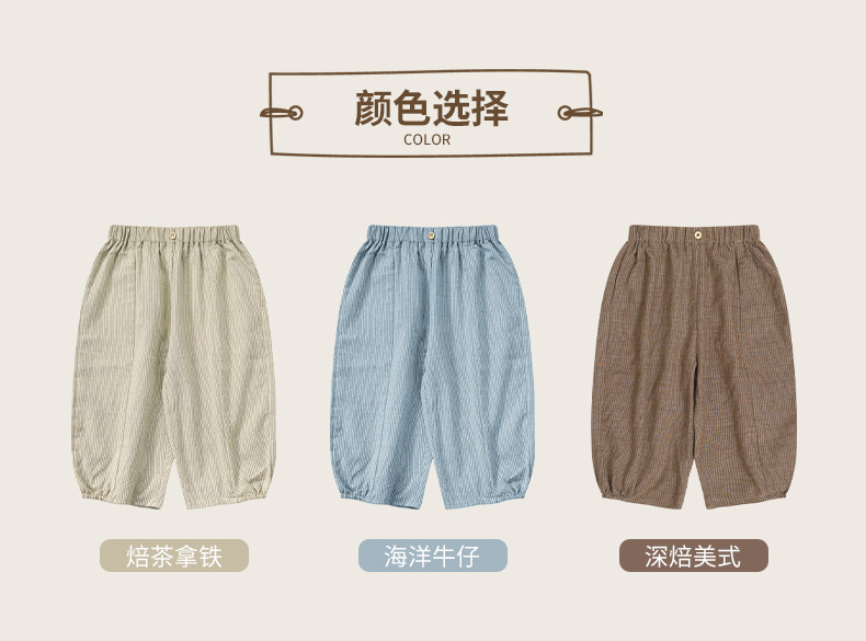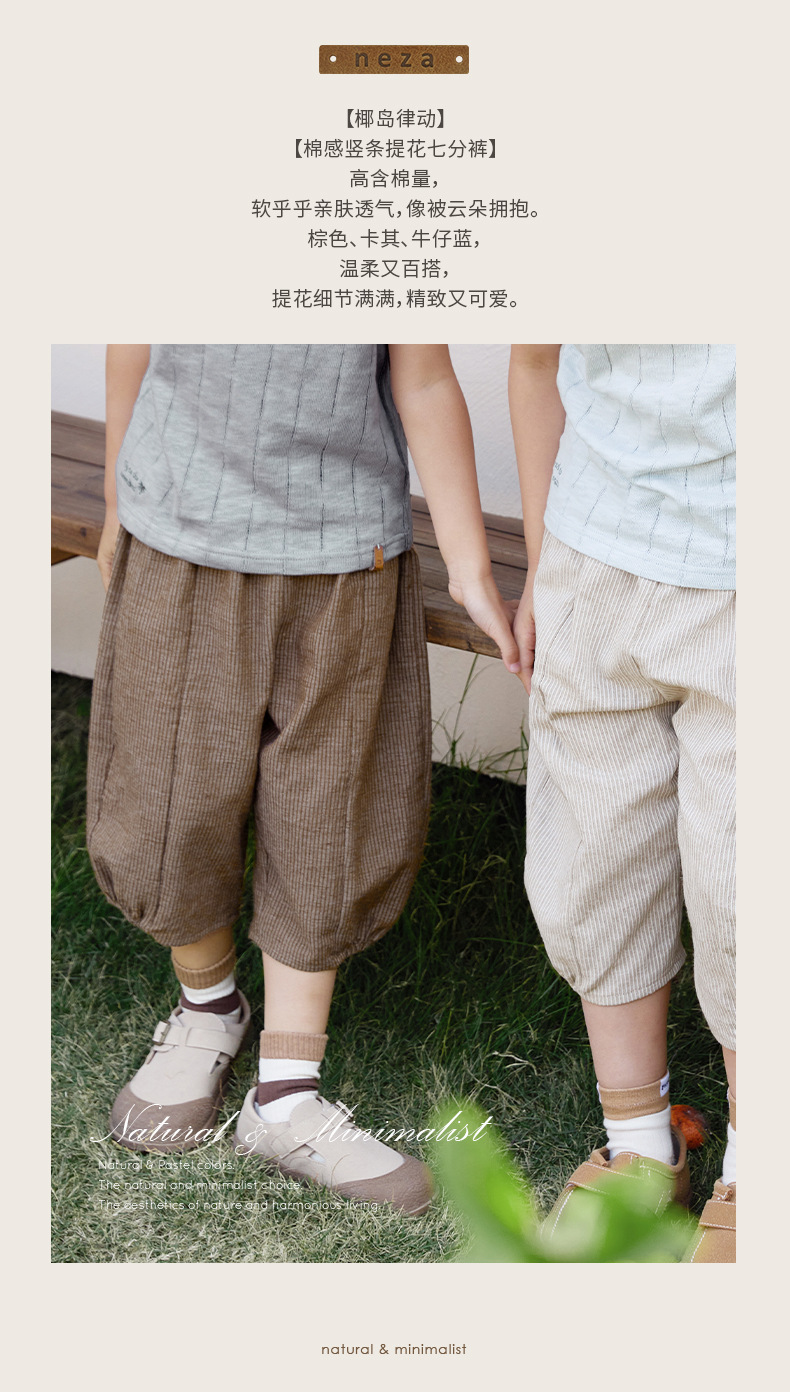 Neza [코코넛 아일랜드 리듬] 어린이 바지 여름 자른 바지 여자 바지 솔리드 컬러 소년 캐주얼 바지 아동복