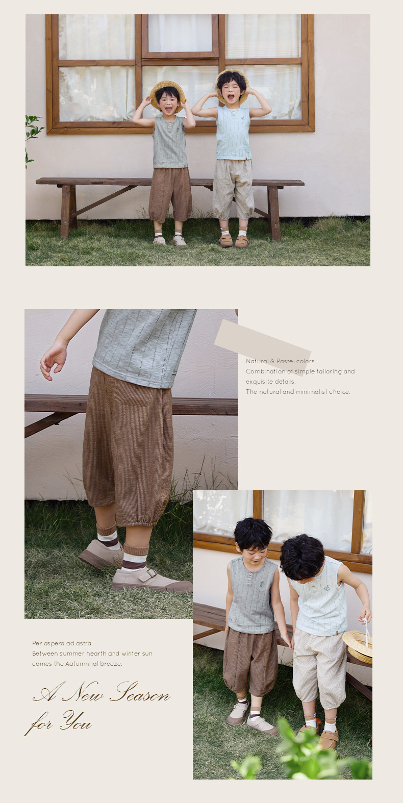 Neza [코코넛 아일랜드 리듬] 어린이 바지 여름 자른 바지 여자 바지 솔리드 컬러 소년 캐주얼 바지 아동복스토어 가기