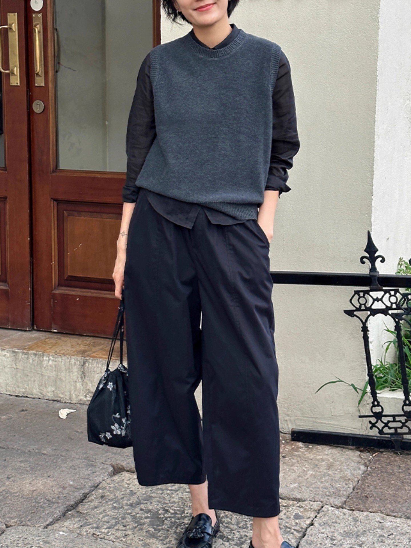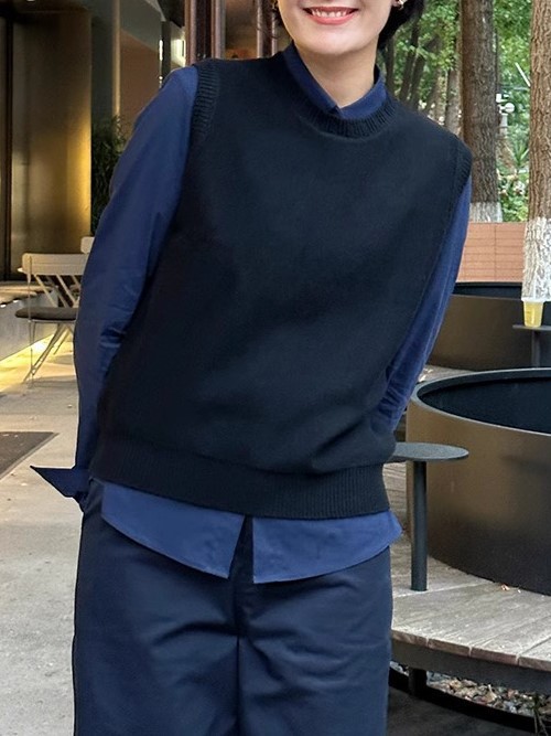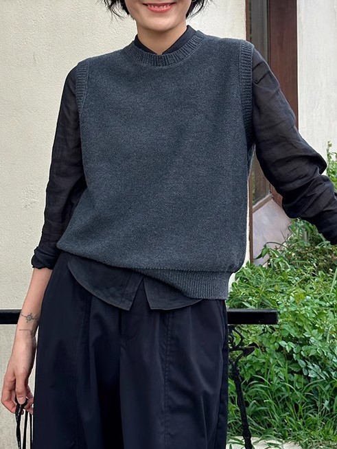 양모 니트 조끼 2025 봄 새로운 여성 민소매 조끼 외부 허리 코트 블랙 프리 사이즈스토어 가기