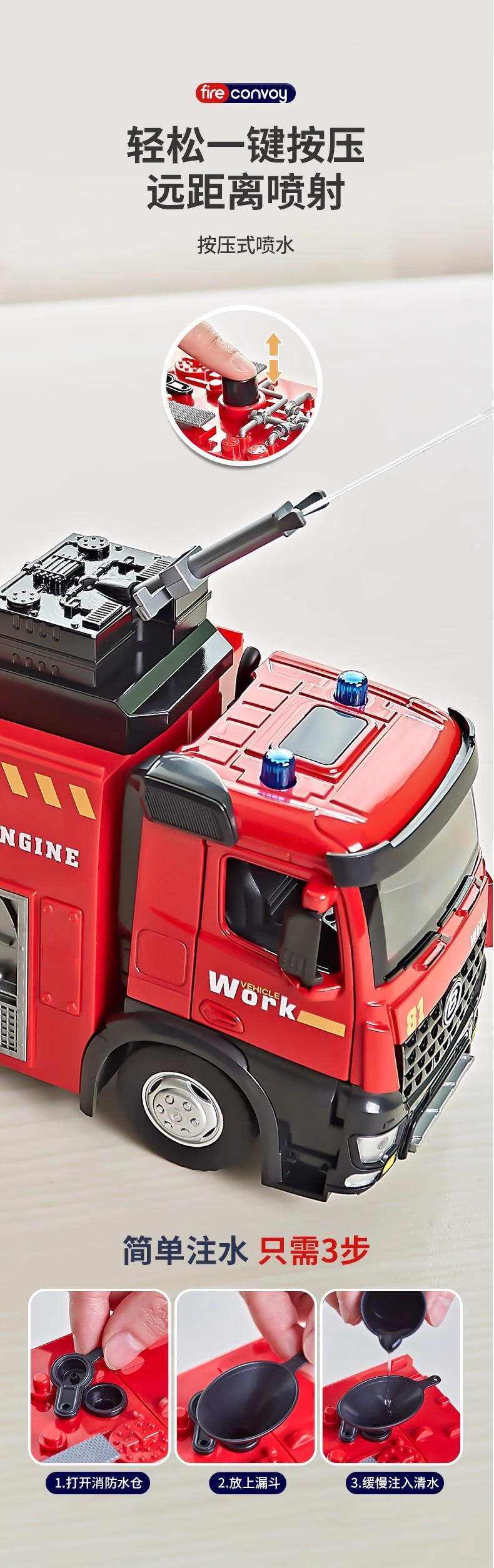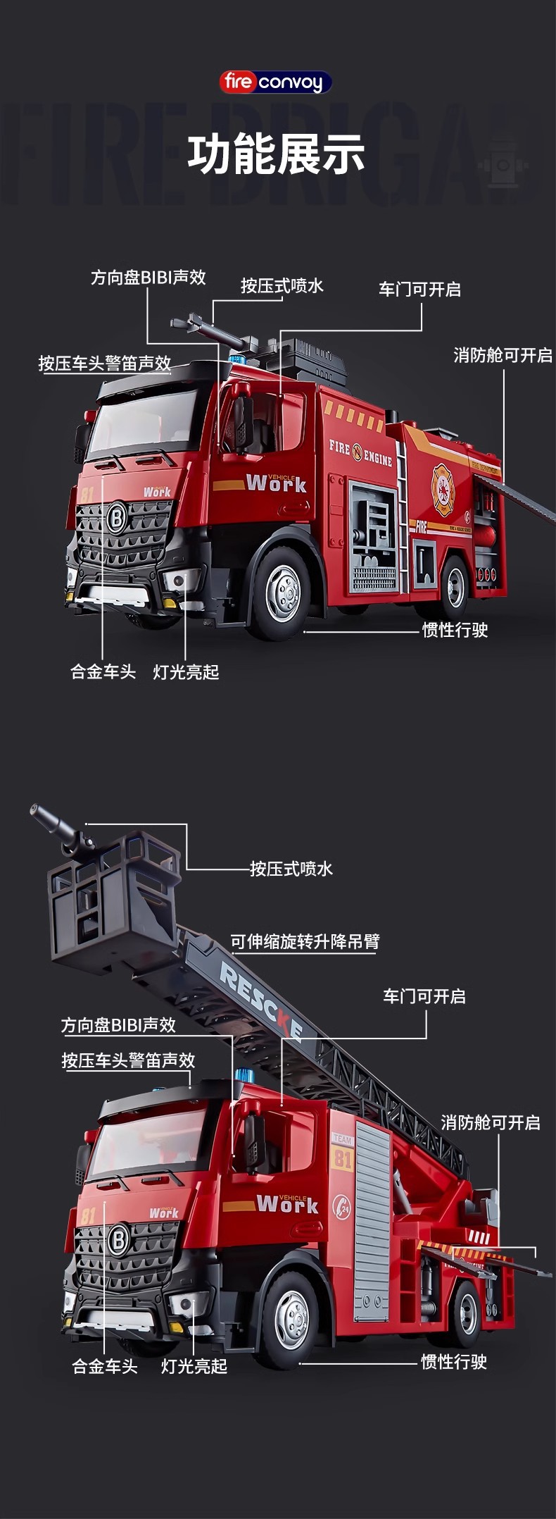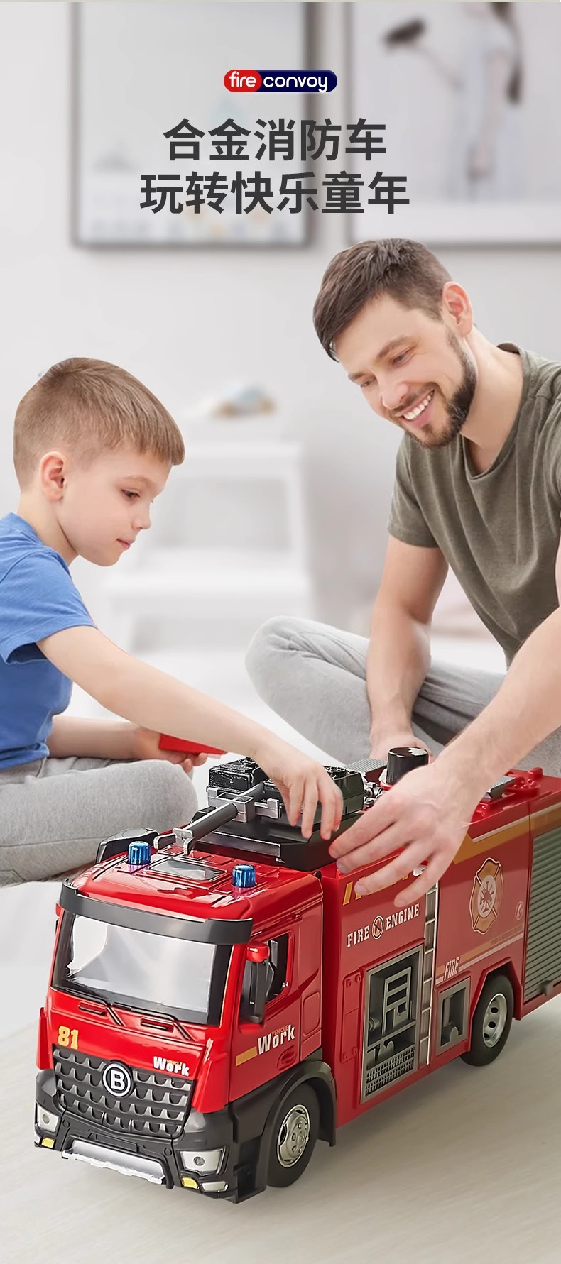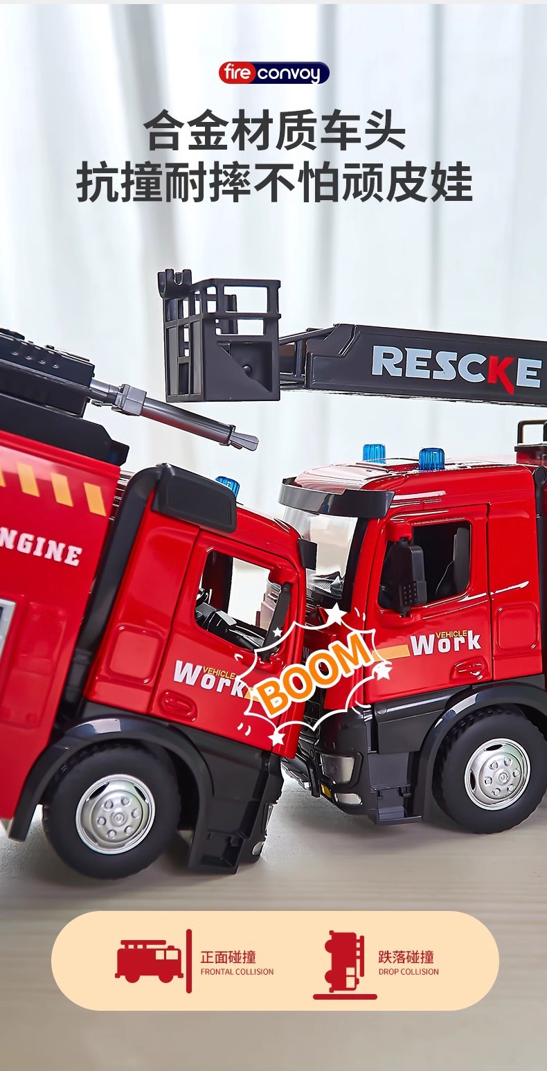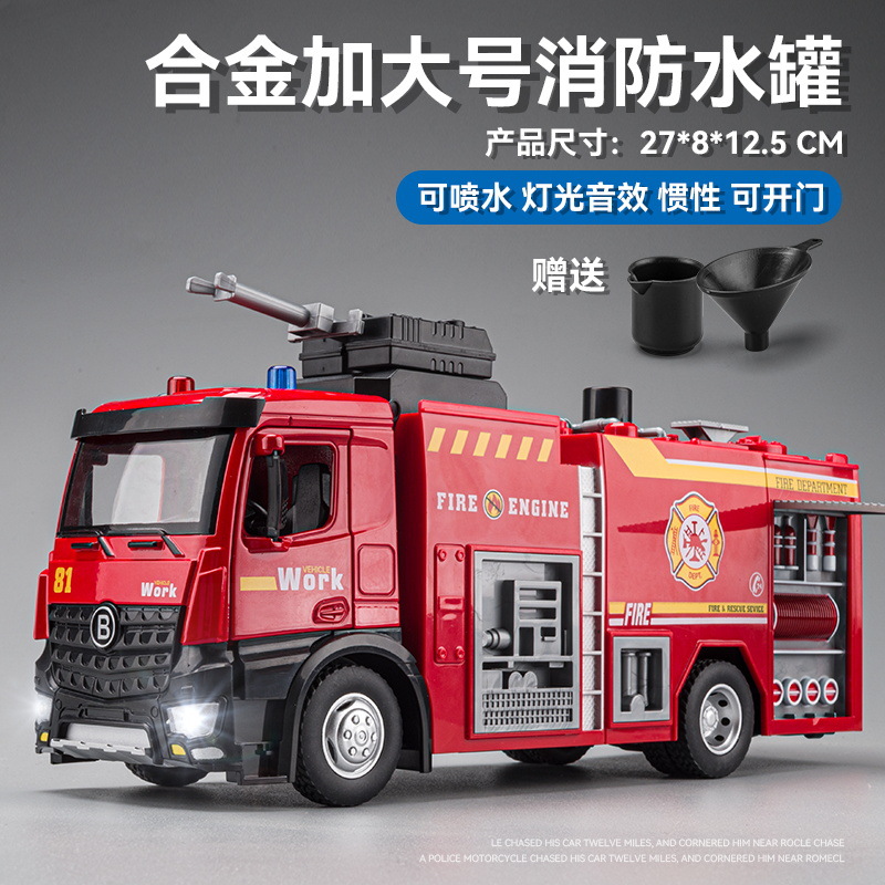 어린이 소방차 장난감 자동차 합금 대형 물 스프레이 구조 사다리 자동차 시뮬레이션 물 유조선 모델 장난감스토어 가기