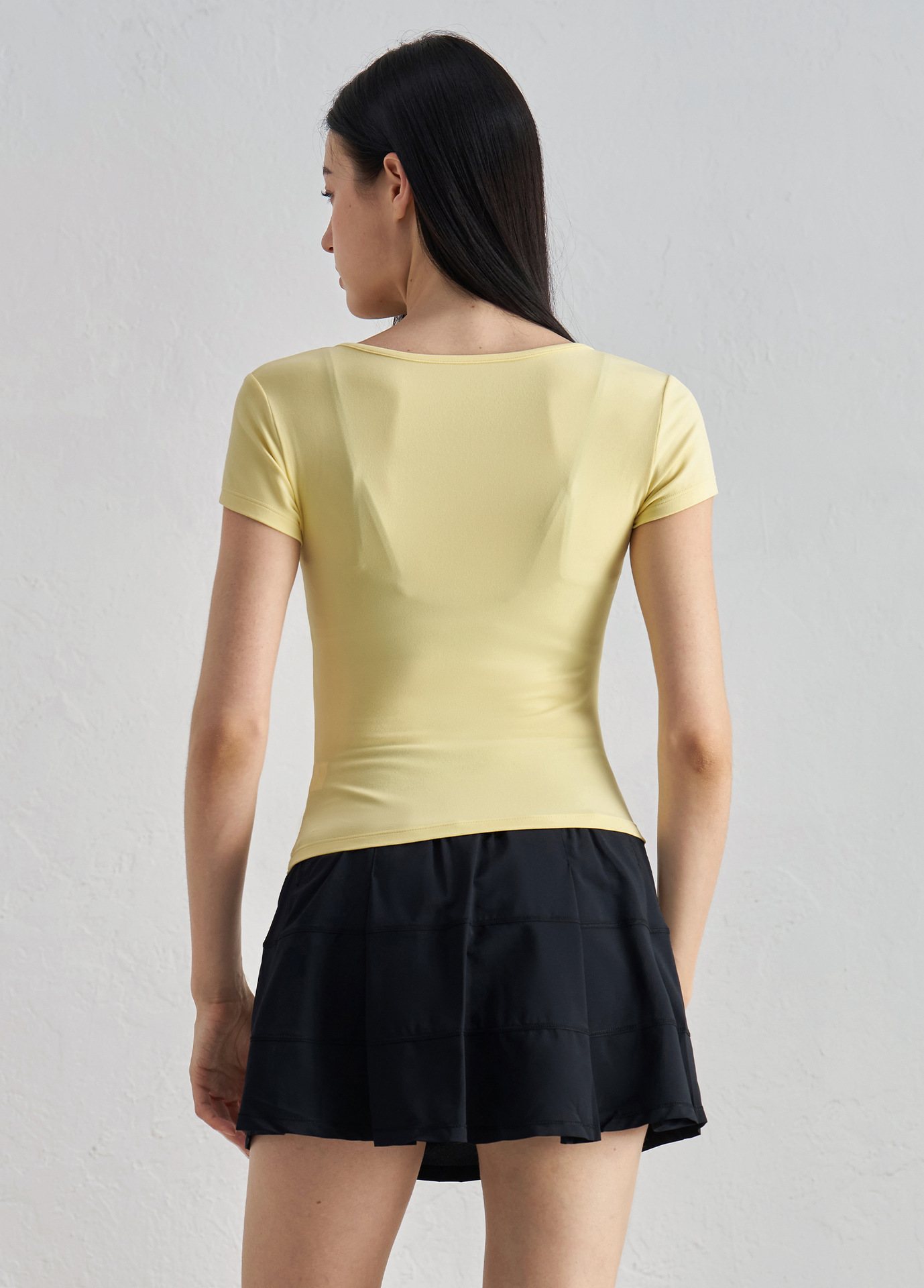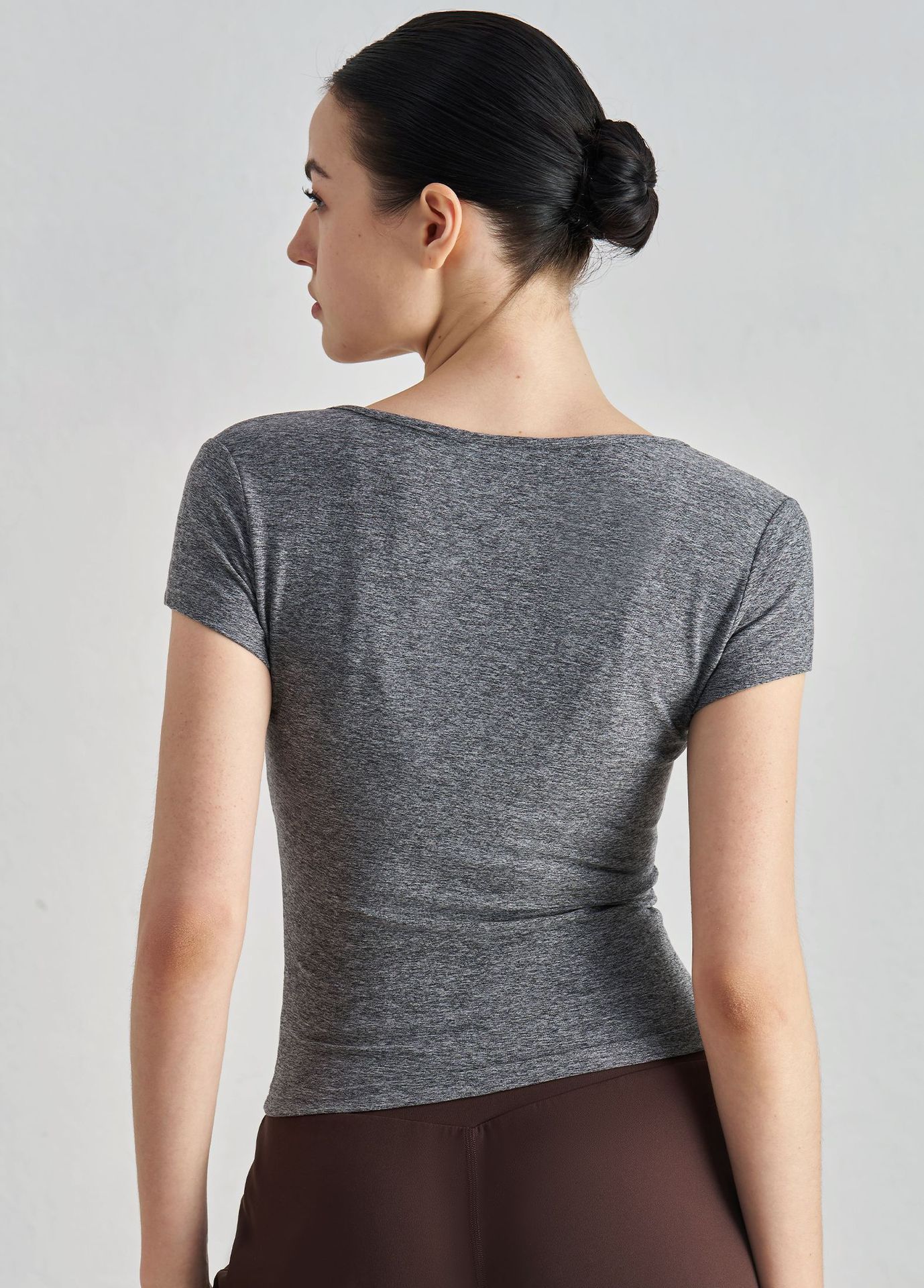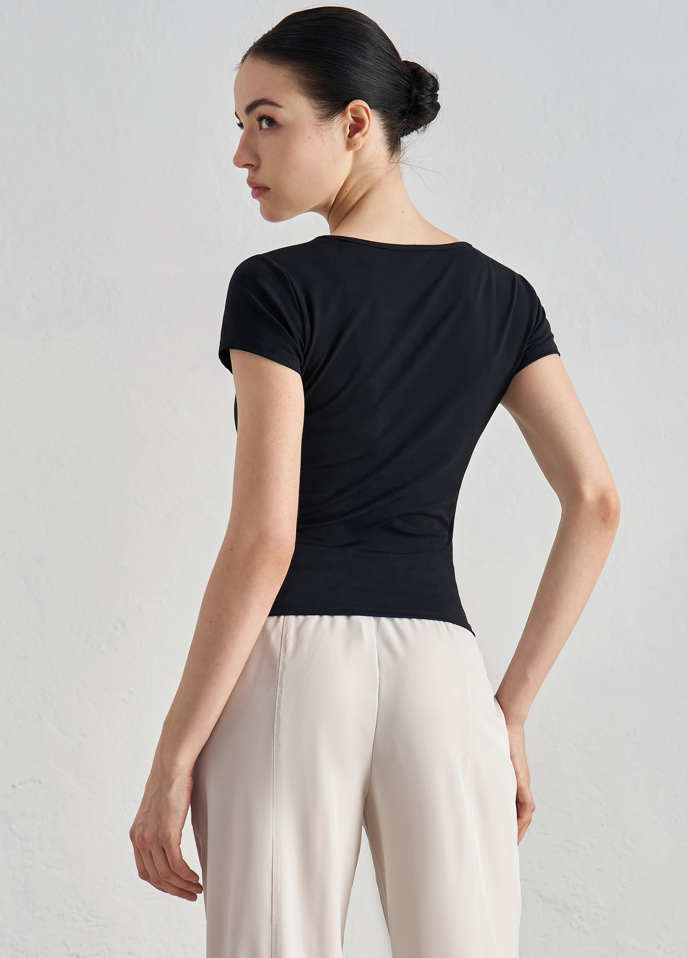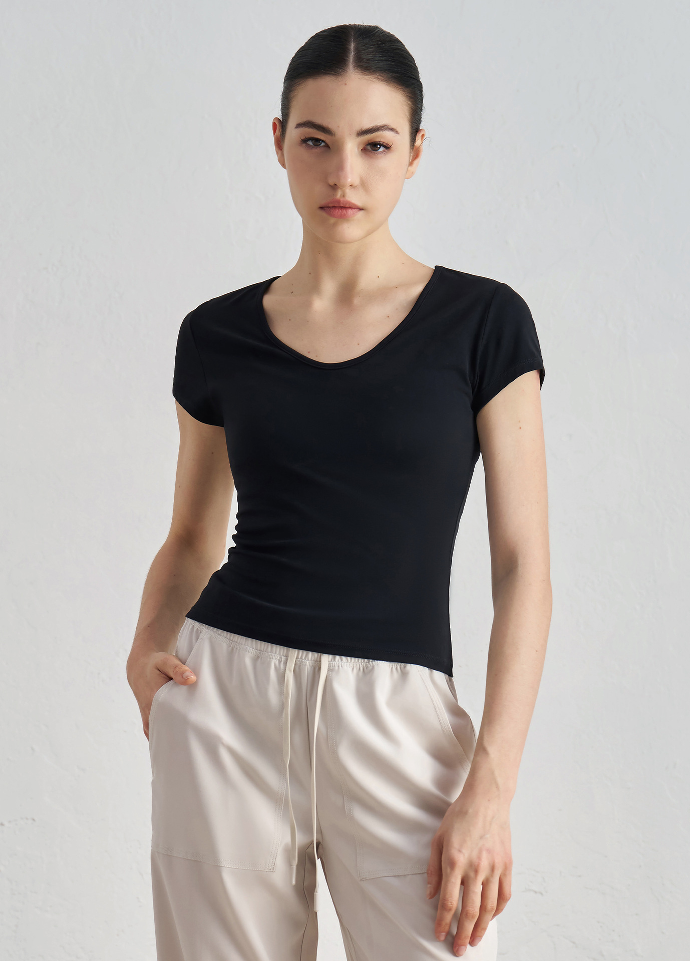 여성을 위한 여름 U넥 편안한 요가복, 허리를 잘록하게 잡아주는 슬림핏 짧은 요가 T, 패셔너블하고 심플하며 고급스러운 반팔 상의