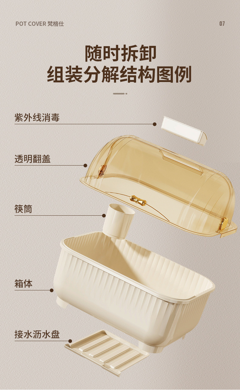 뚜껑 그릇 상자 그릇 접시 식기 식기 가정용 그릇 랙 보관 선반 보울 젓가락 보관 상자가있는 주방 배수 찬장