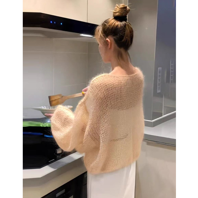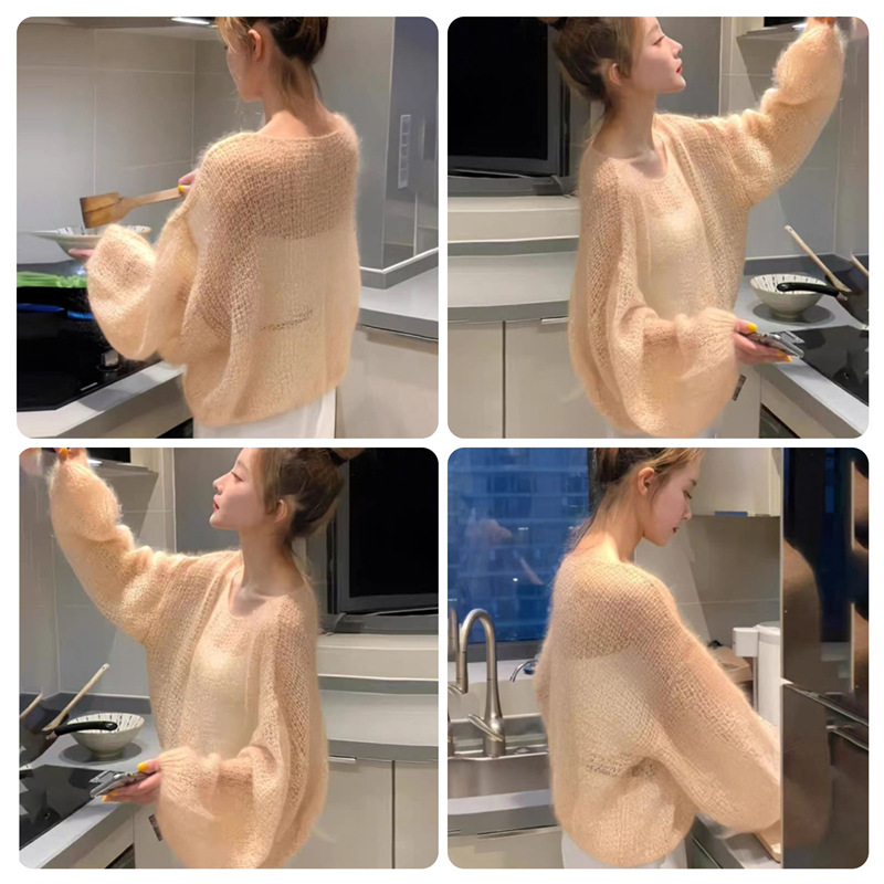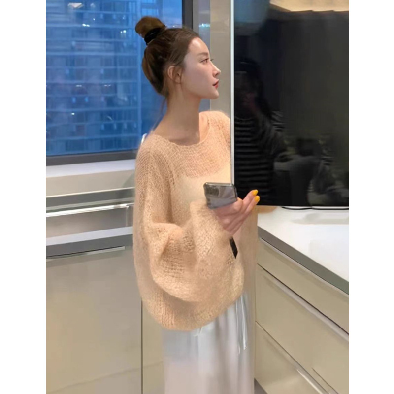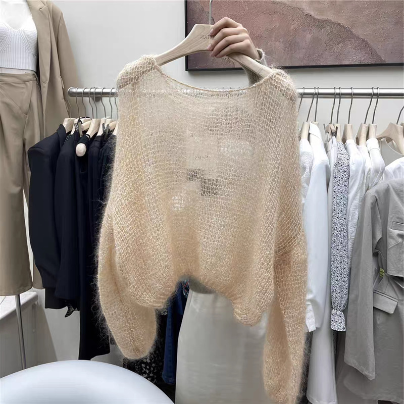 한국 동대문 니트 스웨터 2025 봄과 가을 캐주얼 조커 젠틀 스타일 얇은 할로우 스웨터 여성용 블라우스