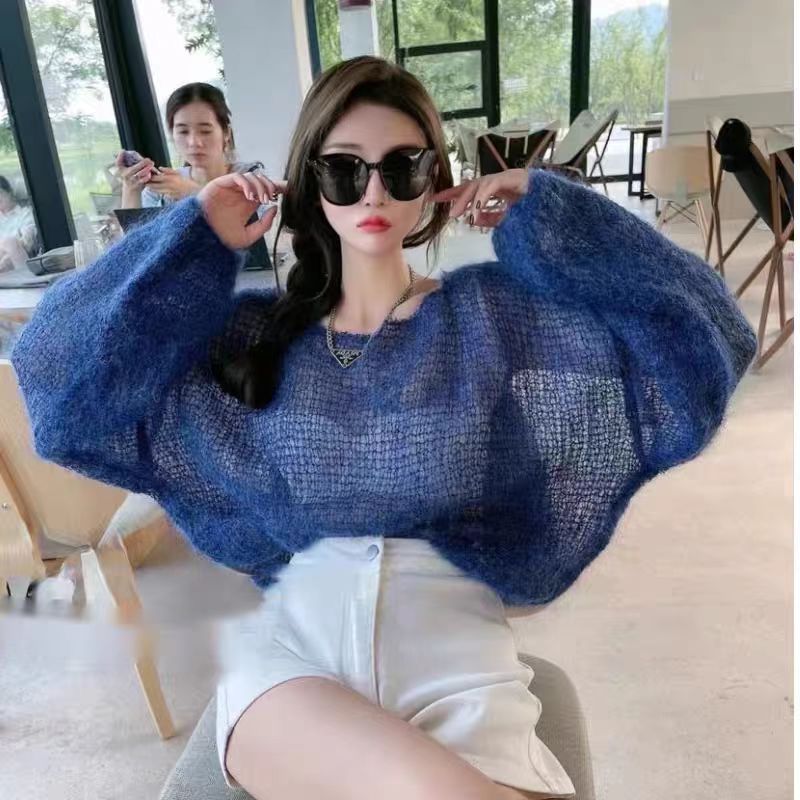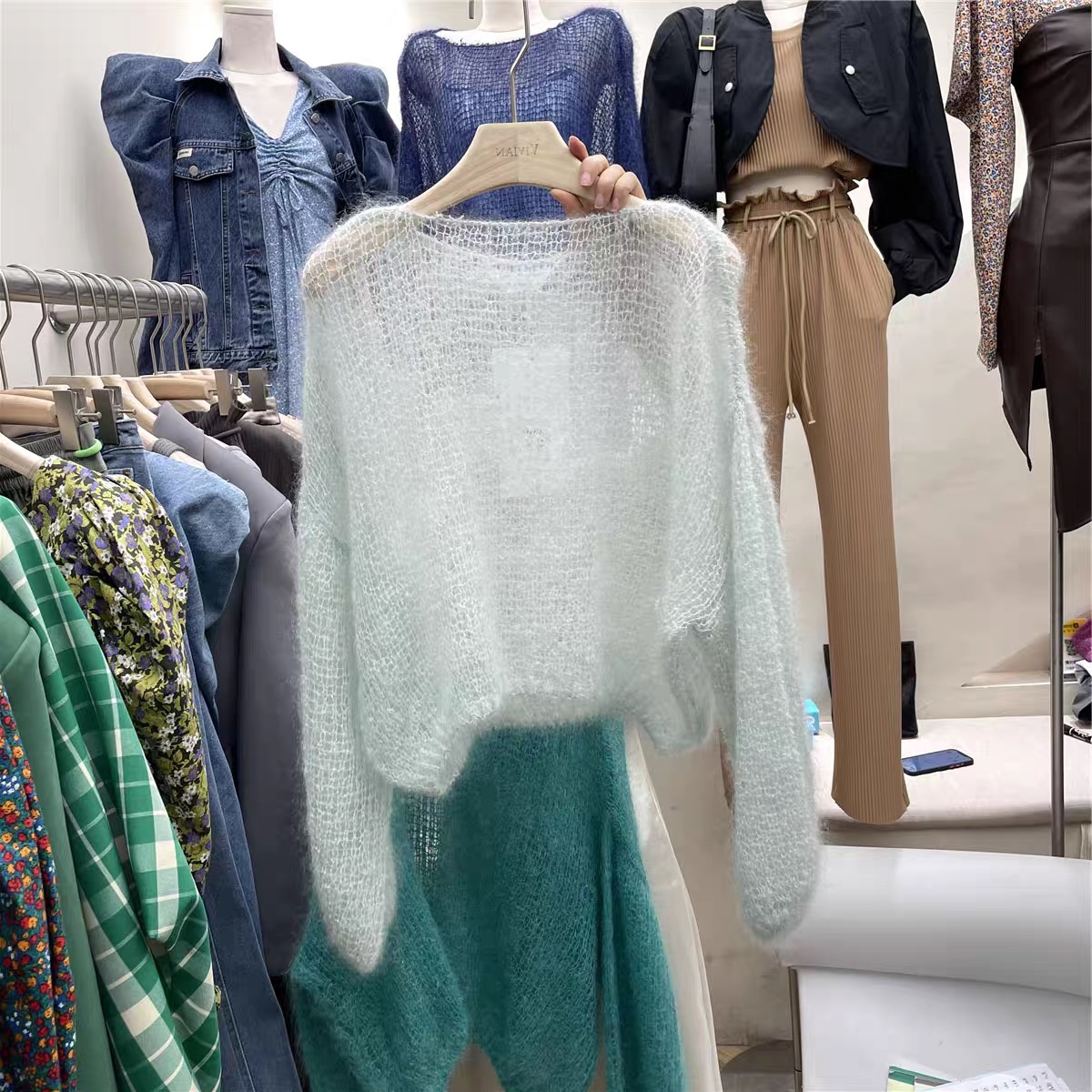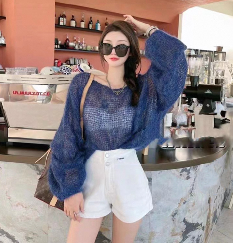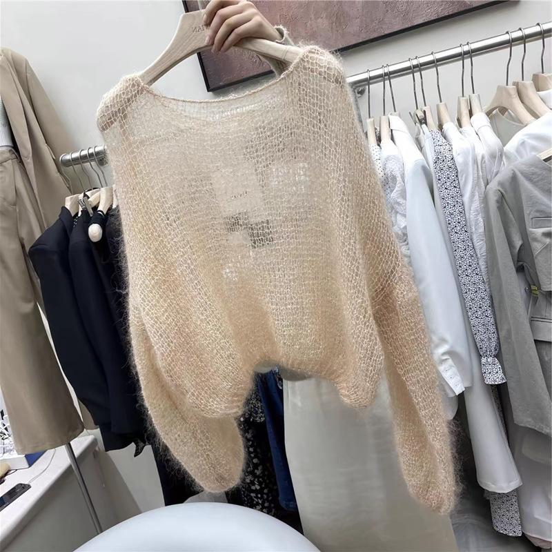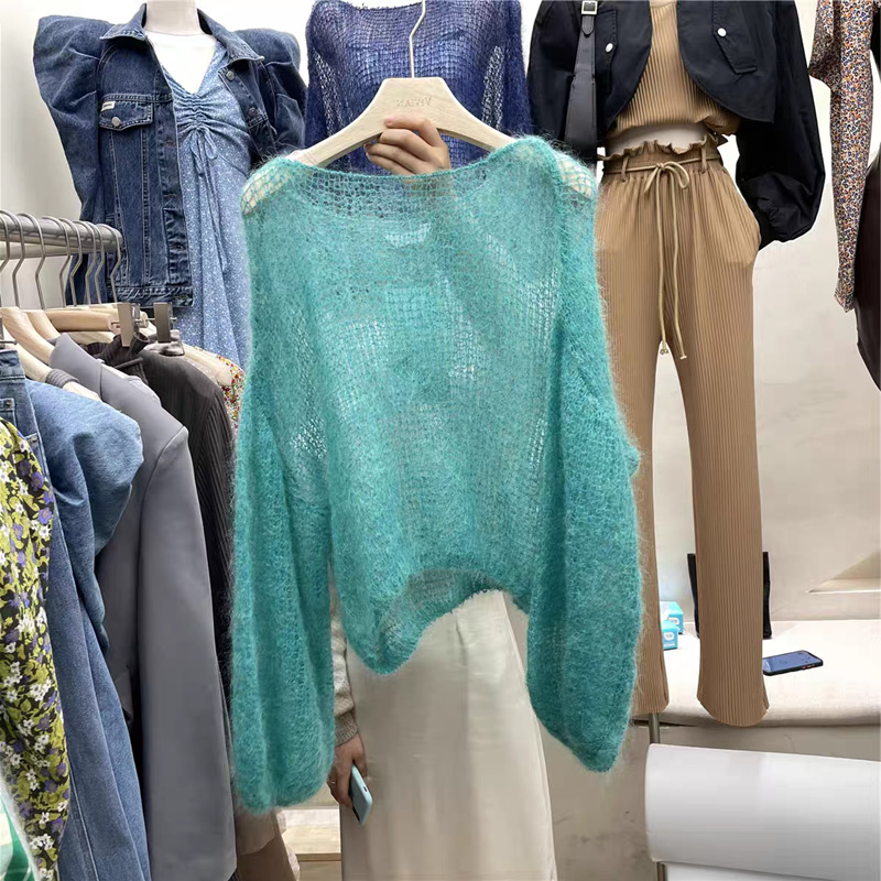한국 동대문 니트 스웨터 2025 봄과 가을 캐주얼 조커 젠틀 스타일 얇은 할로우 스웨터 여성용 블라우스스토어 가기