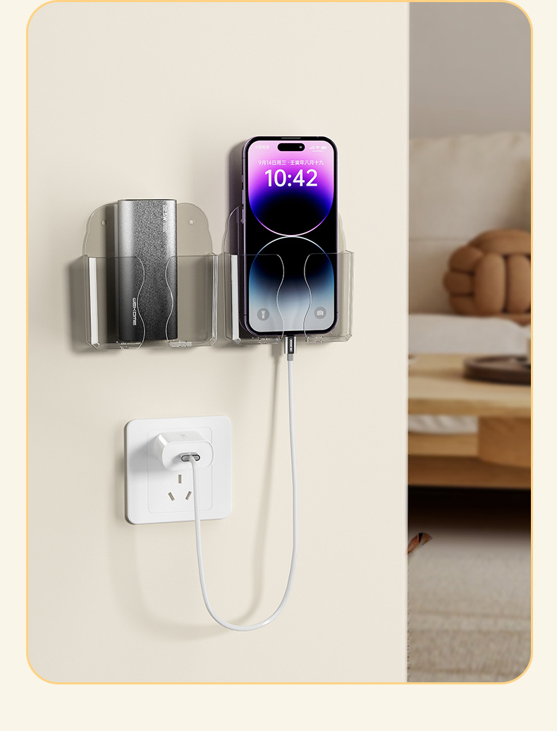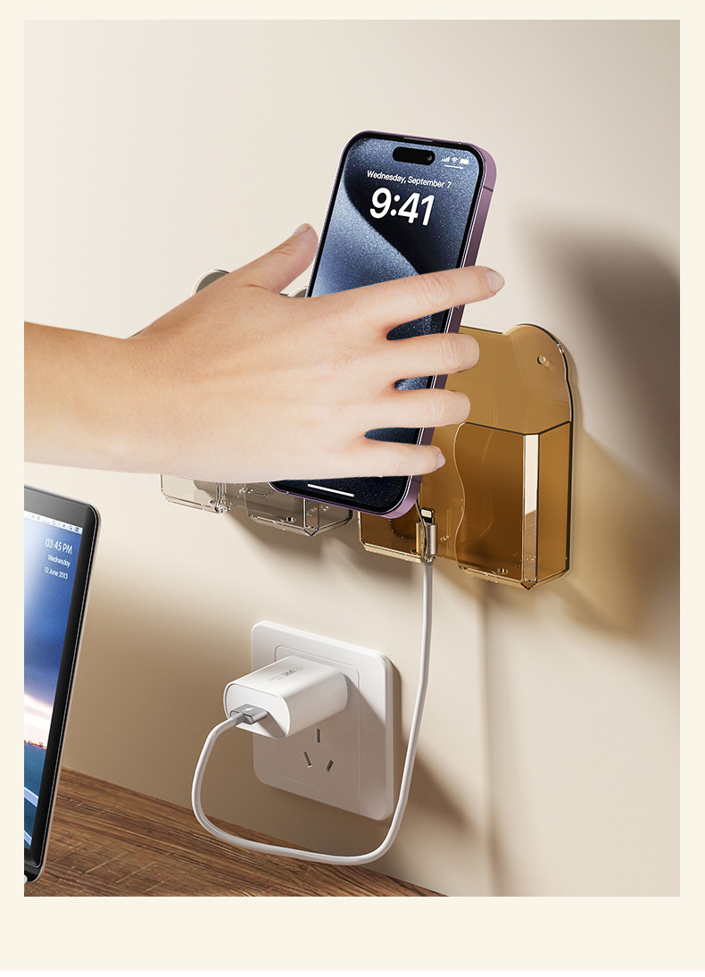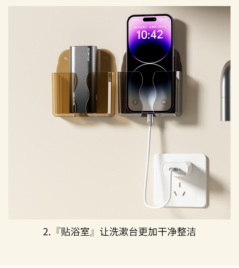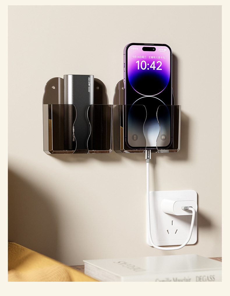 壁挂式手机收纳盒免打孔空调电视机遥控器收纳架床头手机充电支架