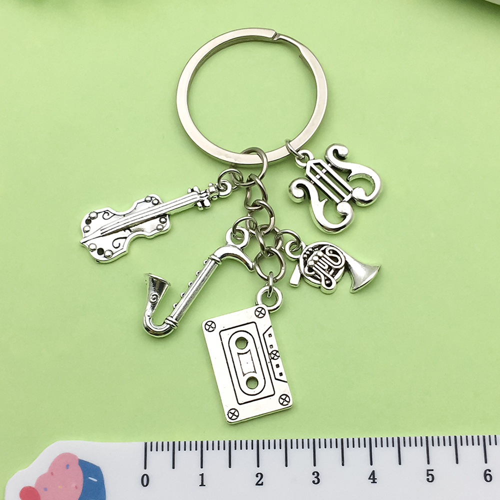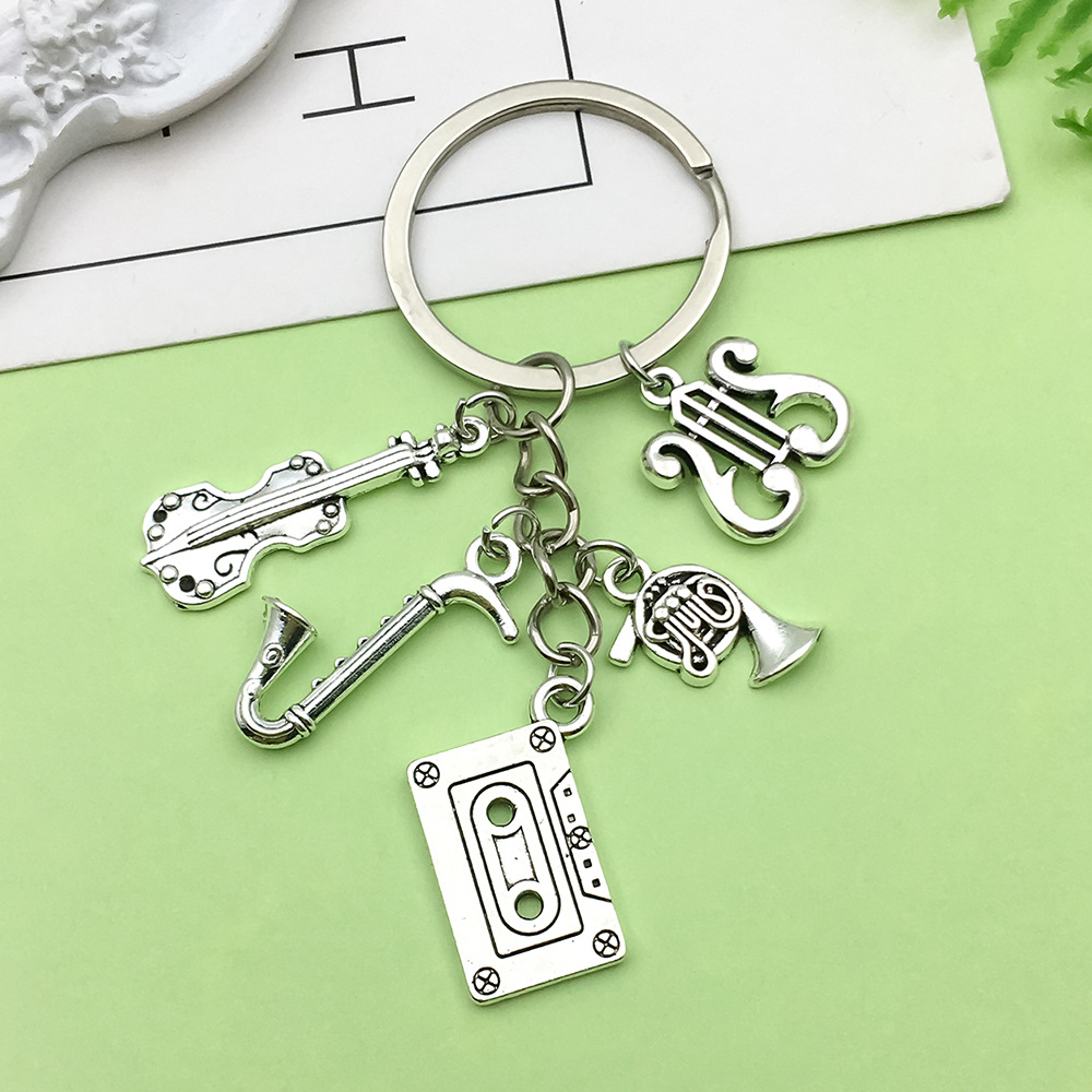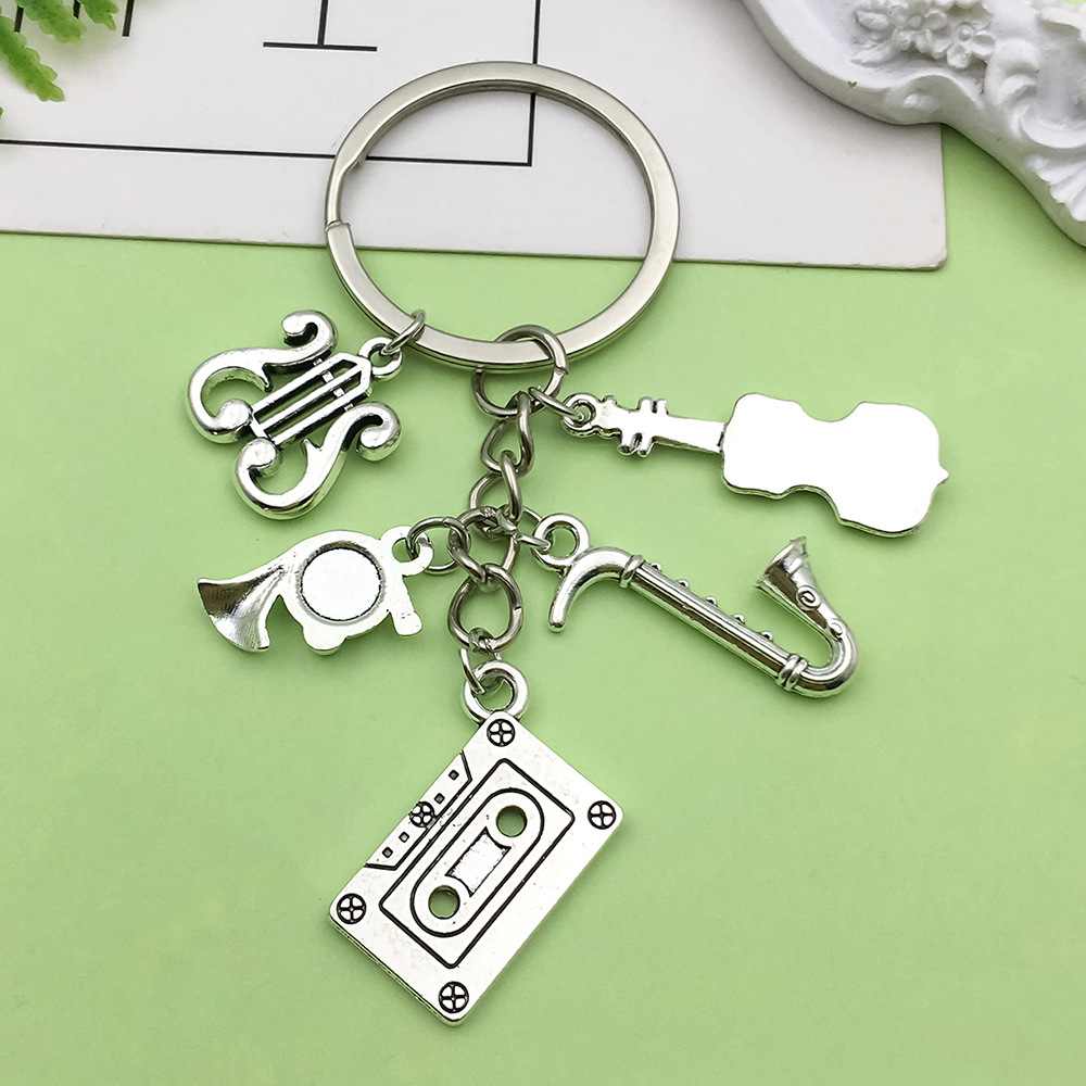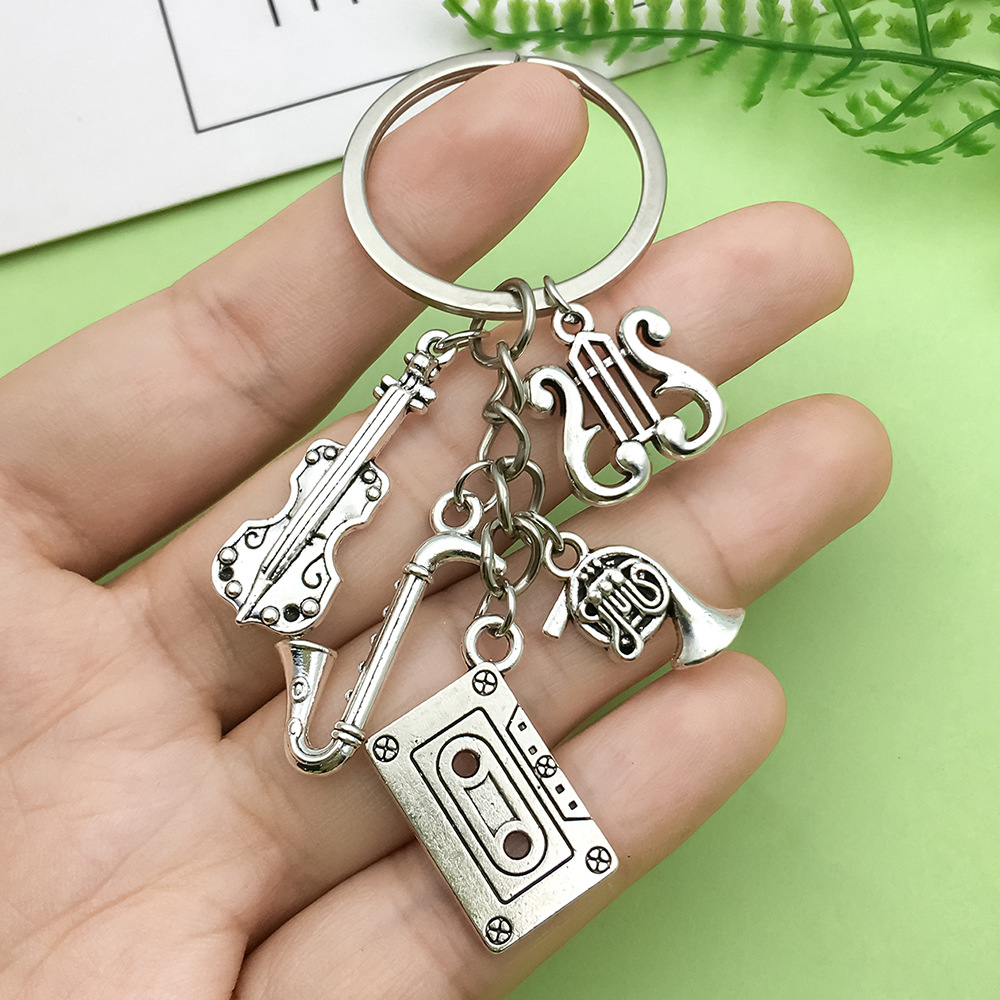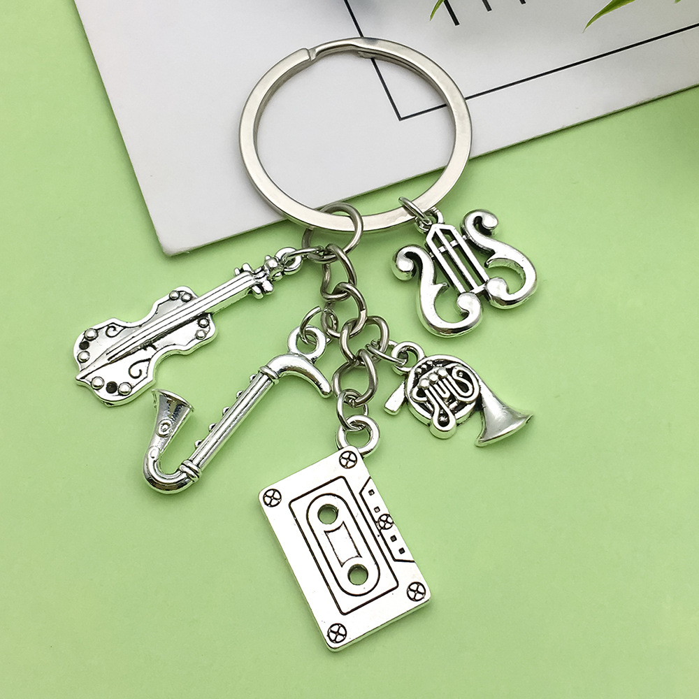 국경 간 뜨거운 판매 고대 실버 음악 테이프 색소폰 오르간 키 체인 창조적 인 디자인 센스 백 펜던트 작은 액세서리스토어 가기