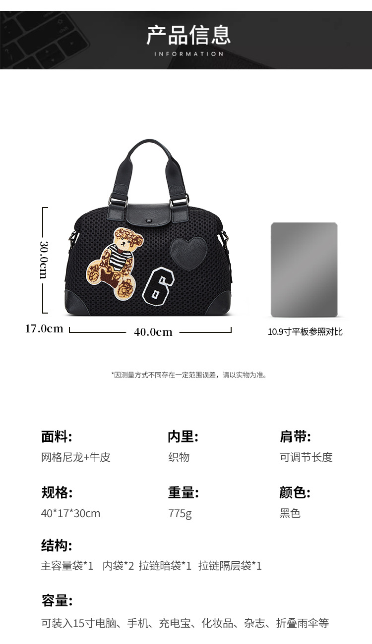 크로스보더 패션 여행 가방 남녀공용 단거리 숄더백 휴대용 대용량 크로스백 스트리트 패션 귀여운 만화 캐릭터스토어 가기
