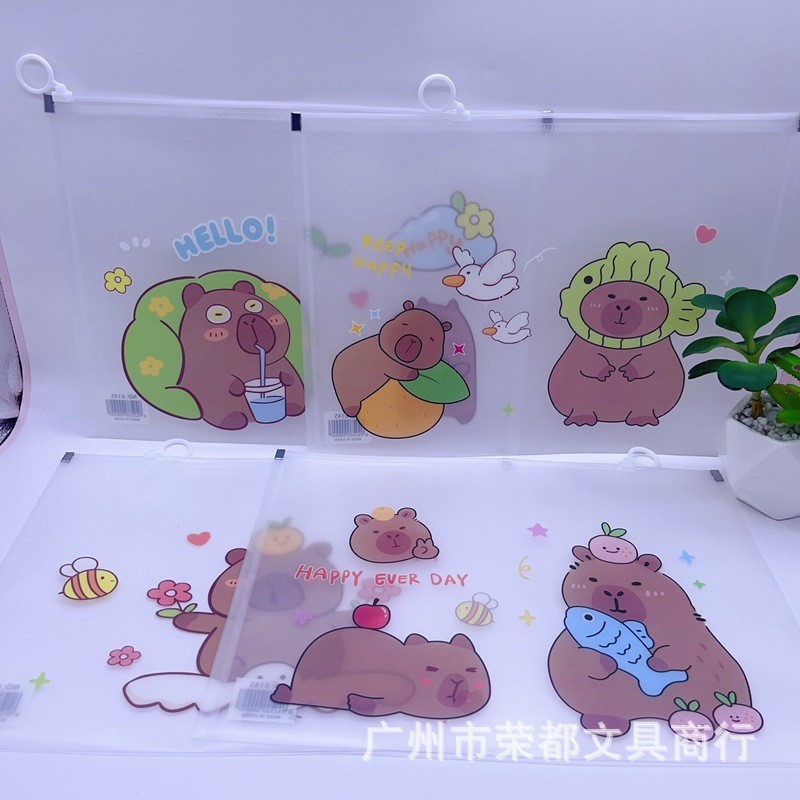 귀여운 만화 A4 지퍼 파일 가방 창조적 인 투명 반지 가방 학생 시험 종이 사무실 정보 저장 가방
