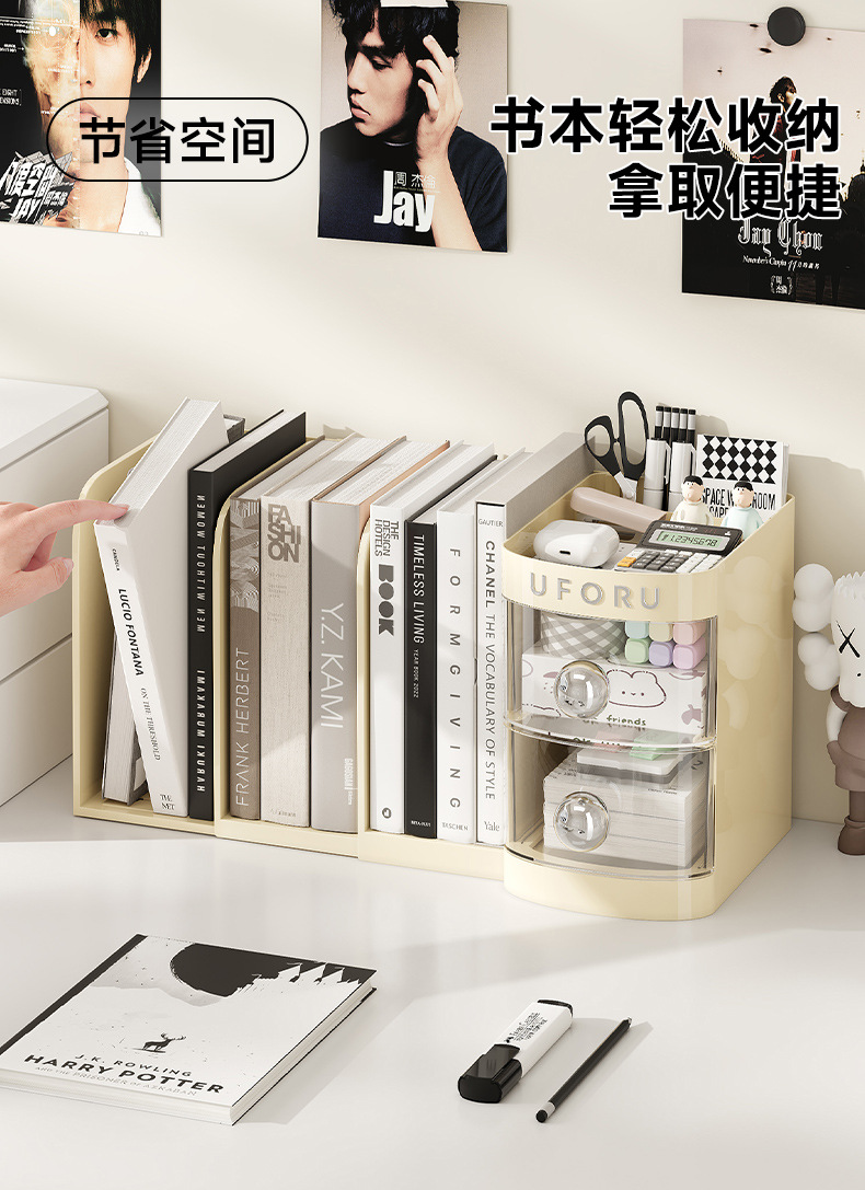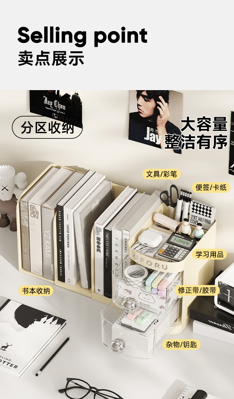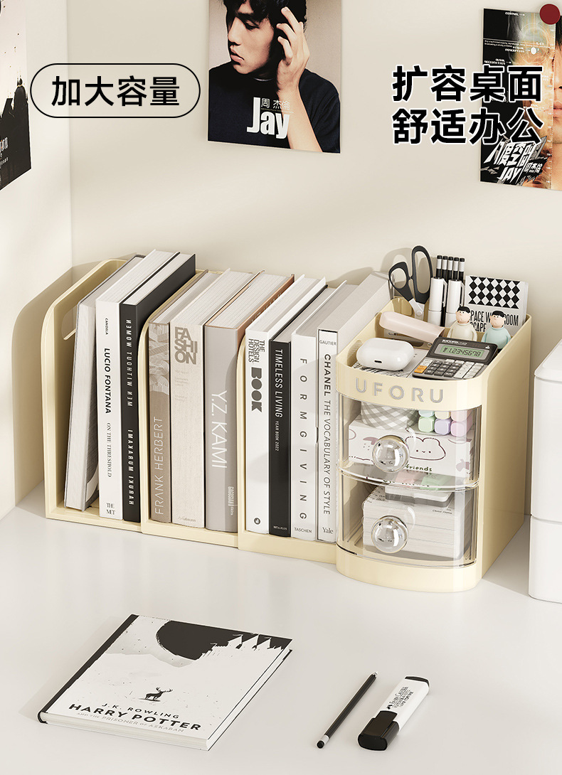 책꽂이 데스크탑 학생 책상 책 물펜 문구 서랍형 분리판 대용량 확장형 수납함