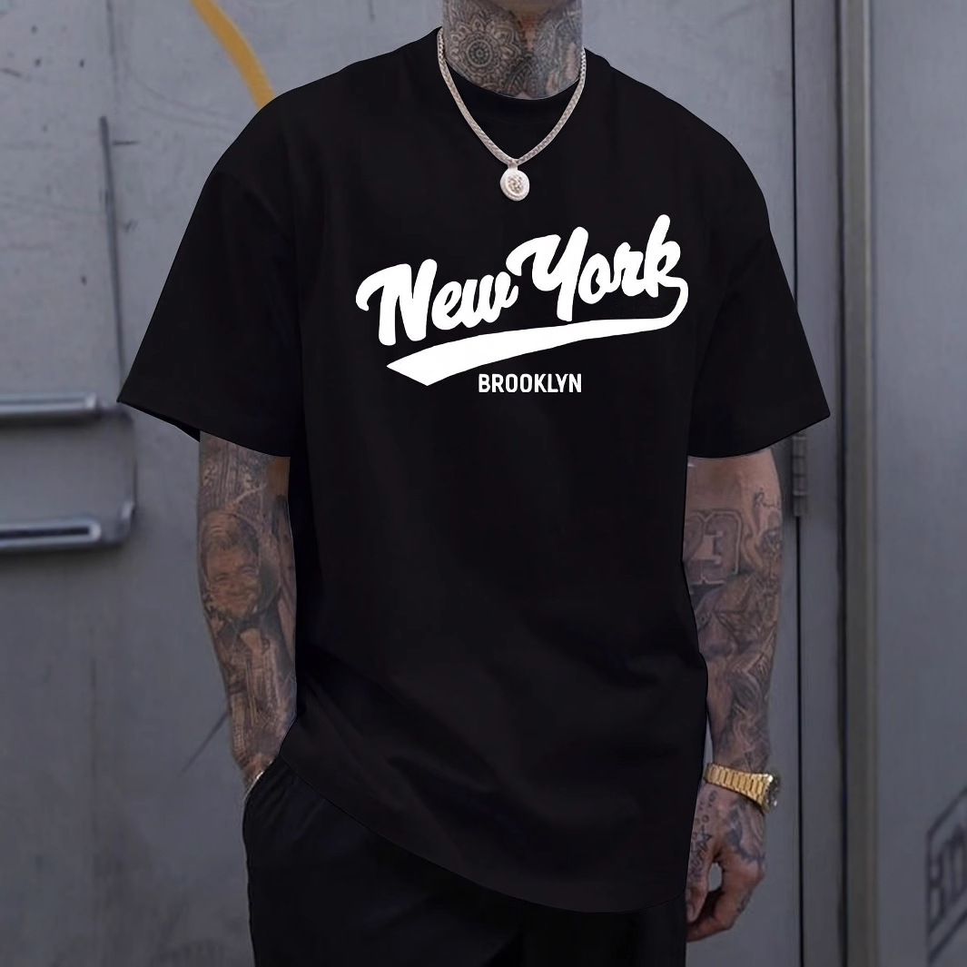 국경 간 대외 무역 AliExpress 아마존 티셔츠 짧은 소매 유럽과 미국 뉴욕 편지 인쇄 국경 간 여름 새로운 남성 의류