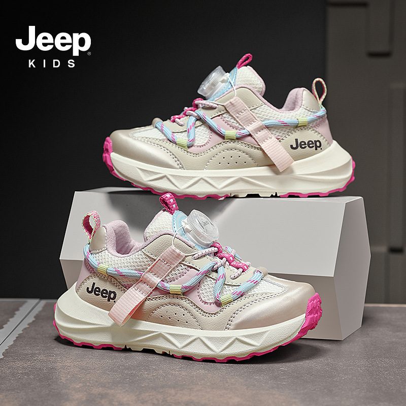 지프 소년 신발 2025 봄과 가을 새로운 도착 회전 버튼 운동화 편안한 경량 소녀 신발 통기성 메쉬 트렌디
