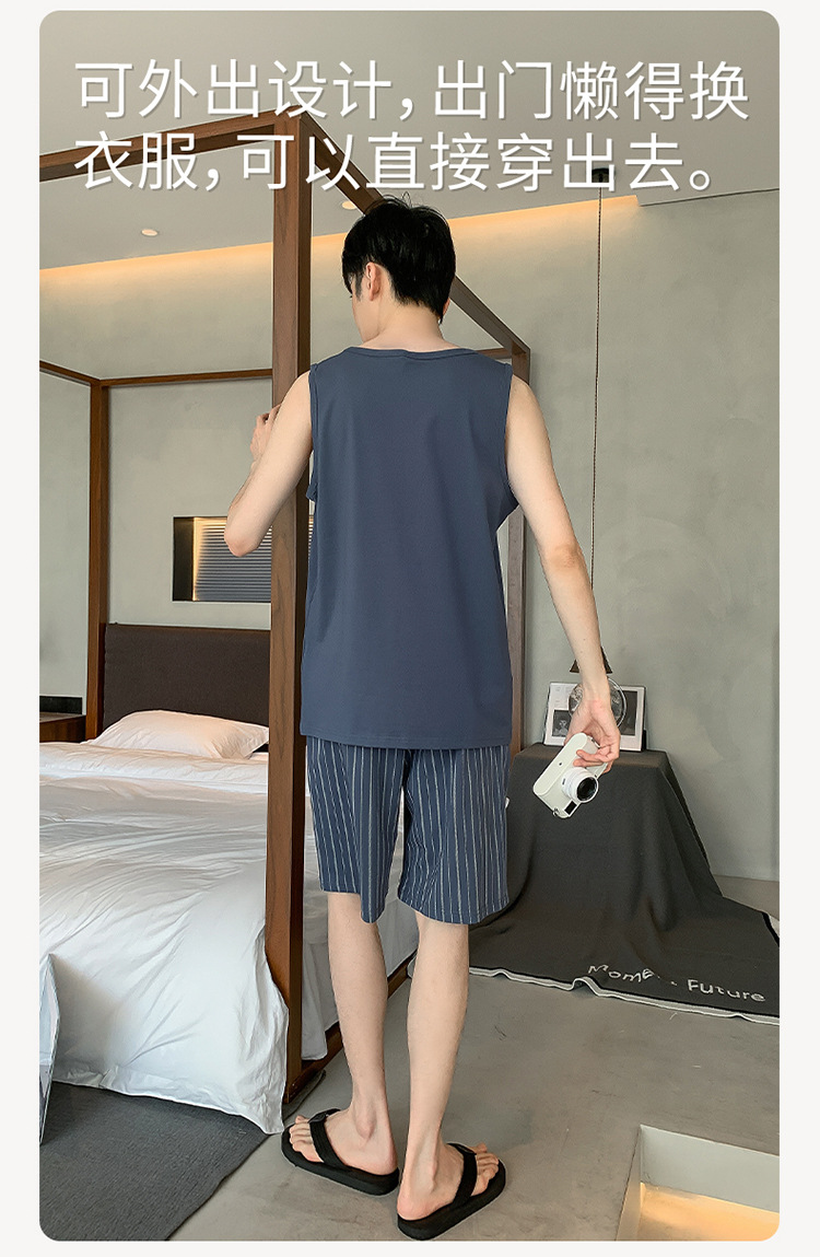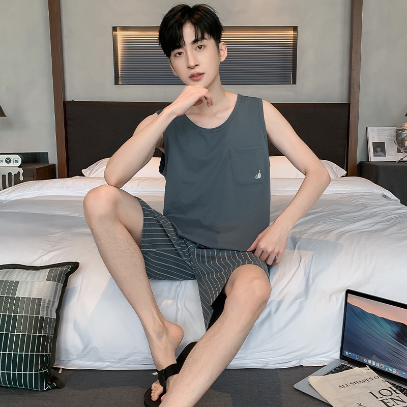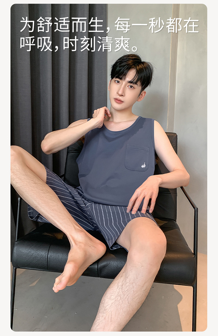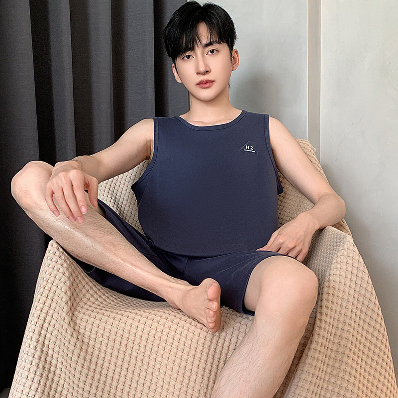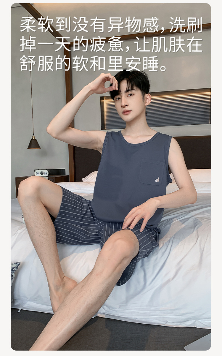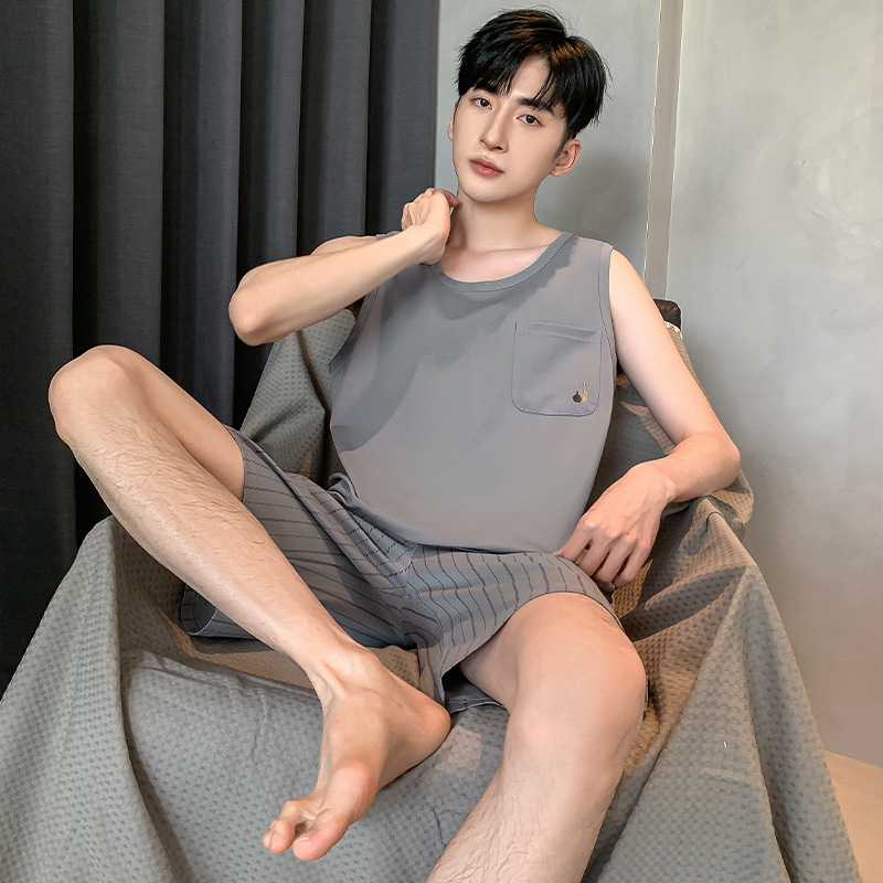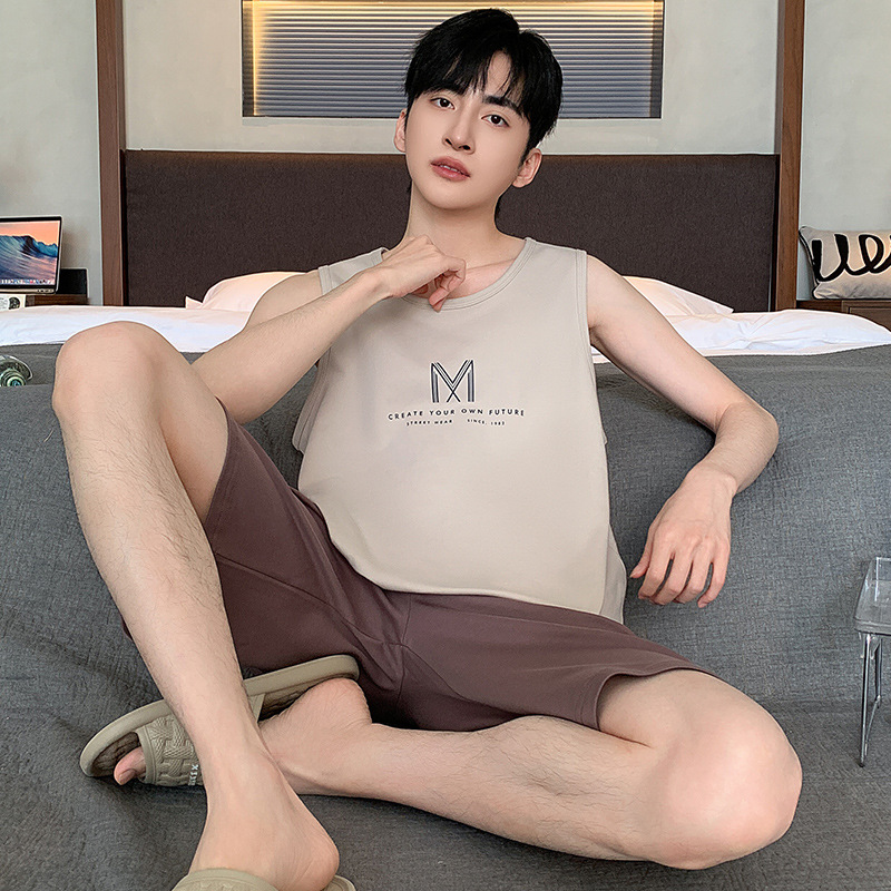 남성용 여름 잠옷 민소매 반바지 루즈핏 홈웨어 2025년 신상 남성용 여름 빅사이즈 세트스토어 가기