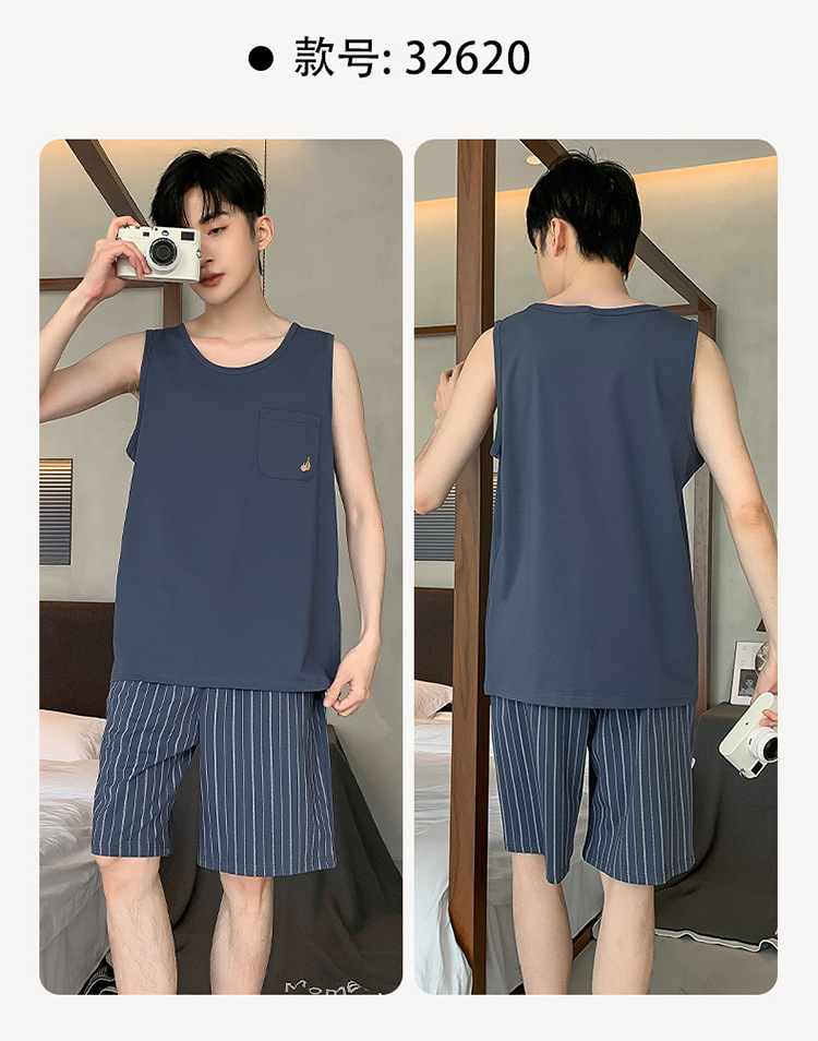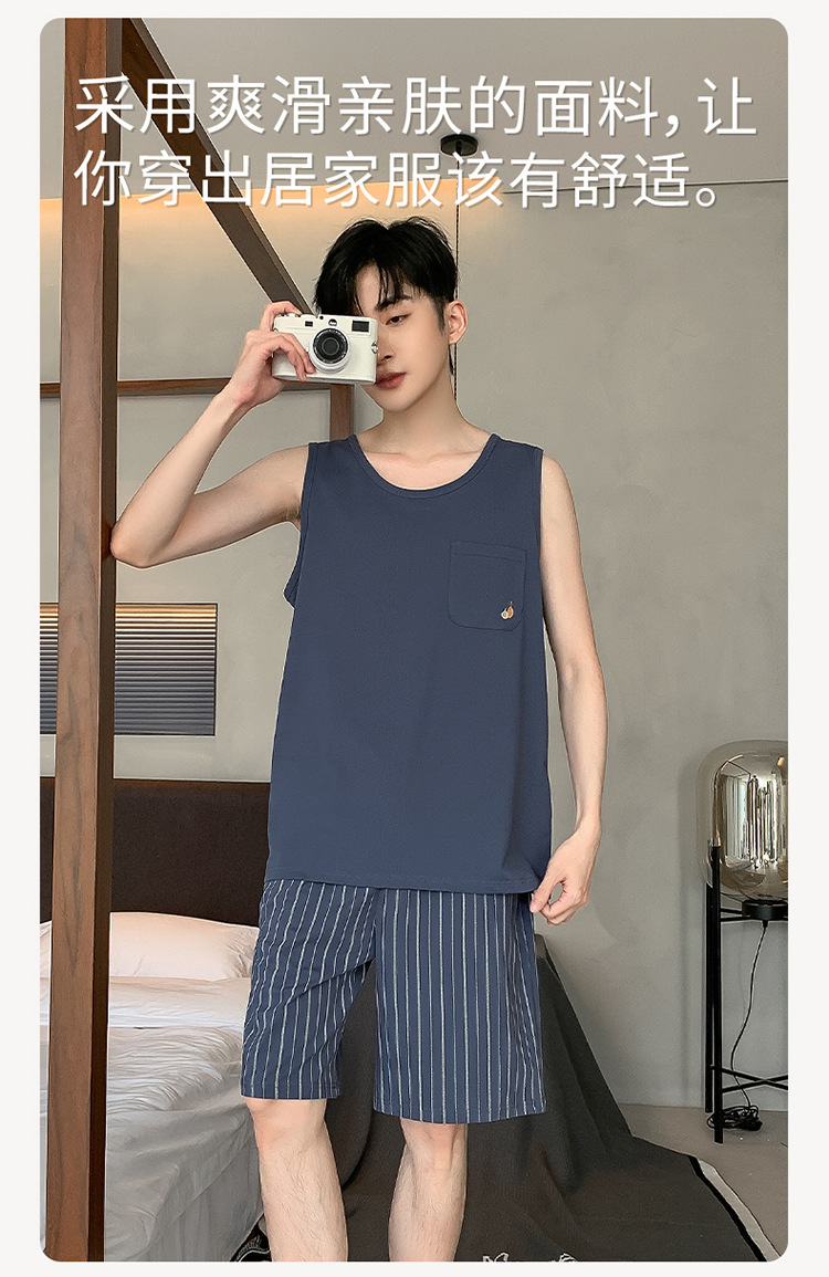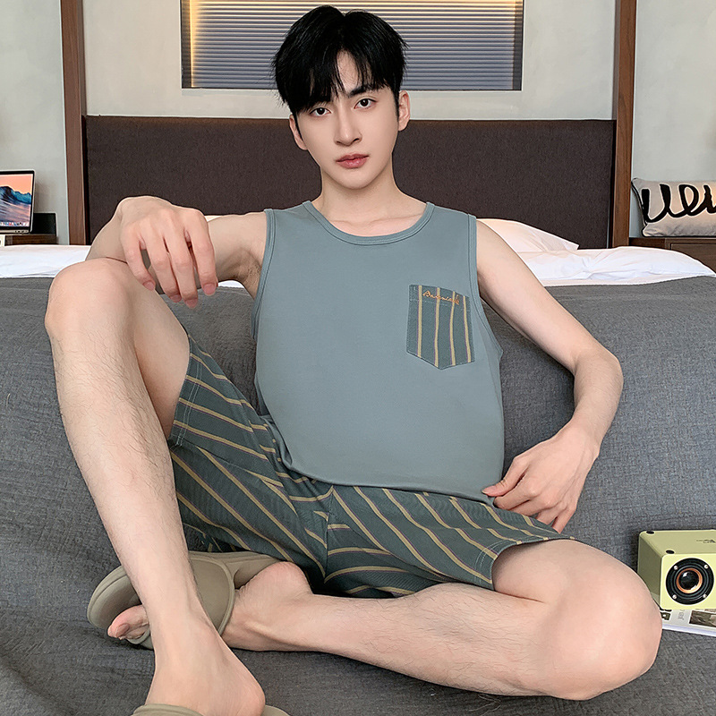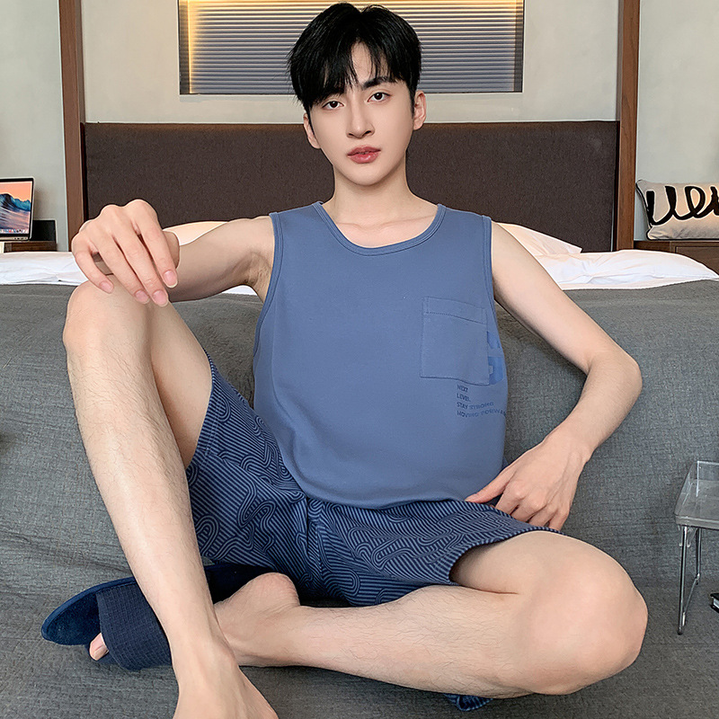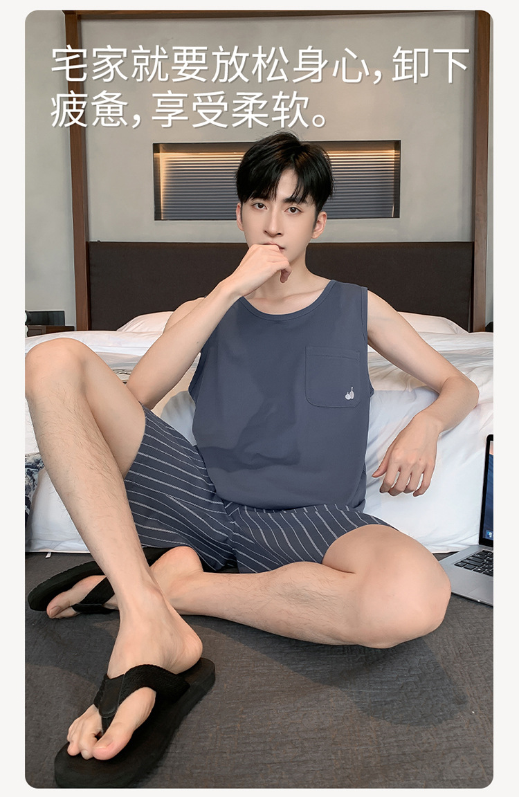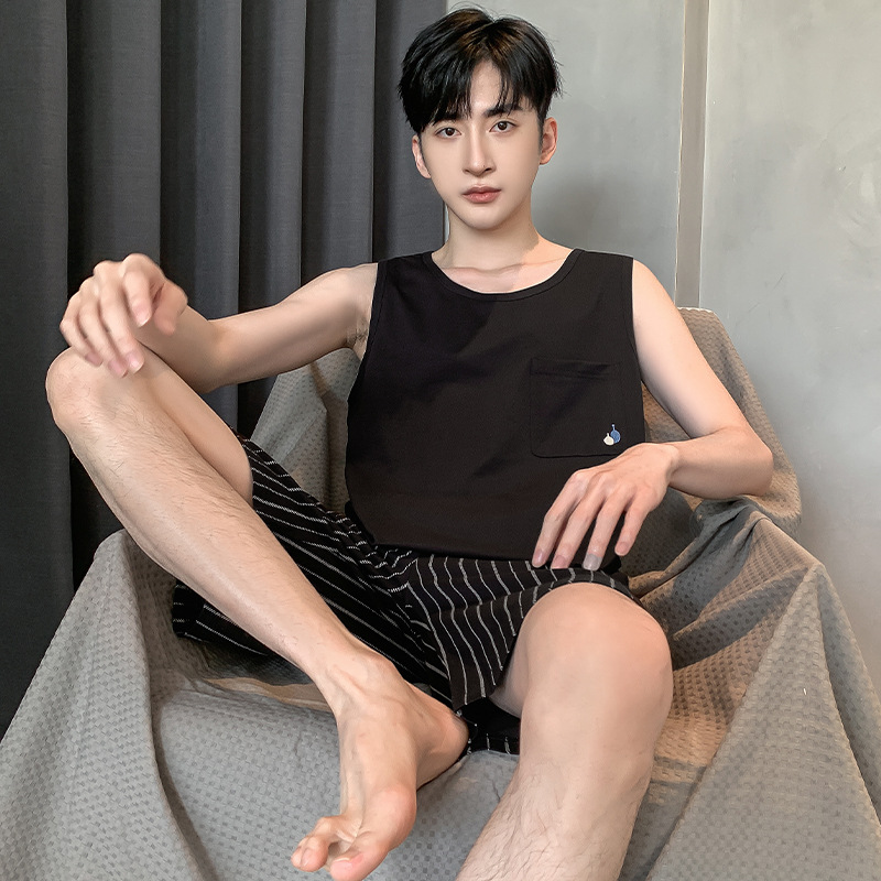 남성용 여름 잠옷 민소매 반바지 루즈핏 홈웨어 2025년 신상 남성용 여름 빅사이즈 세트스토어 가기