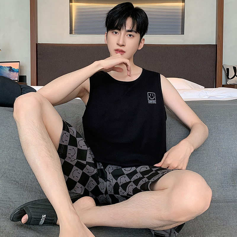 남성용 여름 잠옷 민소매 반바지 루즈핏 홈웨어 2025년 신상 남성용 여름 빅사이즈 세트