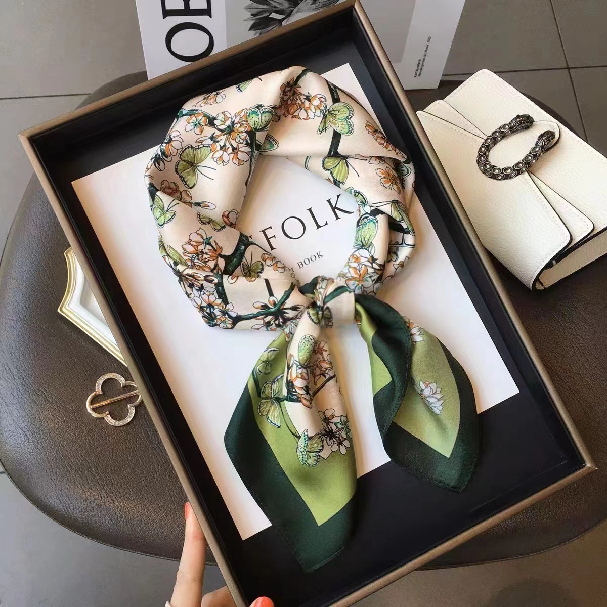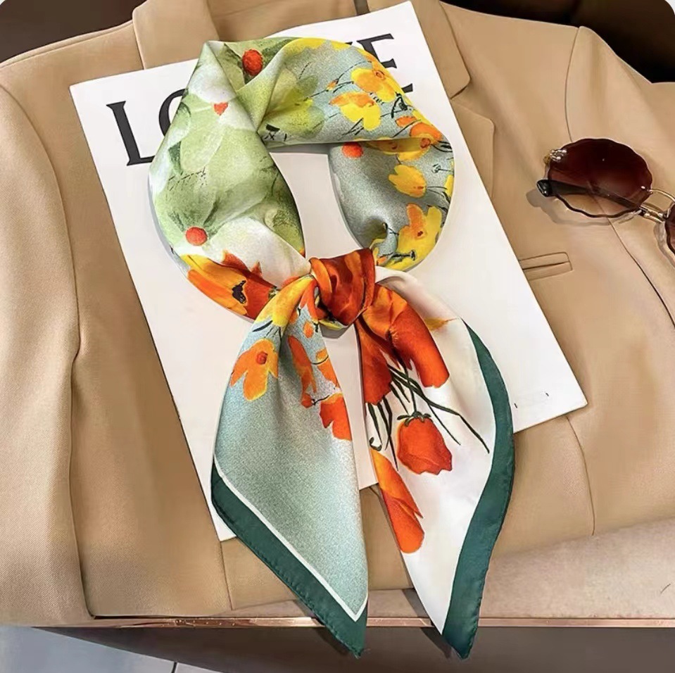 여성용 실크 스카프, 패셔너블하고 다재다능한 스카프, 레트로한 한국 스타일, 우아한 분위기, 고급스러운 사계절용 얇은 스카프, 목 보호용스토어 가기