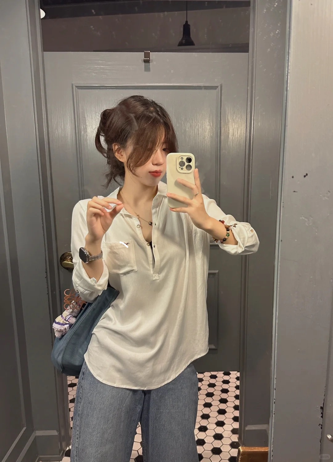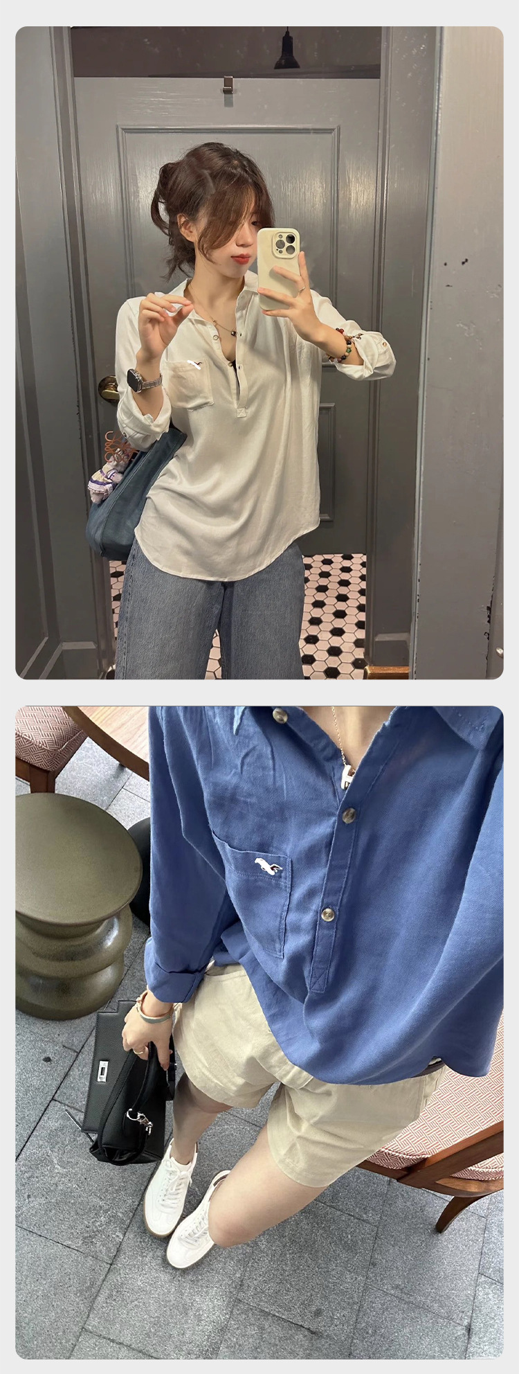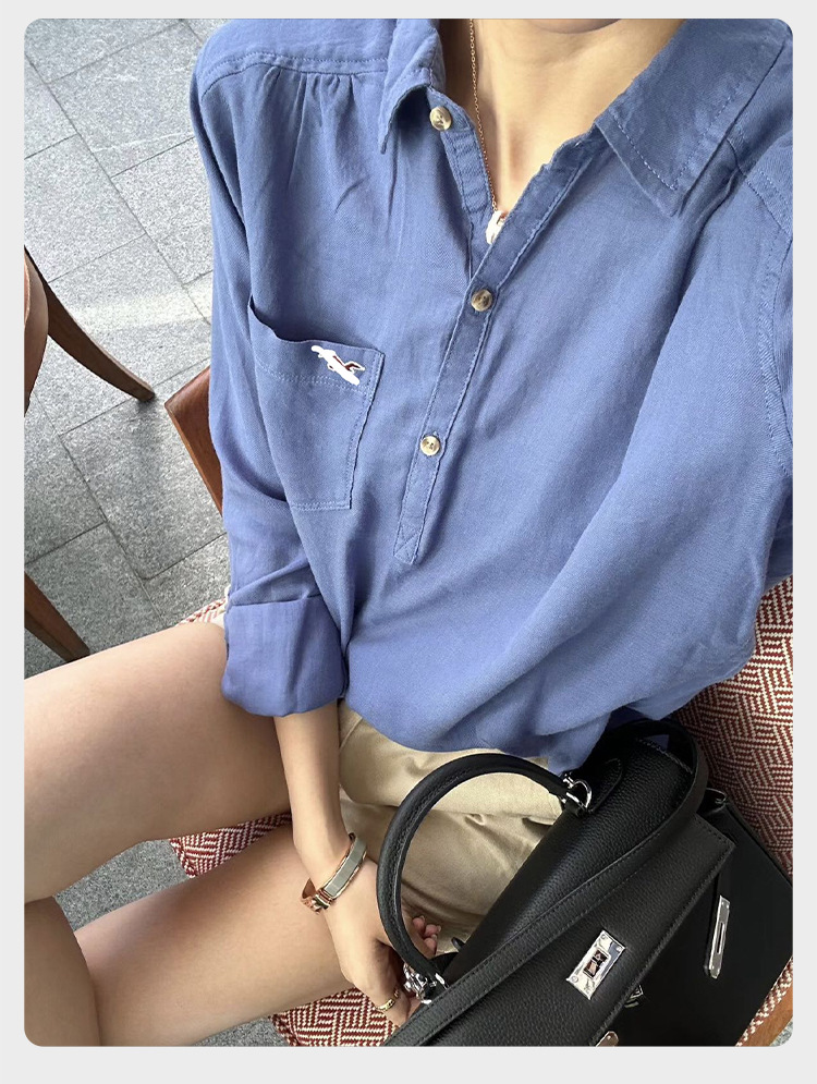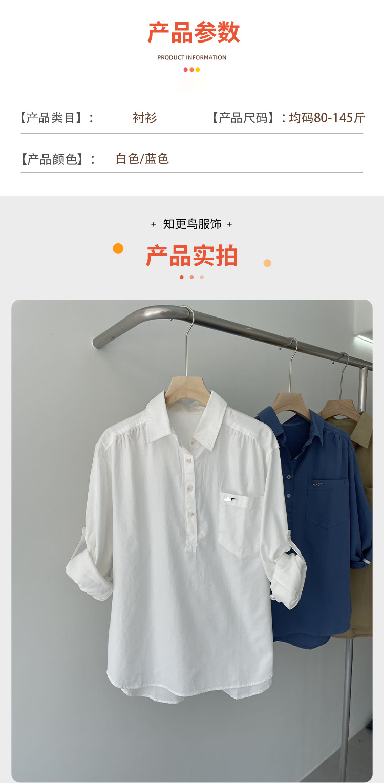 고급스러운 심플한 새 자수 디자인의 다용도 고급 면 화이트 셔츠 여성용 풀오버 반단추 셔츠 봄 가을 의류스토어 가기