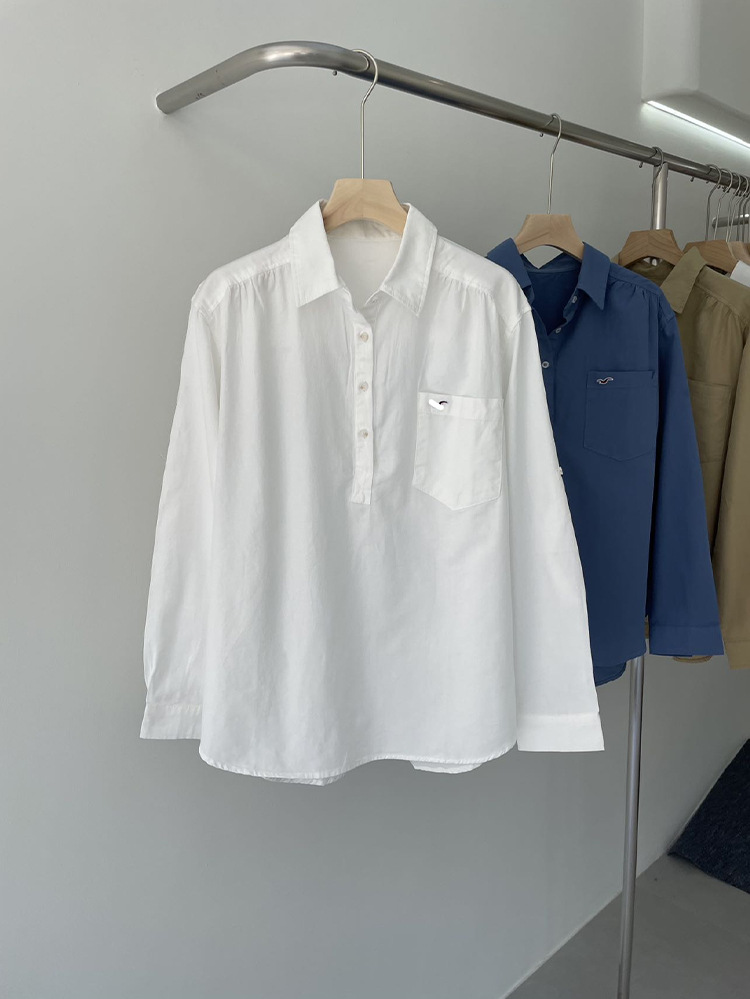 고급스러운 심플한 새 자수 디자인의 다용도 고급 면 화이트 셔츠 여성용 풀오버 반단추 셔츠 봄 가을 의류