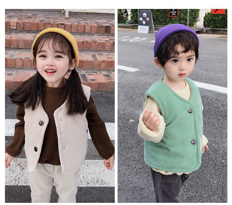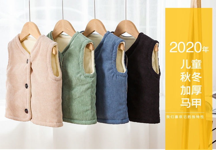 남아 및 여아용 아동용 면 조끼, 영유아, 중소형 아동 조끼, 겨울용 벨벳 내부 및 외부 착용스토어 가기