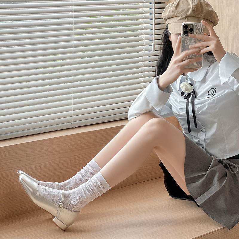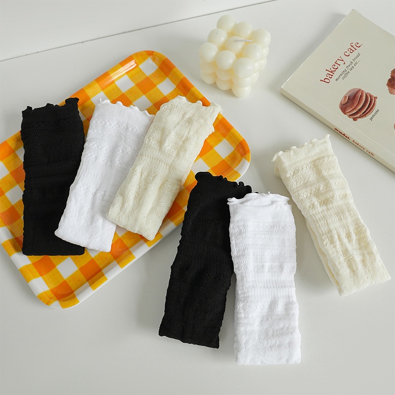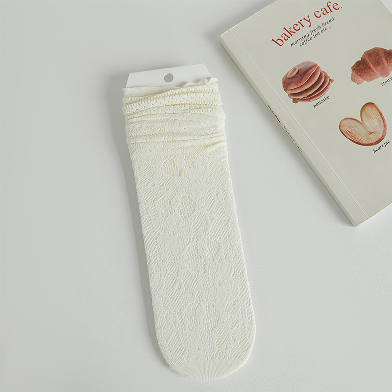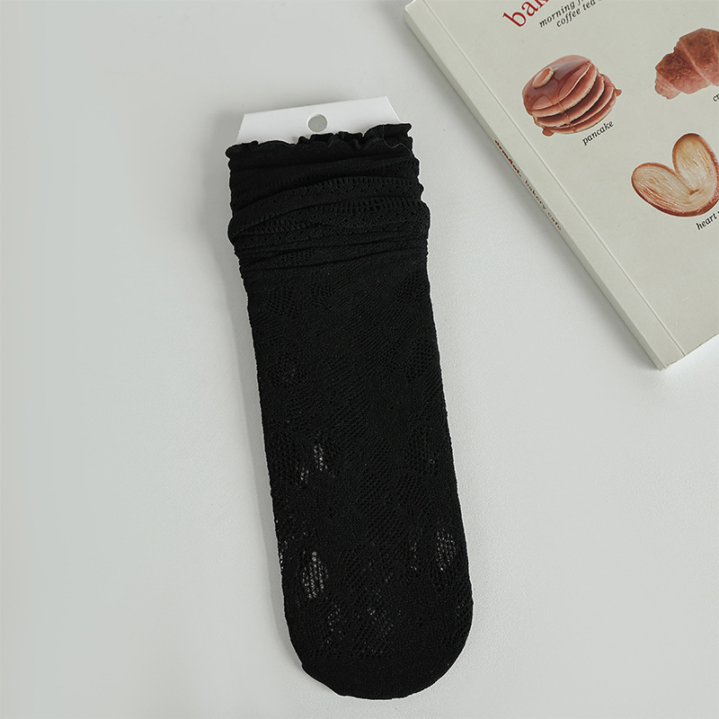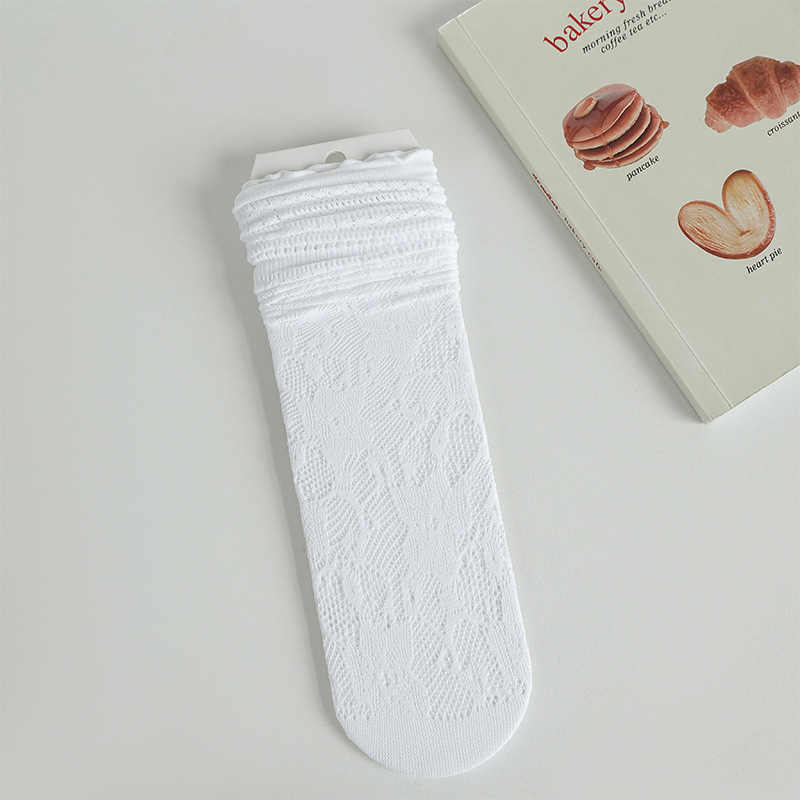 흰색 포장 양말 여성 여름 얇은 레이스 중간 길이 양말 블랙 할로우 아웃 Jk 신발 가죽 신발