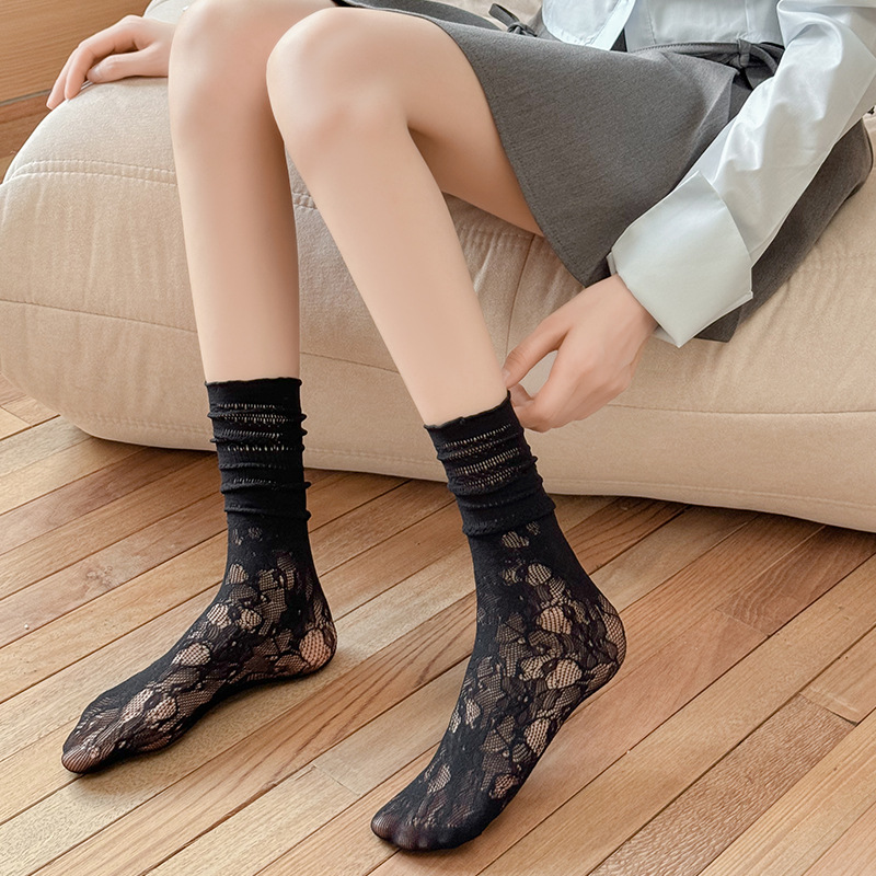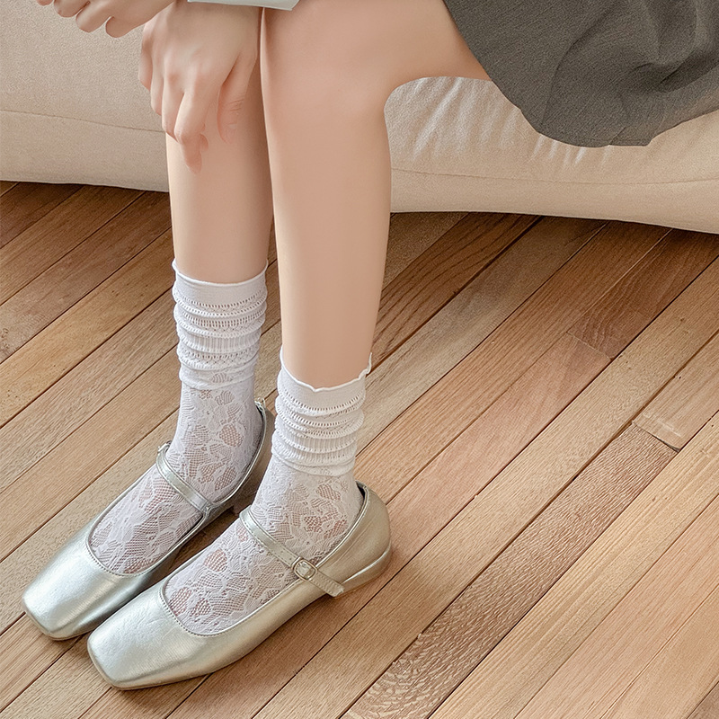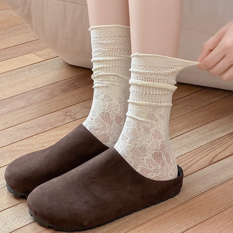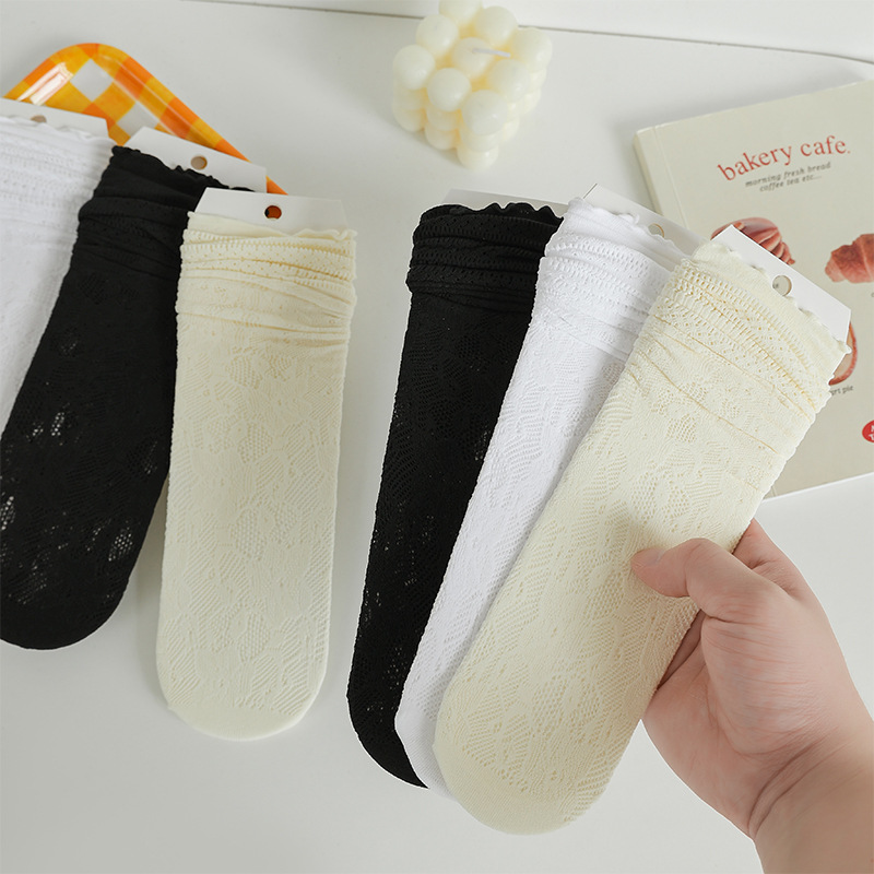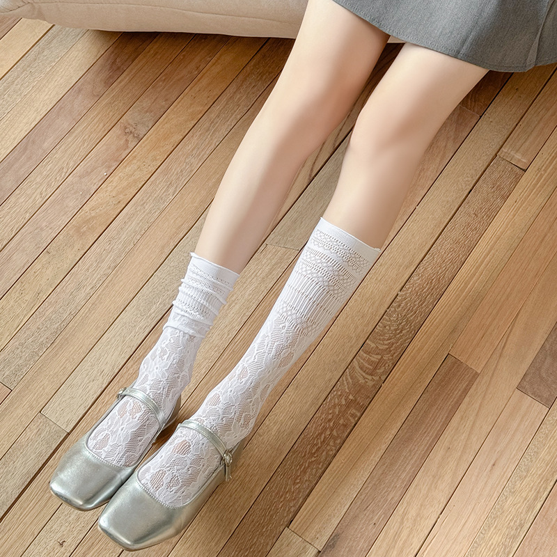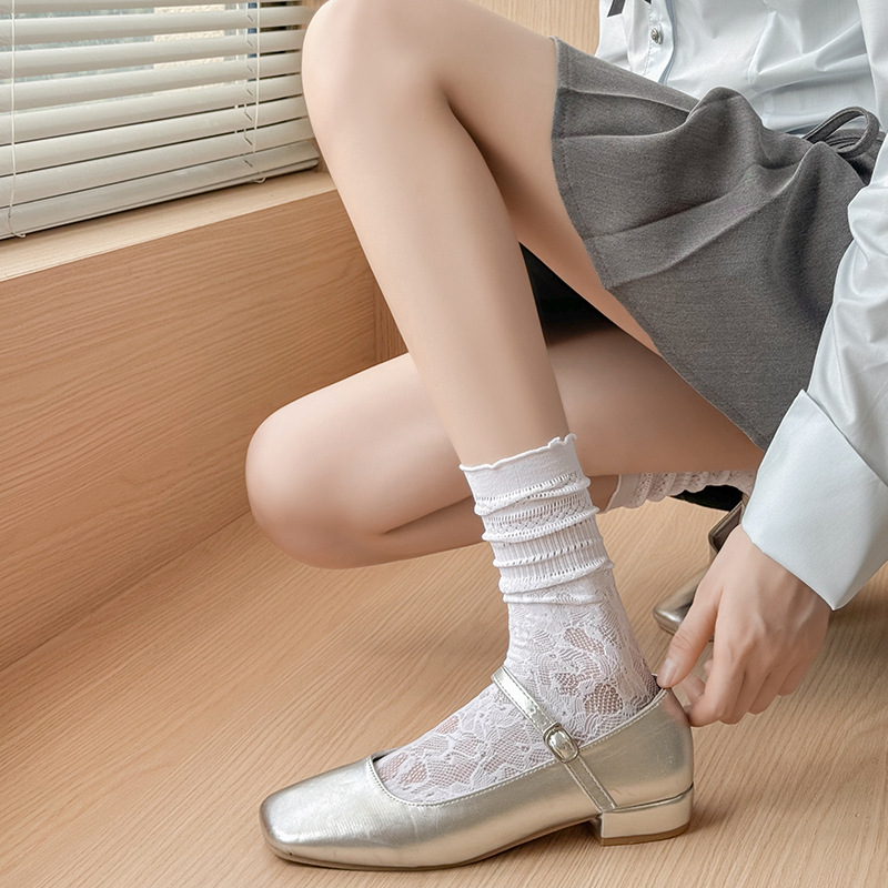 흰색 포장 양말 여성 여름 얇은 레이스 중간 길이 양말 블랙 할로우 아웃 Jk 신발 가죽 신발스토어 가기