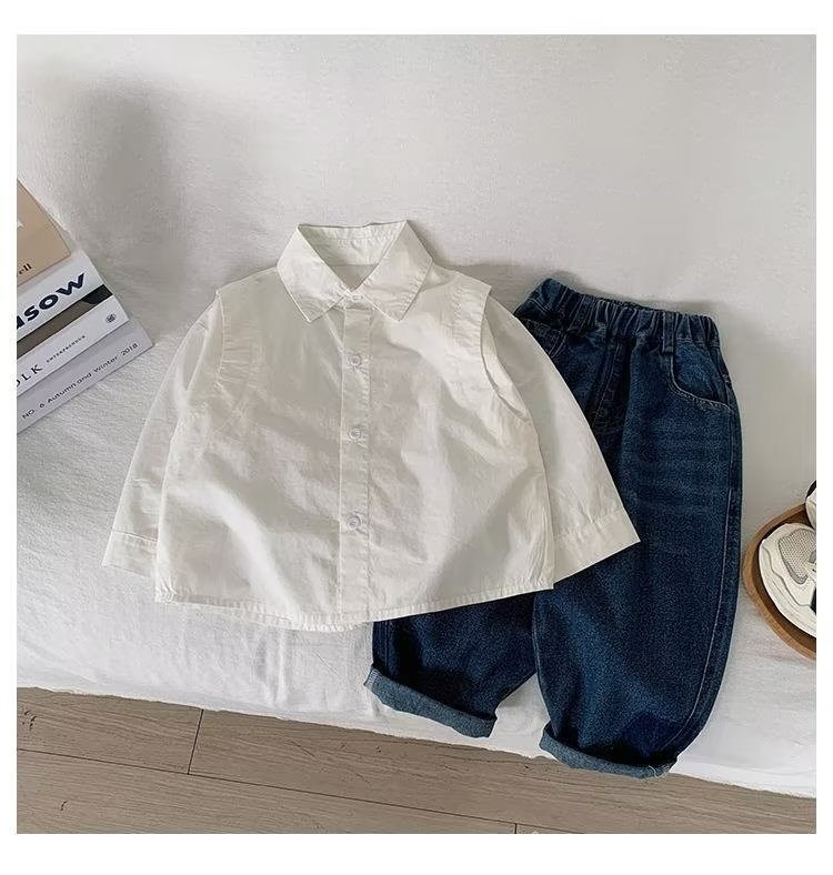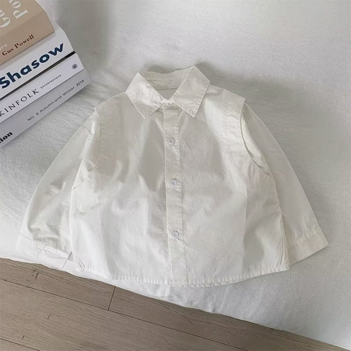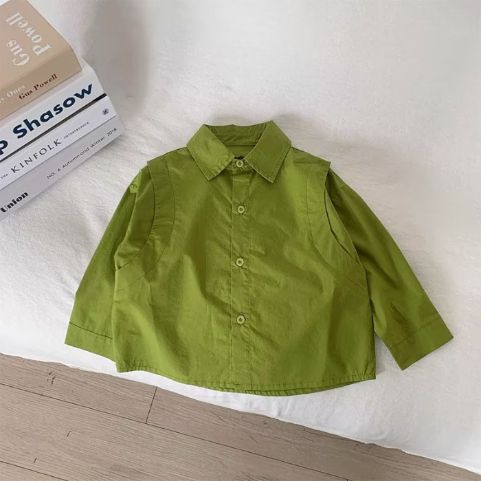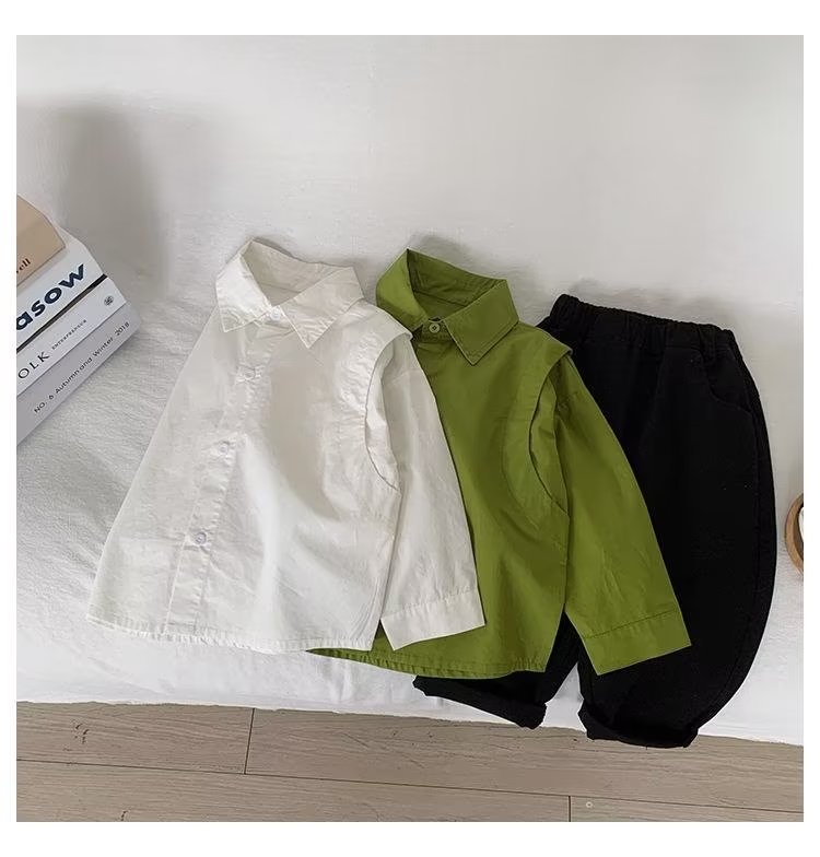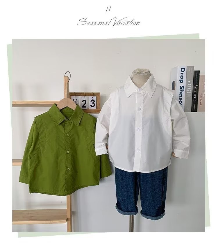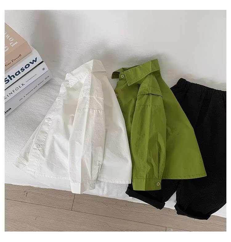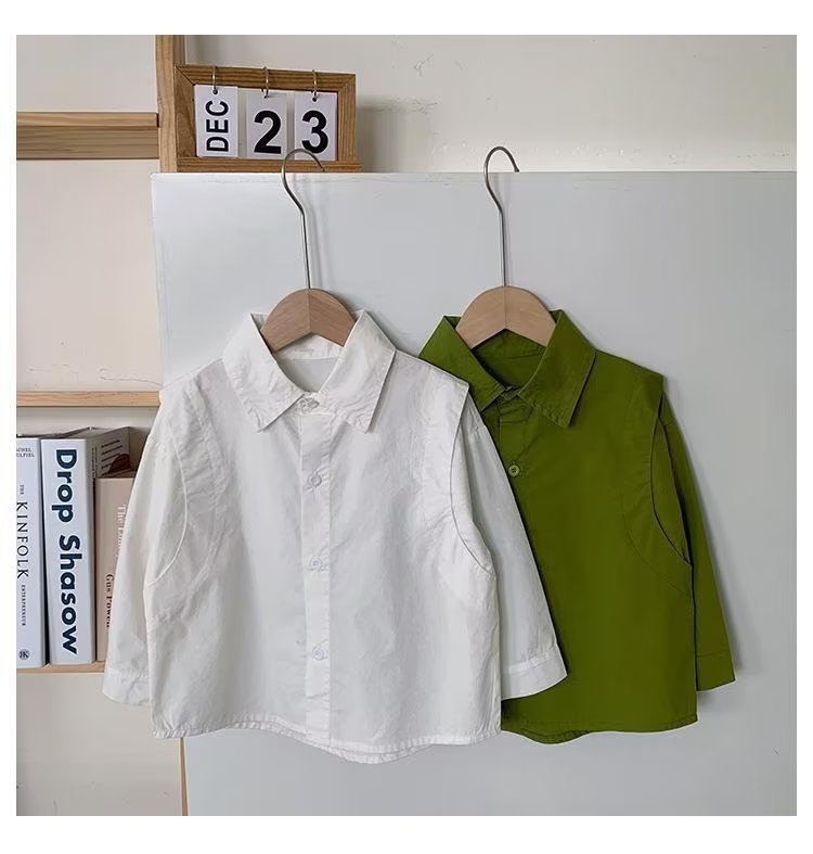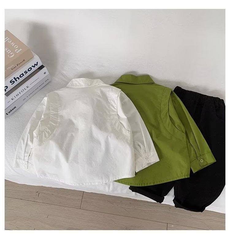 아동복 단색 유행 게으른 셔츠 2024 봄과 가을 새로운 도착 남성 아동복 한국 스타일 느슨한 올매치 유행 옷스토어 가기