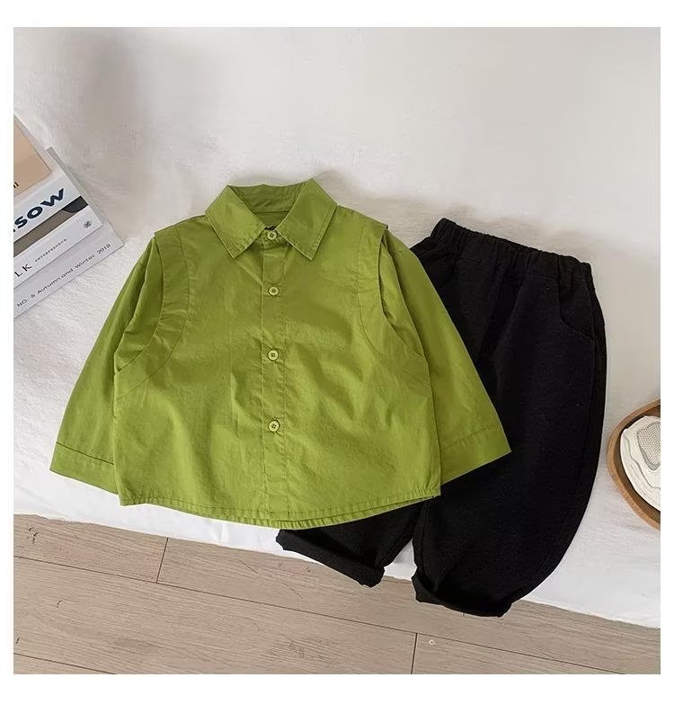 아동복 단색 유행 게으른 셔츠 2024 봄과 가을 새로운 도착 남성 아동복 한국 스타일 느슨한 올매치 유행 옷