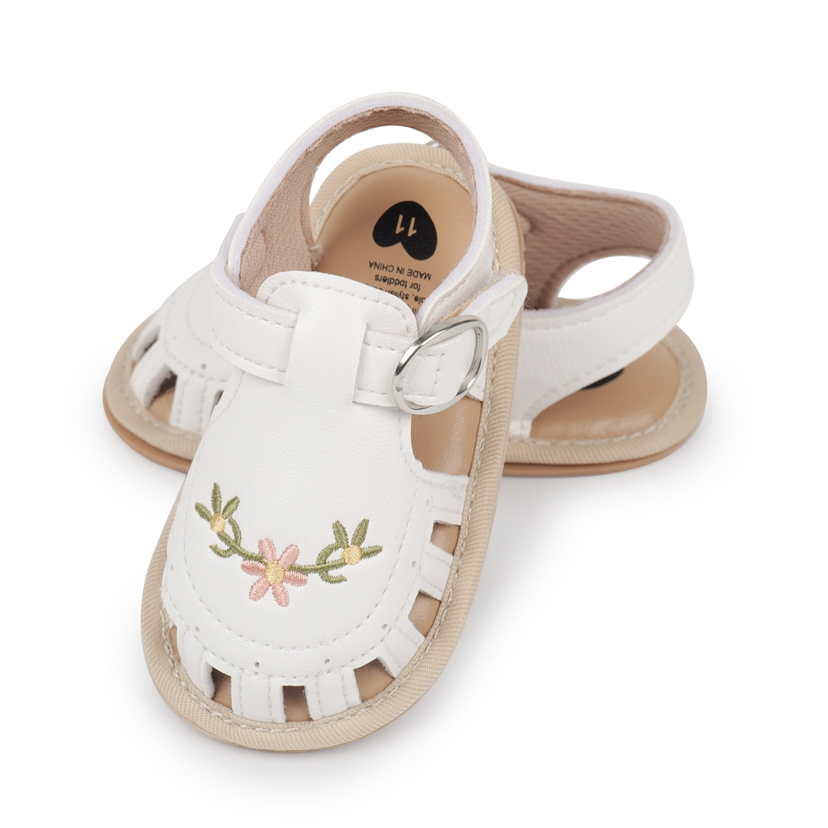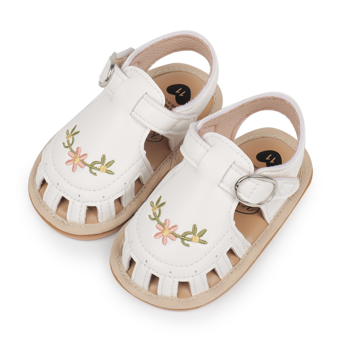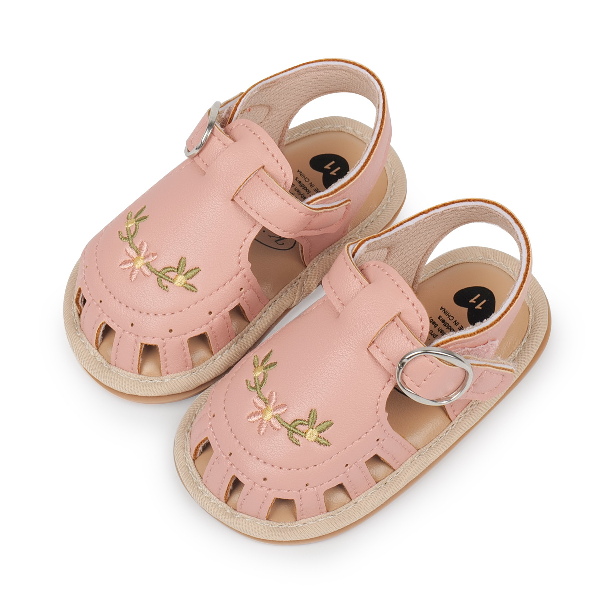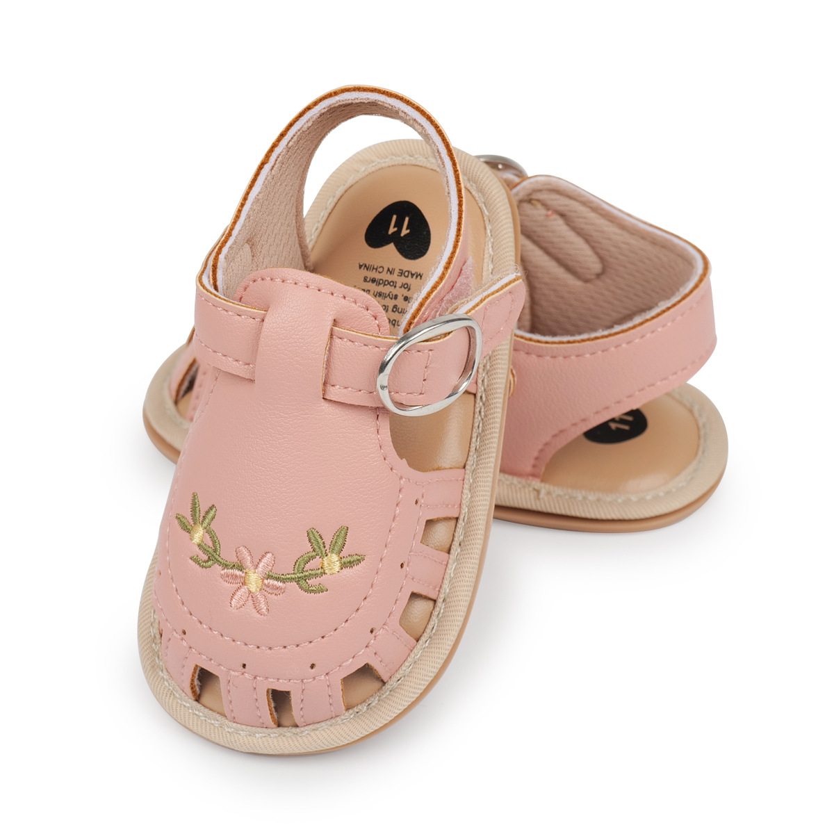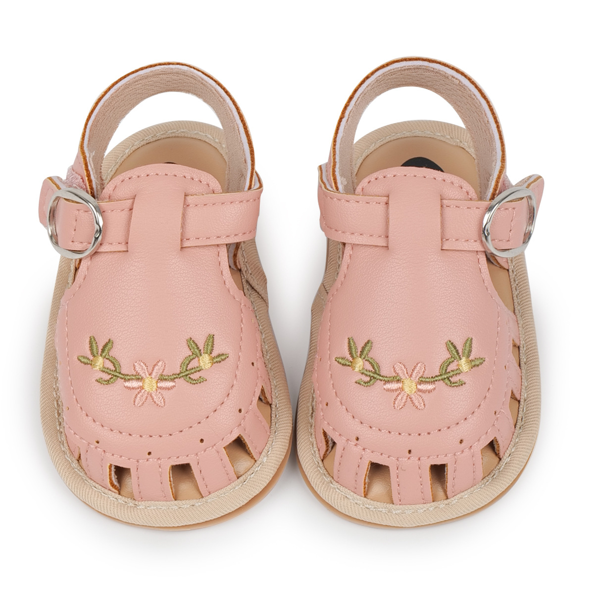 여름 새로운 0-12 개월 아기 공주 자수 샌들 벨크로 할로우 부드러운 고무 바닥 아기 유아 신발