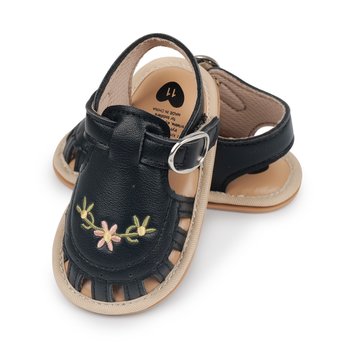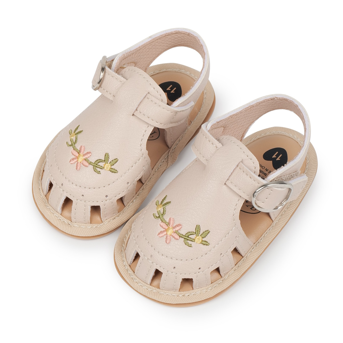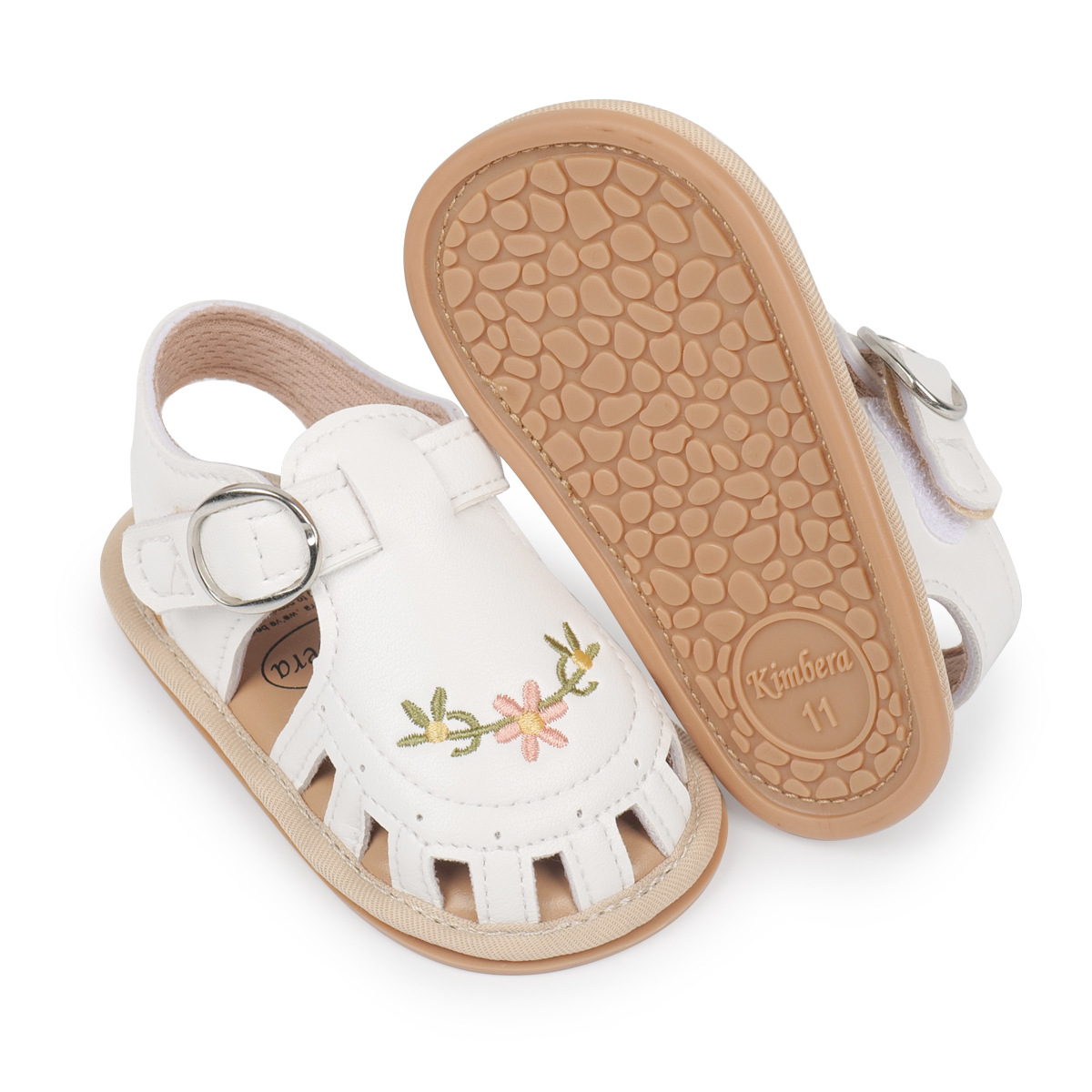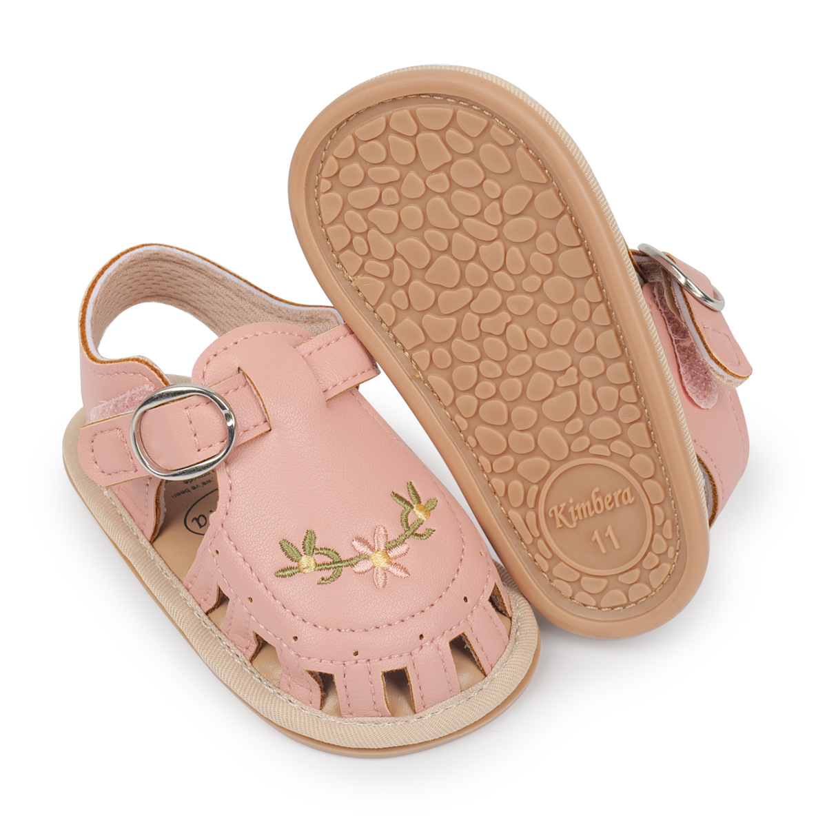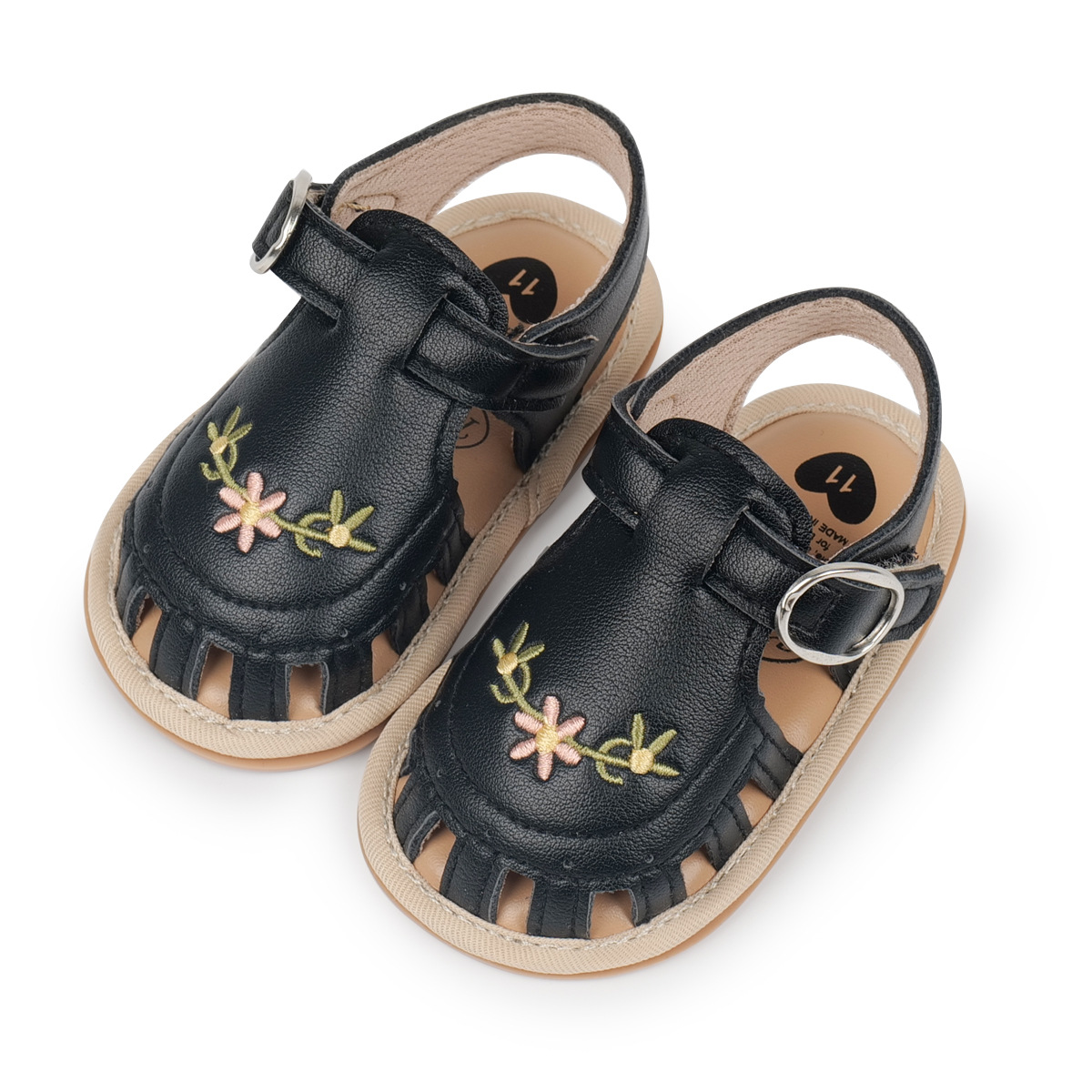 여름 새로운 0-12 개월 아기 공주 자수 샌들 벨크로 할로우 부드러운 고무 바닥 아기 유아 신발