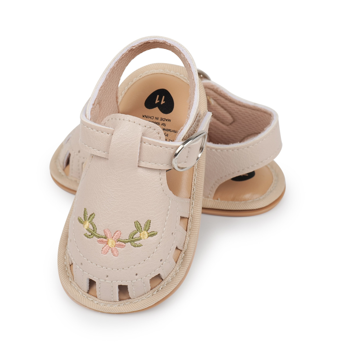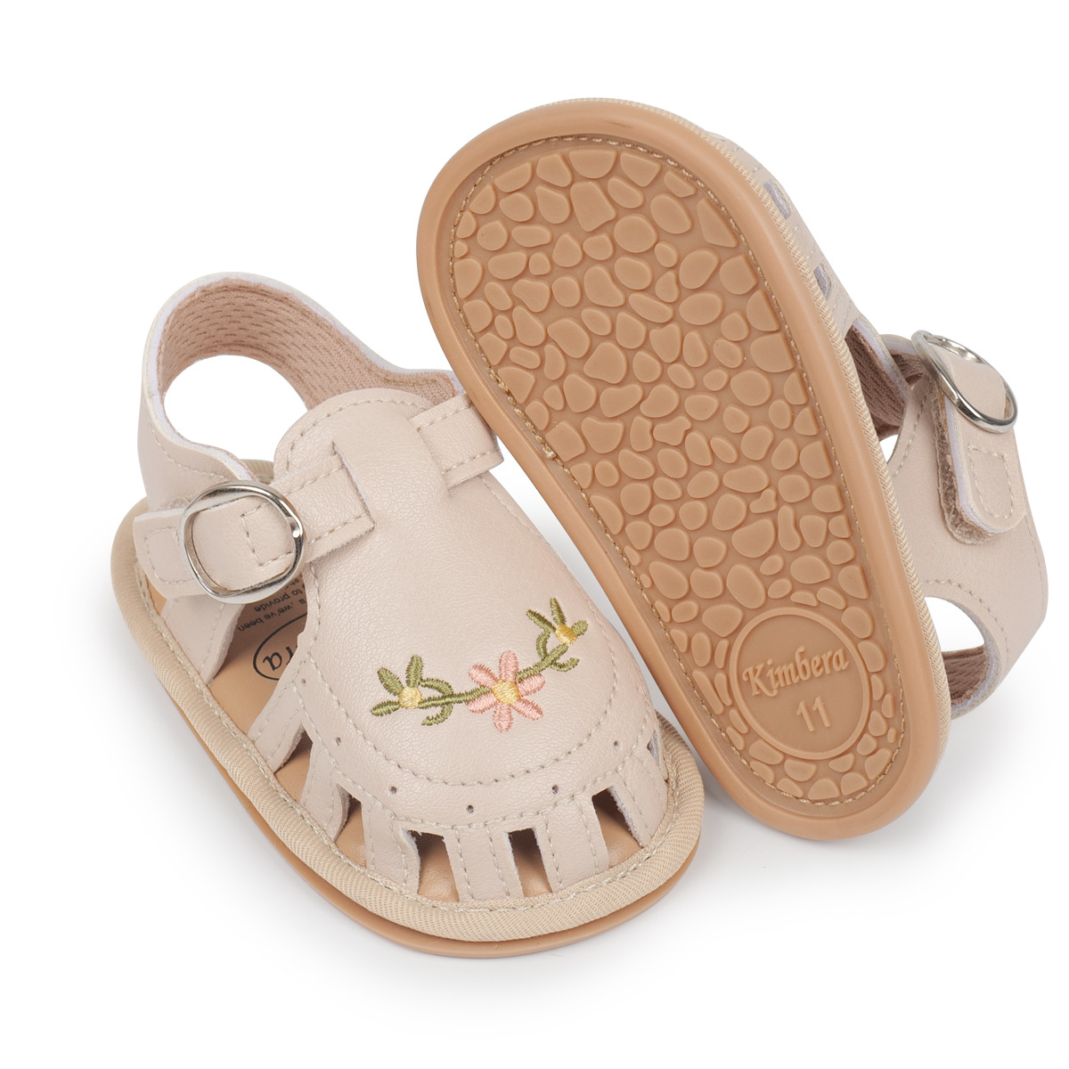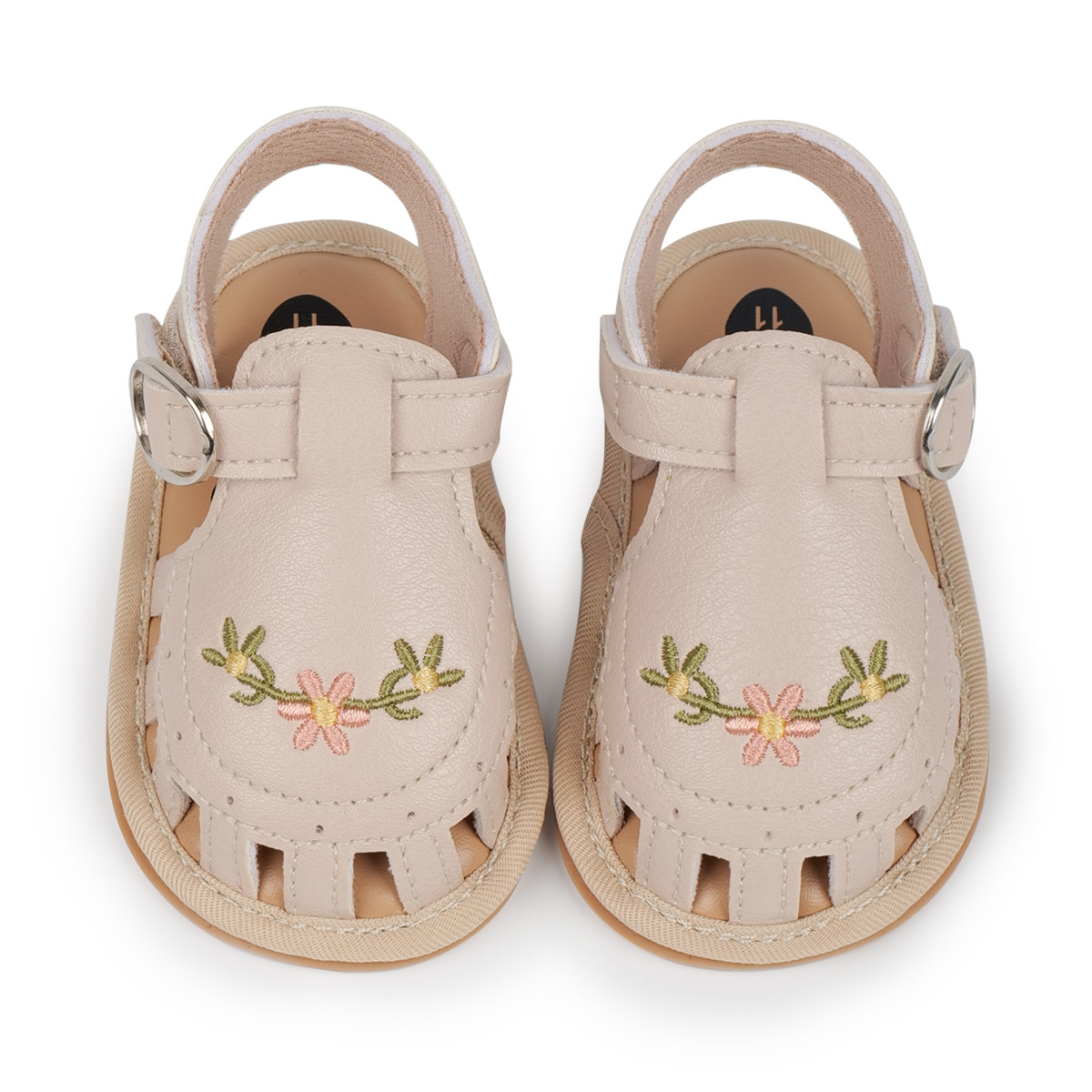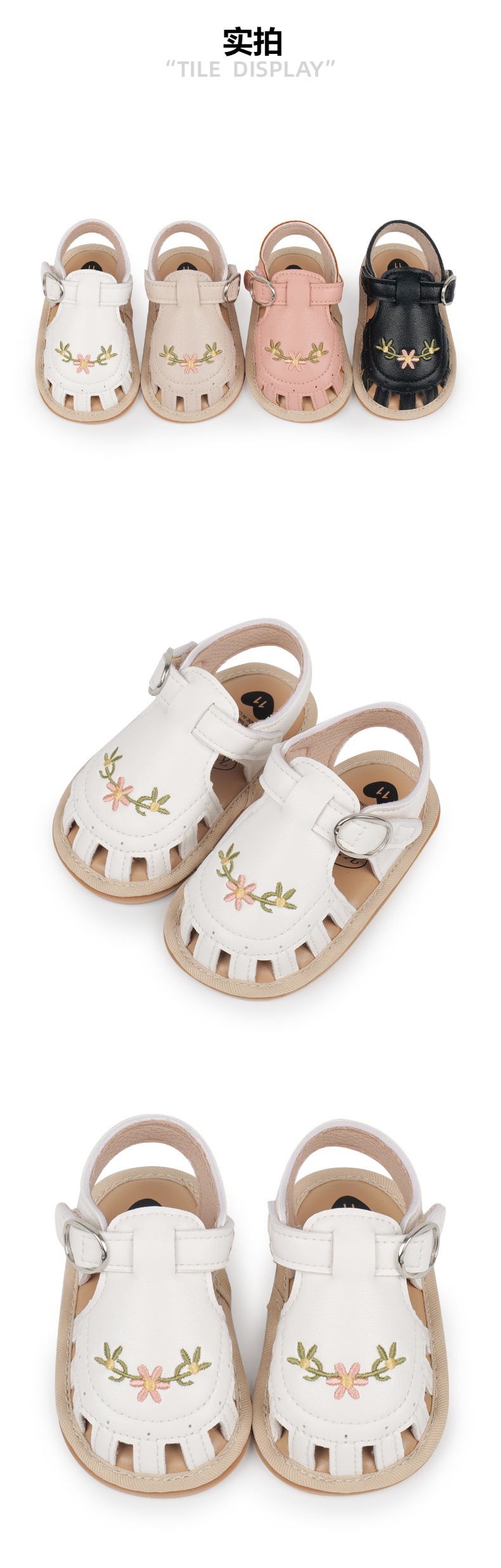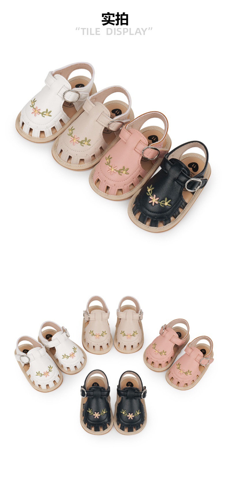 여름 새로운 0-12 개월 아기 공주 자수 샌들 벨크로 할로우 부드러운 고무 바닥 아기 유아 신발스토어 가기