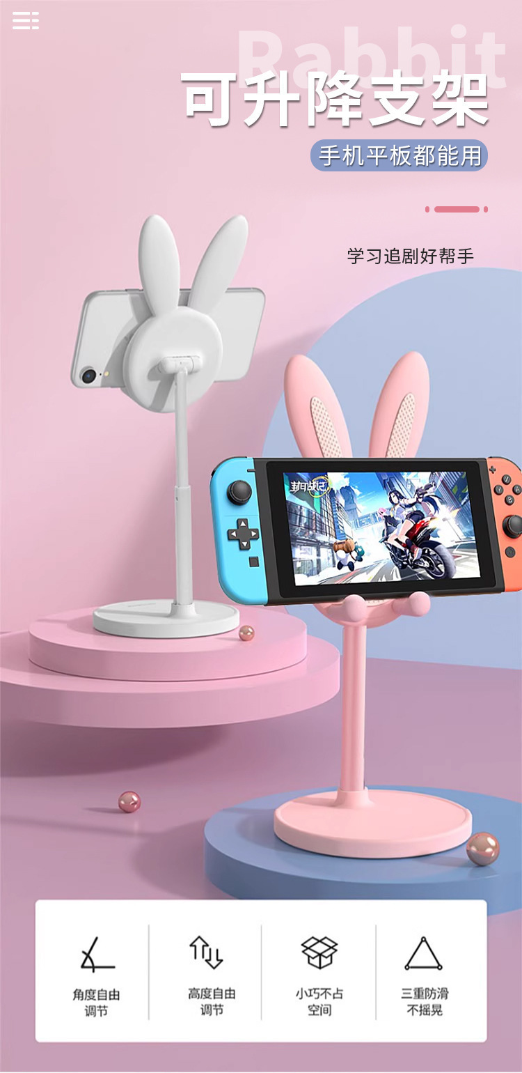 토끼 휴대 전화 브래킷 리프팅 조정 가능한 학생 태블릿 데스크탑 게으른 홈 셀카 라이브 지원 선반