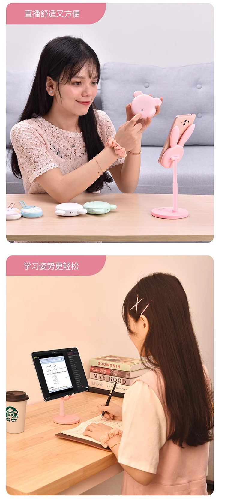 토끼 휴대 전화 브래킷 리프팅 조정 가능한 학생 태블릿 데스크탑 게으른 홈 셀카 라이브 지원 선반스토어 가기