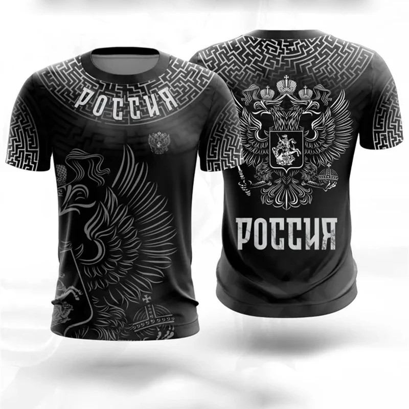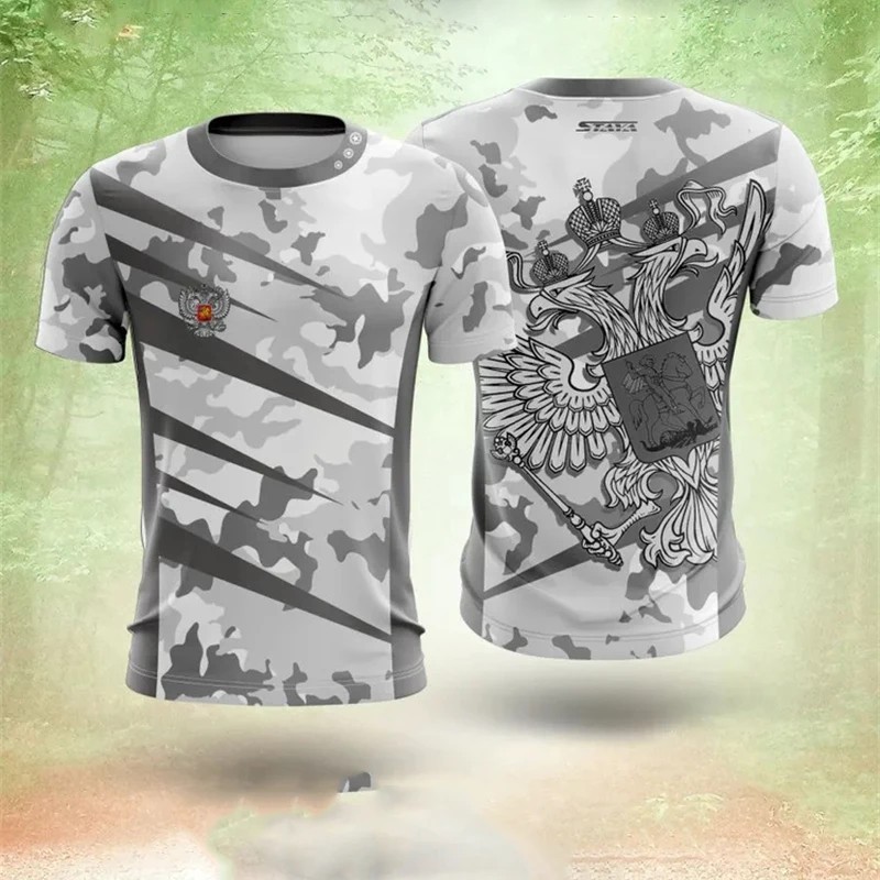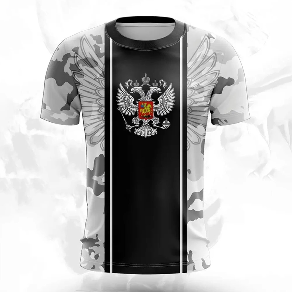 2025 년 여름 폭발 러시아 국립 엠블럼 티셔츠 남성 위장 야외 운동복 티셔츠 프라이드 반소매 티셔츠