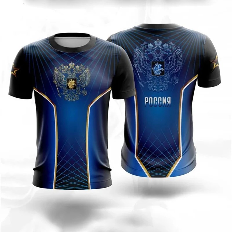 2025 년 여름 폭발 러시아 국립 엠블럼 티셔츠 남성 위장 야외 운동복 티셔츠 프라이드 반소매 티셔츠스토어 가기