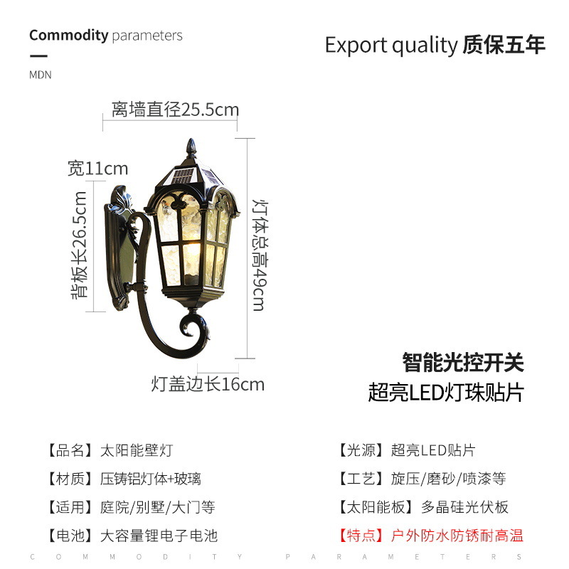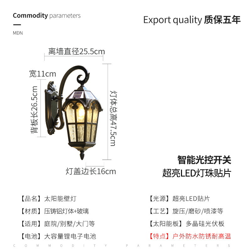 e8o 야외 벽등 태양광 방수 발코니 빌라 야외 유럽식 앤티크 테라스 문 정원등 LED등