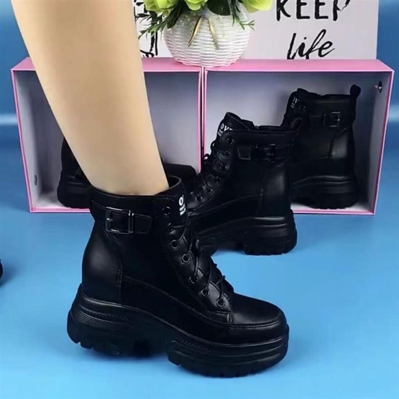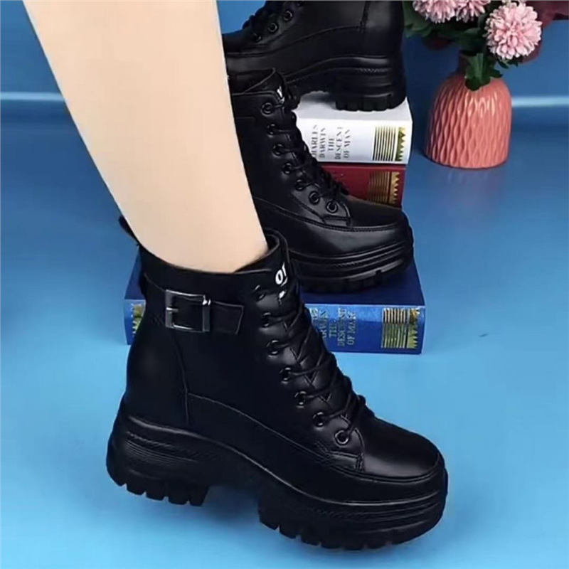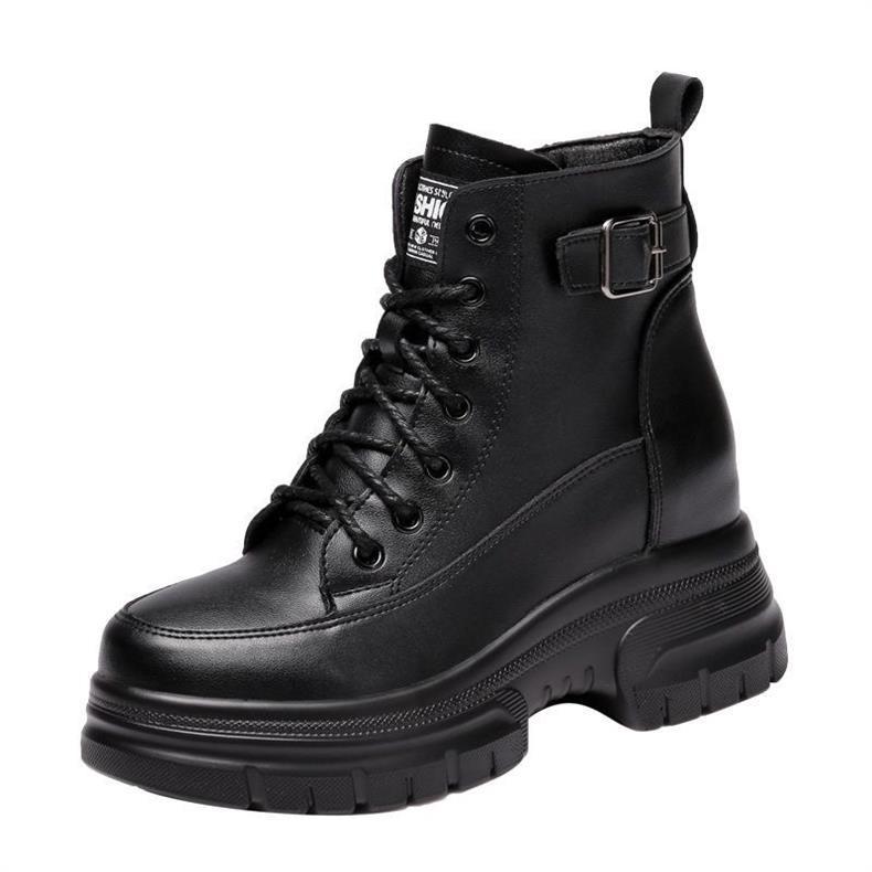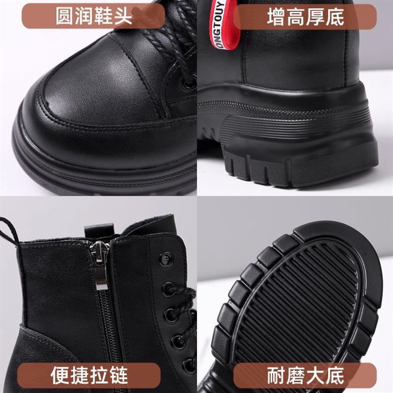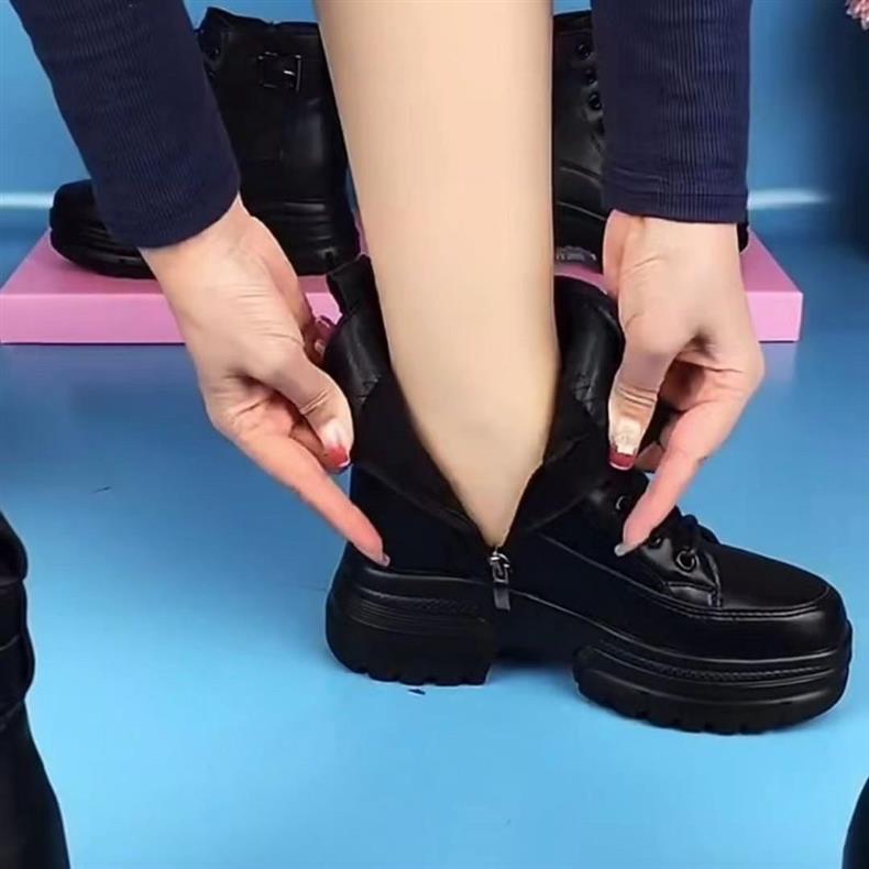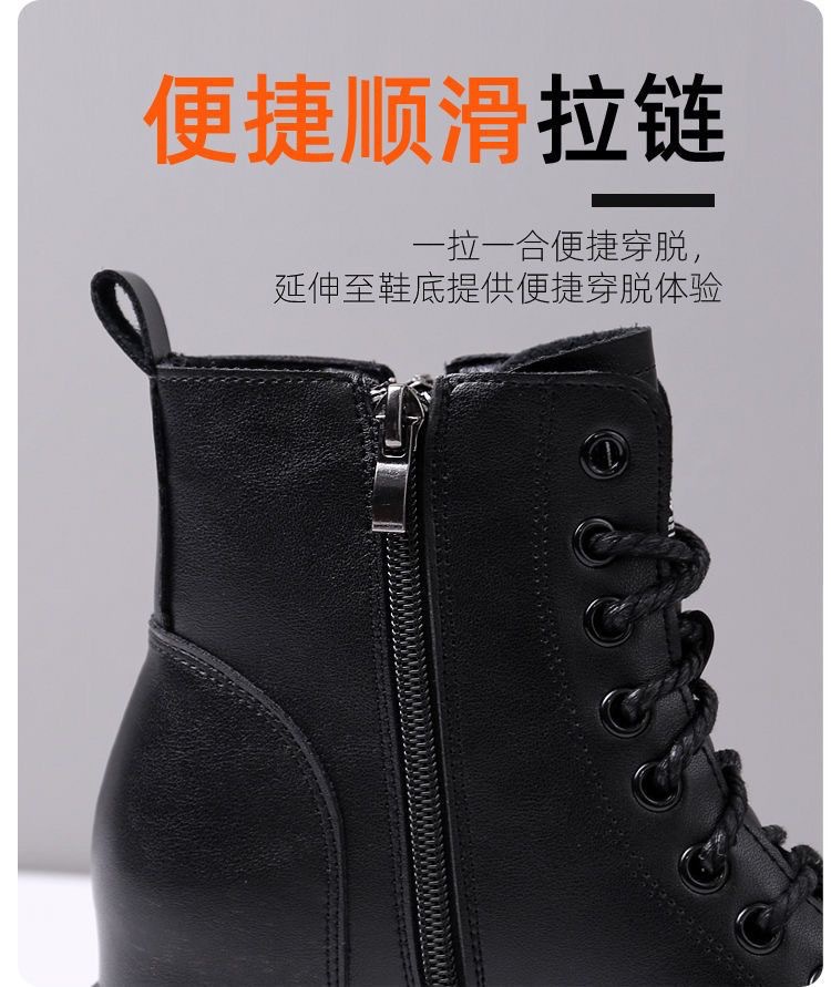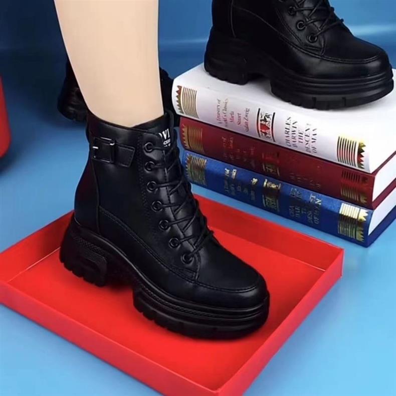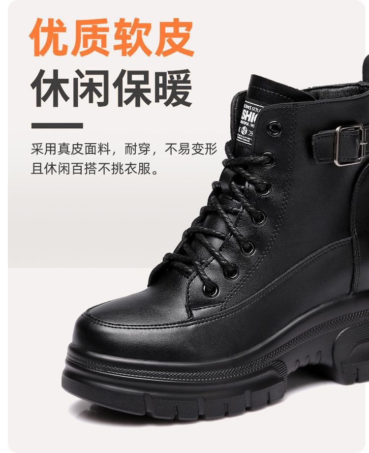 여성용 천연 가죽 두꺼운 밑창 마틴 부츠 2025 신상 가을 겨울 플러스 사이즈 면 부츠 슬림하고 다용도로 활용 가능한 키높이 숏부츠스토어 가기